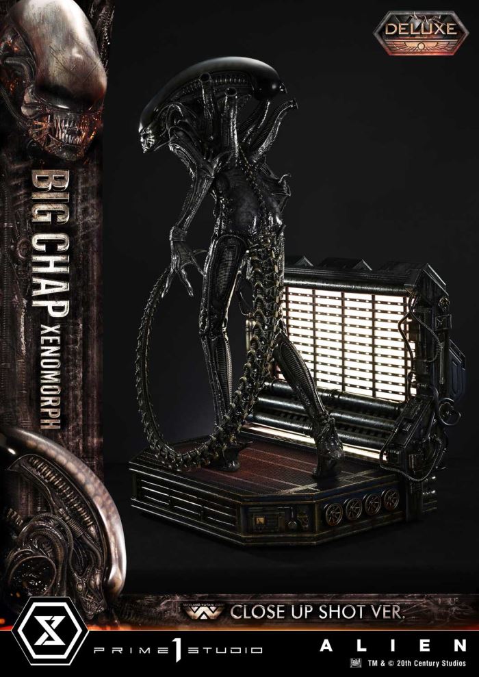The dim corridors stir with the silhouette of Rambaldi’s creation.A claustrophobic drama in space, captured on XL.From the film Alien, which laid the groundwork for sci-fi suspense, the Big Chap Xenomorph Close Up Shot Ver. emerges in Museum Masterline XL.The “Rambaldi Head” defined the Big Chap’s iconic look. This statue stands 100 cm tall at 1/3 scale and features the Close-Up Shot Head based on the work of visual effects artist Carlo Rambaldi. The hood’s transparency, the complex structure around the mouth, and the gaps born of its skeletal design—every element was pursued with on-screen accuracy in mind. Its unsettling pose, impossible to read at a glance, also reflects the tall stature and physicality of Bolaji Badejo, who portrayed the creature. Draped in finely rendered detail, it conveys the suffocating tension of a confined space.The special base is inspired by the interior of the Nostromo. From the rugged textures of the piping to the somber red applied to the mesh plates, the details are built up throughout. The Interior Wall with LED Illumination, which heightens the sense of confinement, is also removable. Detach it to appreciate the Big Chap’s sculpt from every angle.Create a moment of despair with the protruding inner mouth. With both arms held forward, the Big Chap closes in on its prey. The set also includes head stands and two logo plates. Combine them freely and enjoy a variety of display scenes.In addition, the DX Bonus Version includes Jones, the ship’s cat, together with a carry case that can be opened and closed. It projects the Big Chap’s menace, human folly, and the answer to survival onto your display.Rambaldi’s sculptural beauty and the tension of a sealed space—captured in XL. A collection piece that brings the terror lurking at the far reaches of space within arm’s reach.Specifications:Alien-themed BaseInterior Wall with LED IlluminationTwo (2) Swappable Close-Up Shot Heads (Closed Mouth, Open Mouth)Two (2) Swappable Pairs of Arms (Lower, Forward)One (1) Head StandTwo (2) Logo Plates (Black, Silver)Jones and His Carry Case [BONUS PART]LED Power Supply Method: TBD* Please prepare batteries, USB cables, or other necessary items depending on the final power supply method.Notice:Prototype samples shown.Product details could be subject to change without further notice.Please note the final product specifications may differ because each product is Handmade.Since the product is still in the development stage, the Size (up to 10%) & Weight (up to 10kg) may be changed during the production stage.TM & © 20th Century StudiosDETAILSBrandsPRIME 1 STATUECollectionMuseum Masterline XLSeriesAlienScale1/3 ScaleProduct CodeMMXLAL-03DXSProduct Size Approx.H:100cm W:68cm D:65cmH:100cm W:65cm D:54cm(without Interior Wall)Carton(Est):3 boxProduct Weight Approx.52.28 kgCarton Size Approx.Carton A [ H 97.5cm × W 64cm × D 37cm ]Carton B [ H 77cm × W 70cm × D 40cm ]Carton C [ H 78cm × W 67cm × D 52.6cm ]MaterialsPolystone and other materialsJAN4582647123985