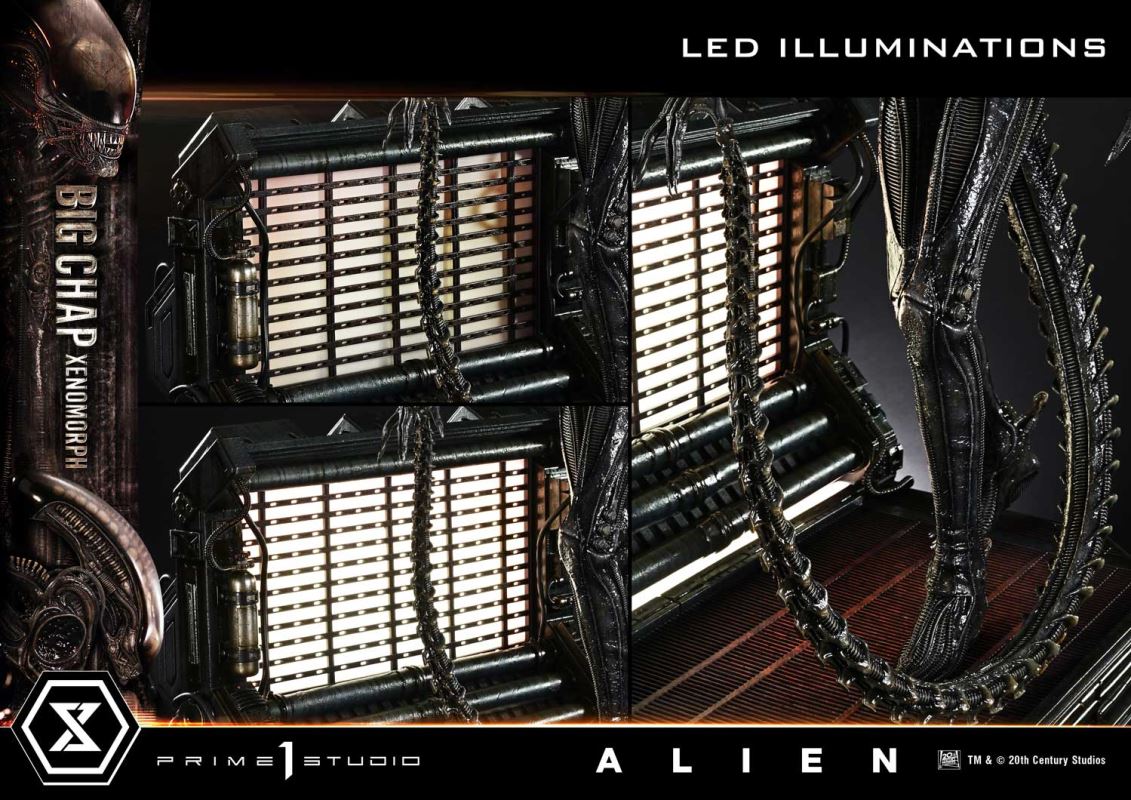 A claustrophobic chamber in space, an alien silhouette in motion.The enduring creature design, captured in XL.From the film Alien, which laid the groundwork for sci-fi suspense, the Big Chap Xenomorph Regular Ver. emerges in Museum Masterline XL.Created by the master H. R. Giger and serving as the starting point of a franchise that continues to this day, the Big Chap is presented here as a 1/3 scale statue that captures its grotesque beauty. A Wide Shot Head—also known as the Giger Head—featuring intricate detail. A symmetrically constructed body. A long, sharp tail that flexes like a whip. Taking full advantage of its 100 cm height, the statue has been crafted with a high level of precision across the entire form. Its unsettling pose, impossible to predict in its next movement, also reflects the tall physique and physical performance of Bolaji Badejo, who portrayed the creature.The special base is inspired by the interior of the Nostromo. From the rugged textures of the piping to the somber red applied to the mesh plates, the details are built up throughout. The Interior Wall with LED Illumination, which heightens the sense of confinement, is also removable. Detach it to appreciate the Big Chap’s sculpt from every angle.In addition, the Bonus Version includes Jones, the ship’s cat, together with a carry case that can be opened and closed. It projects the Big Chap’s menace, human folly, and the answer to survival onto your display.An enduring creature design, captured in XL. Together with the Close-Up Shot Version featuring the Rambaldi Head, it is a collection piece that brings the terror lurking at the far reaches of space within arm’s reach.Specifications:Alien-themed BaseInterior Wall with LED IlluminationOne (1) Logo Plate (Black)Jones and His Carry Case [BONUS PART]LED Power Supply Method: TBD* Please prepare batteries, USB cables, or other necessary items depending on the final power supply method.Notice:Prototype samples shown.Product details could be subject to change without further notice.Please note the final product specifications may differ because each product is Handmade.Since the product is still in the development stage, the Size (up to 10%) & Weight (up to 10kg) may be changed during the production stage.TM & © 20th Century StudiosDETAILSBrandsPRIME 1 STATUECollectionMuseum Masterline XLSeriesAlienScale1/3 ScaleProduct CodeMMXLAL-04SProduct Size Approx.H:100cm W:68cm D:65cmH:100cm W:65cm D:55cm(without Interior Wall)Carton(Est):3 boxProduct Weight Approx.43.34 kgCarton Size Approx.Carton A [ H 97.5cm × W 64cm × D 37cm ]Carton B [ H 77cm × W 70cm × D 27cm ]Carton C [ H 78cm × W 67cm × D 41cm ]MaterialsPolystone and other materialsJAN4582647124333