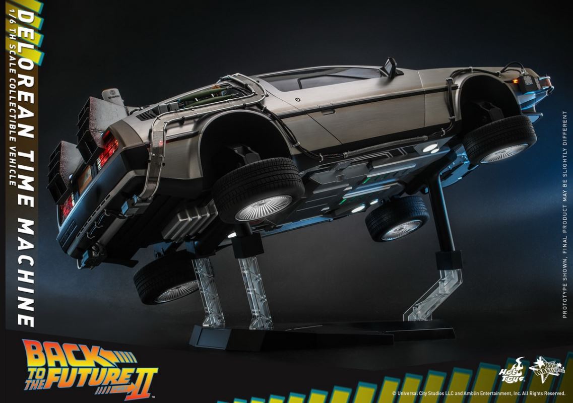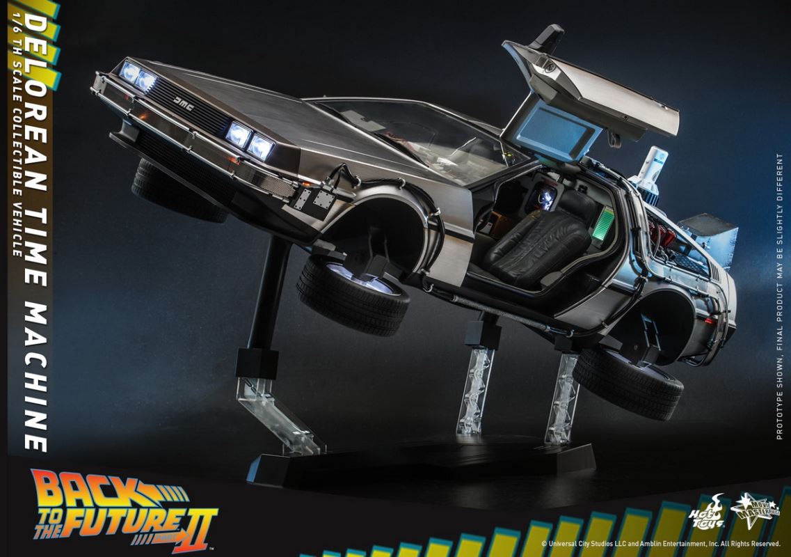 ยานยนต์ของสะสม DeLorean Time Machine ที่สร้างขึ้นด้วยฝีมืออันน่าประทับใจ มีความยาว 72 ซม. แสดงรายละเอียดที่น่าประทับใจรวมถึงจุดไฟ LED หลายจุดในการออกแบบภายนอกและระบบควบคุมภายใน ประตูปีกนกนางนวลอันเป็นเอกลักษณ์ ล้อพับได้สำหรับโฮเวอร์ โหมด สายไฟที่เหมือนจริงทั่วโครงสร้างภายนอก การสร้างรายละเอียดของส่วนควบคุมเครื่องยนต์และห้องโดยสารของไทม์แมชชีน และฐานที่ออกแบบมาเป็นพิเศษสำหรับ DeLorean Time Machine ที่ลอยอยู่