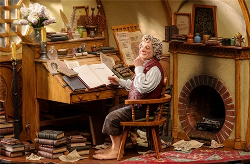 งานนี้ได้รับการออกแบบตามฉากของบิลโบนั่งอยู่ที่โต๊ะเขียนหนังสือในภาพยนตร์เรื่อง "เดอะลอร์ดออฟเดอะริงส์" ทำจากโพลีสโตนคุณภาพสูงและกระดาษไมโคร สูงประมาณ 29 ซม. และยาว 52 ซม. มุมของรูก้นกระเป๋าได้รับการฟื้นฟูด้วยรายละเอียดและความใส่ใจอย่างยิ่ง ยกเว้น เตาผิง เก้าอี้ไม้ที่สวยงาม โต๊ะที่เต็มไปด้วยสิ่งของ ช่อดอกไม้ที่ริมหน้าต่าง เชิงเทียน กองหนังสือ และ กระดาษที่กระจัดกระจายอยู่บนพื้น นอกจากนี้ แม้แต่ "Concerning Hobbits" ที่เขียนโดยบิลโบก็ได้รับการบูรณะอย่างหรูหรา เมื่อพลิกงานไปด้านหลัง คุณจะเห็นลักษณะทางสถาปัตยกรรมของรูก้นกระเป๋า กำแพงอิฐสีแดง ดินและหิน และใบไม้สีเขียวสื่อถึงไชร์ ) สันติภาพและความเงียบสงบที่เถียงไม่ได้ในโลก