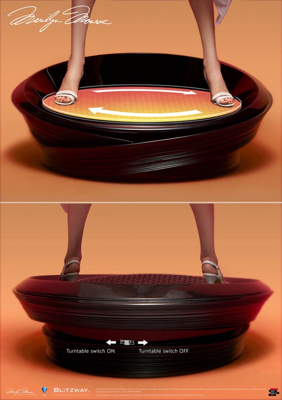 ขายาวที่สวยงามของมาริลีนผลิตโดยสัมผัสอันละเอียดอ่อนของช่างแกะสลักของเราเหยียดออกไปด้านข้างสร้างความกลมกลืนอย่างยอดเยี่ยมกับเส้นโค้งของร่างกายส่วนบนที่หมอบเล็กน้อยของเธอและทำให้ผู้ชมรู้สึกราวกับว่าพวกเขากำลังประสบอยู่ในช่วงเวลาเดียวกัน กับเทพธิดาสีบลอนด์