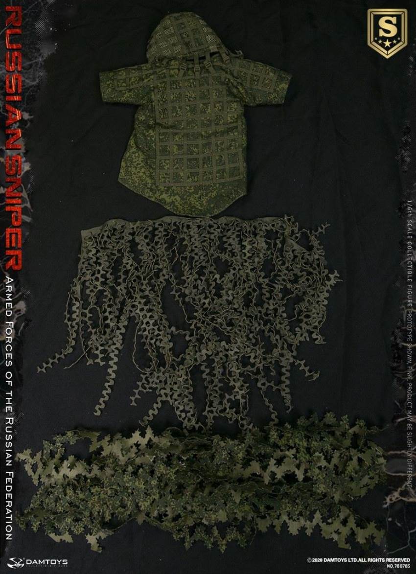 DAMTOYS 1/6 Armed Forces of the Russian Federation - RUSSIAN SNIPER SPECIAL EDITIONNO.78078SBARCODE:6970569620275PARTSLIST:HEAD SCULPTUREDAM ACTION BADY 3.5BH TACTICAL GLOVES x3HAND PADS(DIGITAL FLORA)GOGGLESGOGGLES COVER (DIGITAL FLORA) HELMET AND COVER (DIGITAL FLORA)MASK (OD)SHIRTVKBO BDU UNIFORM(DIGITAL FLORA)VKBO BDU PANTS (DIGITAL FLORA)PMK-4 GAS MASK (PART FOR SPECIAL EDITION)SNIPER COAT (GHILLIE SUIT )(PART FOR SPECIAL EDITION)CAMOUFLAGE TAPE x20(DIGITAL FLORA)(PART FOR SPECIAL EDITION)CAMOUFLAGE NETTING(PART FOR SPECIAL EDITION)LEATHER BELTBOOTS (BLK)6B46 MOLLE VEST(DIGITAL FLORA)(PART FOR SPECIAL EDITION)SINGLE AK MAG POUCH X2 (DIGITAL FLORA)SINGLE AK MAG POUCH WITH ONE ROP X2(DIGITAL FLORA)GP POUCH x2 (DIGITAL FLORA) SINGLE SVD MAG POUCH X2 (DIGITAL FLORA)BUTTPACK ((DIGITAL FLORA)Р-168-0.5ум POUCH A (DIGITAL FLORA)Р-168-0.5ум POUCH B (DIGITAL FLORA)Р-168-0.5ум AND headsetK5700 ELITE METER WITH APPLIED BALLISTICSSVD SNIPER RIFLESVD MAG 2+1PSO-1 OPTICAL SNIPER SIGHTSPSO-1 LENS CAPPSO-1 GOGGLEAK74M ASSAULT RIFLEAK74M MAG 5+1AK74M SLINGOBZOR 1P63AK74 BAYONETAK74 SCABBARDMAKAROV PM PISTOLMAKAROV PM PISTOL MAG x2HOLSTER FOR MAKAROVRGO GRENADERGN GRENADE6B51 KNEEPAD (DIGITAL FLORA)6B51 ELBOWPAD (DIGITAL FLORA)SITTING MAT (DIGITAL FLORA)OURDOOR SLEEPING PAD (REPLACEMENT PARTS)DROP OF LEG GAS MASK POUCH(DIGITAL FLORA)ID PATCHES x4FLAG PATCH x2ROP FLARES (RED)ROP FLARES (GREEN)WATCHMILITARY BINOCULARS AND COVERDAMTOYS 1/6 Armed Forces of the Russian Federation - RUSSIAN SNIPER ELITE EDITIONNO.78078BARCODE:6970569620268PARTSLIST:HEAD SCULPTUREDAM ACTION BADY 3.5BH TACTICAL GLOVES x3HAND PADS(DIGITAL FLORA)GOGGLESGOGGLES COVER (DIGITAL FLORA) HELMET AND COVER (DIGITAL FLORA)MASK (OD)SHIRTVKBO BDU UNIFORM(DIGITAL FLORA)VKBO BDU PANTS (DIGITAL FLORA)LEATHER BELTBOOTS (BLK)6B46 OPERATOR-4 MOLLE VEST(DIGITAL FLORA)(PART FOR ELITE EDITION)SINGLE AK MAG POUCH X2 (DIGITAL FLORA)SINGLE AK MAG POUCH WITH ONE ROP X2(DIGITAL FLORA)GP POUCH x2 (DIGITAL FLORA) SINGLE SVD MAG POUCH X2 (DIGITAL FLORA)BUTTPACK ((DIGITAL FLORA)Р-168-0.5ум POUCH A (DIGITAL FLORA)Р-168-0.5ум POUCH B (DIGITAL FLORA)Р-168-0.5ум AND headsetK5700 ELITE METER WITH APPLIED BALLISTICSSVD SNIPER RIFLESVD MAG 2+1PSO-1 OPTICAL SNIPER SIGHTSPSO-1 LENS CAPPSO-1 GOGGLEAK74M ASSAULT RIFLEAK74M MAG 5+1AK74M SLINGOBZOR 1P63AK74 BAYONETAK74 SCABBARDMAKAROV PM PISTOLMAKAROV PM PISTOL MAG x2HOLSTER FOR MAKAROVRGO GRENADERGN GRENADE6B51 KNEEPAD (DIGITAL FLORA)6B51 ELBOWPAD (DIGITAL FLORA)SITTING MAT (DIGITAL FLORA)OURDOOR SLEEPING PAD (REPLACEMENT PARTS)DROP OF LEG GAS MASK POUCH(DIGITAL FLORA)ID PATCHES x4FLAG PATCH x2ROP FLARES (RED)ROP FLARES (GREEN)WATCHMILITARY BINOCULARS AND COVER