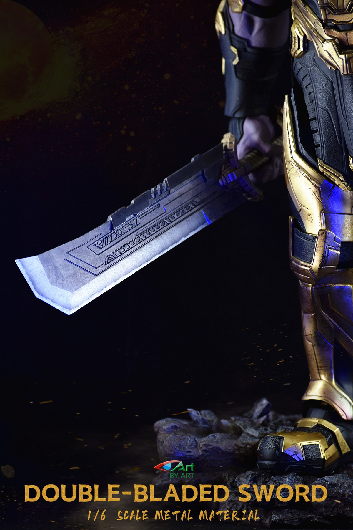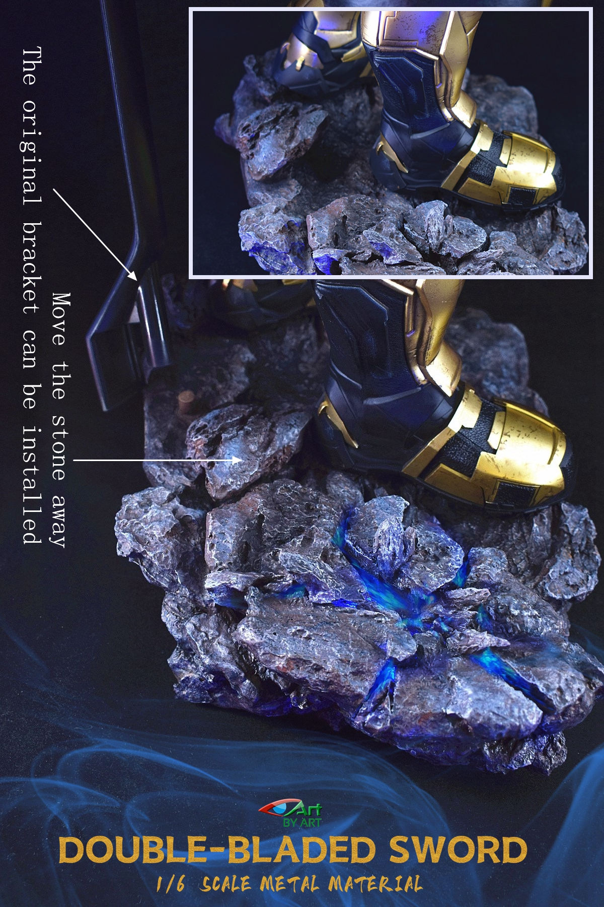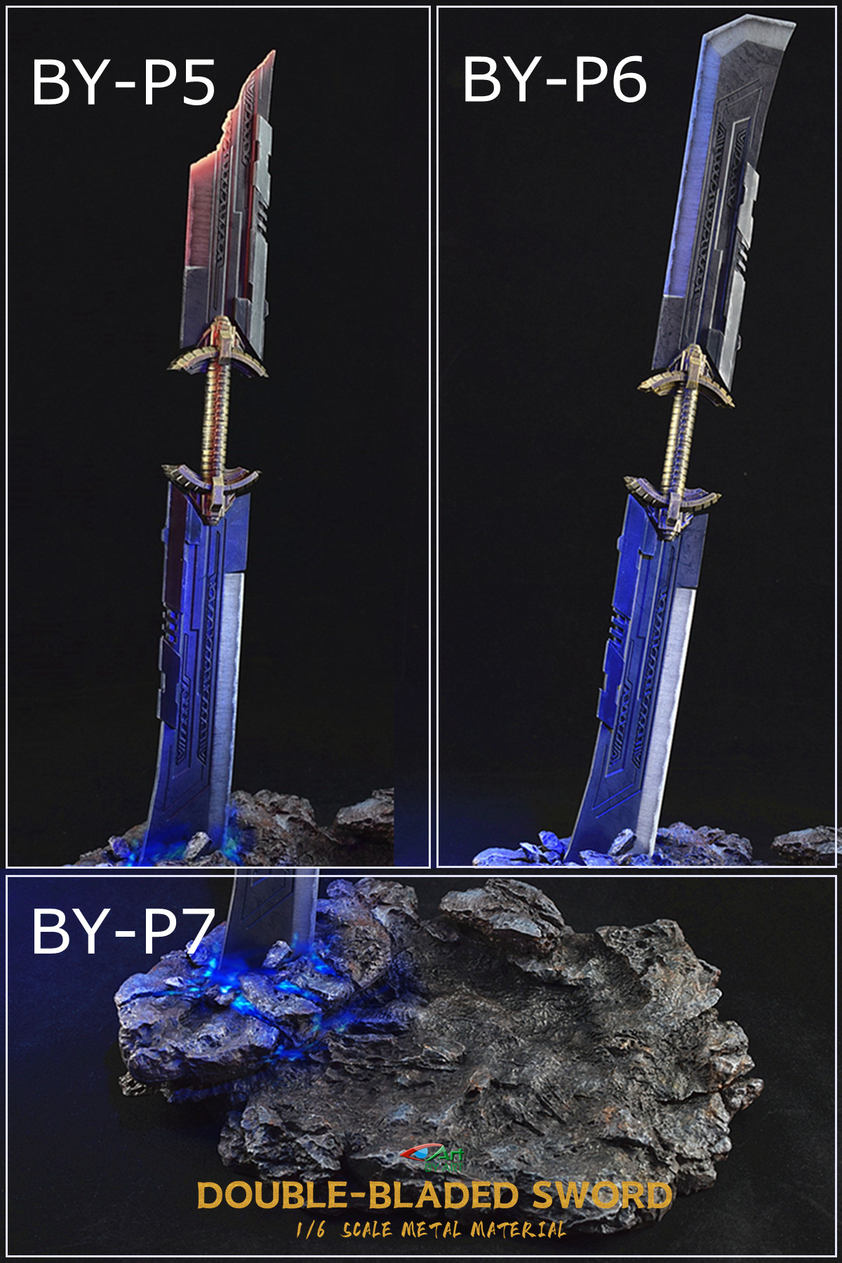 BY-ART New : 1/6 double-edged sword ( Double-Bladed Sword ) 1/6 double-edged sword (Double-Bladed Sword) BY-P5 : length 360mm ( metal material ) 1/6 double-edged sword (Double-Bladed Sword) BY-P6 : length 395mm ( metal material )Base ( B ase ) BY-P7 : length 250mm, width 160mm, height 60mm , the knife will glow when inserted, and it will automatically close after 7-8 seconds. After the stone is removed, the original HT bracket can be installed