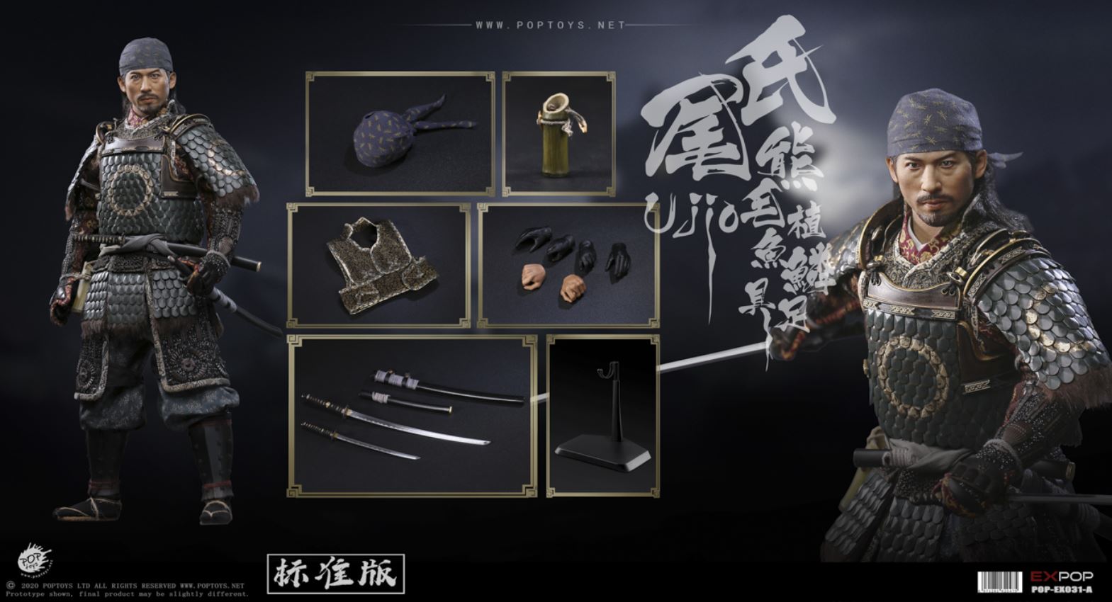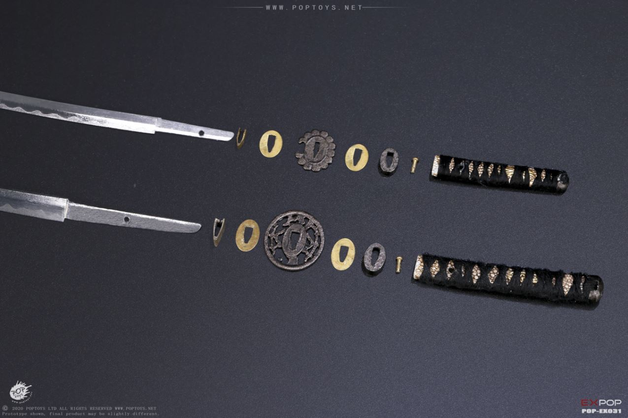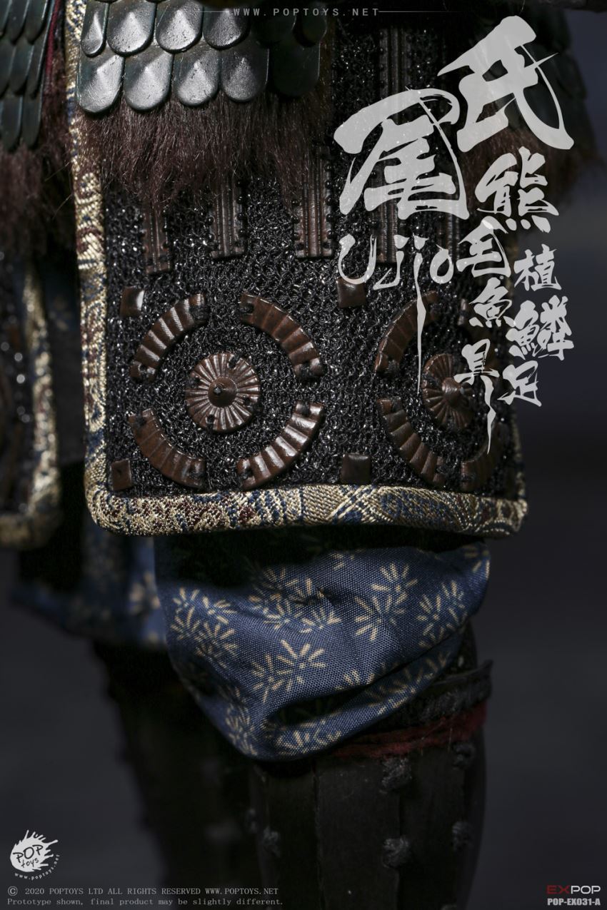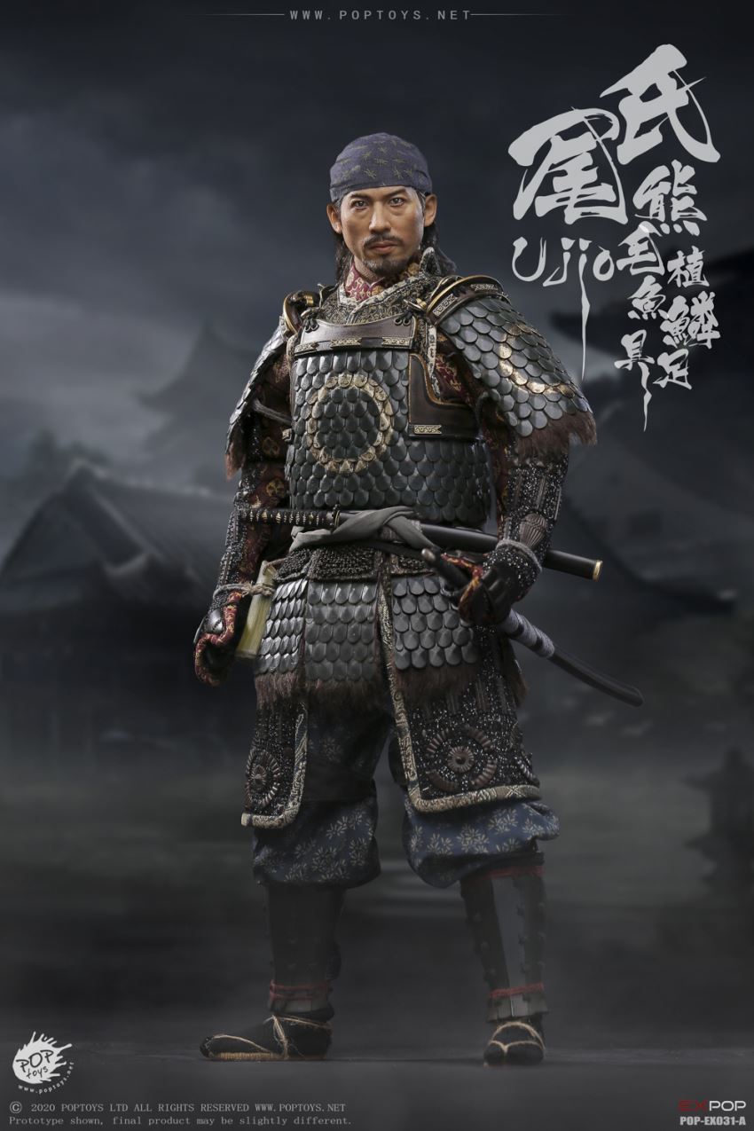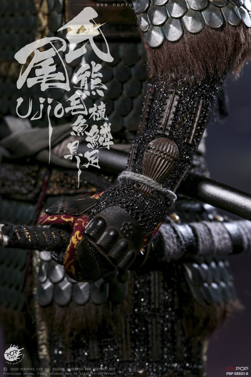 POPTOYS 1/6 EX031 Brave Samurai UJIO Standard100% alloy-made,steel fish scale armorEX031-A Standard version list:Head*1Male body*1Gloved hands*2 pairBare hands*1 pairKerchief*1Fish scale armor *1Fish scale shoulder armor*2Arm armor*2Cuish*1Jambeaux*2Under wear*1Coat*1Pants*1Waistband*1Bamboo tube*1Armored vest*1Socks*1 pairSandals*1 pairKatana(with katana scabbard)*1Wakizashi(with wakizashi scabbard)*1Figure stand*1