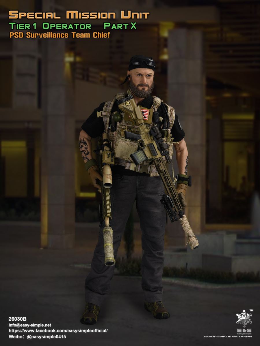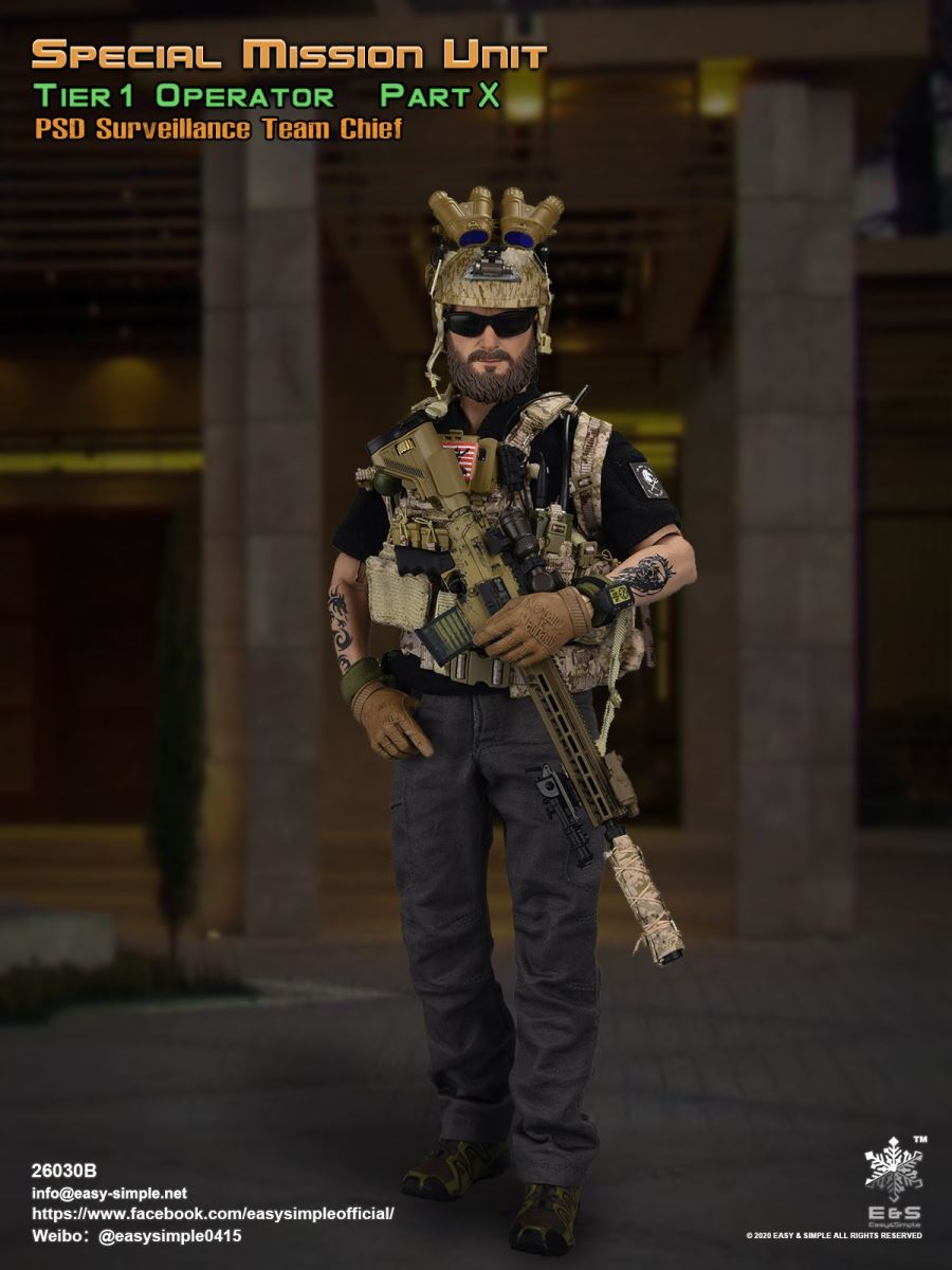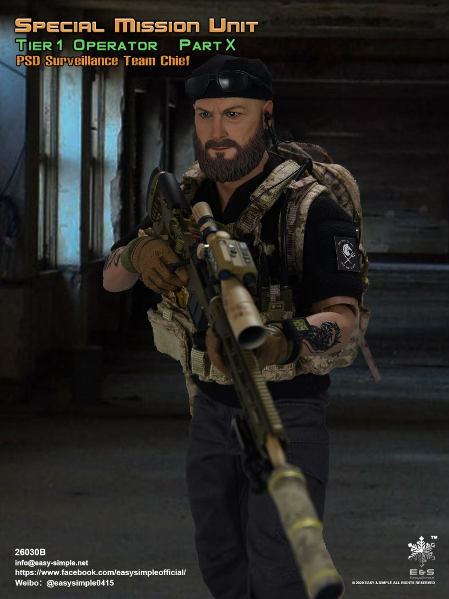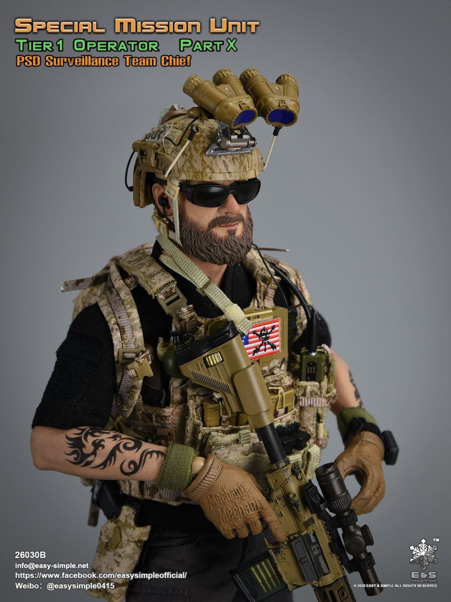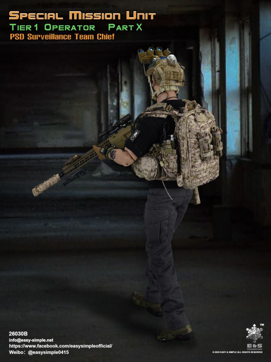 SKU: 26030BITEM: Special Mission Unit Part XPSD Surveillance Team Chief (Year 2020)Breakdown ListReal like Head SculptES-Buddy 2.0 BodyBoss Rugby Shirt *NewLEAF Combat Pants *ModifiedHead Scarf0612F Rigger’s BeltAOR1 Aero Assault Basic Armor Carrier *NewAOR1 MBITR PRC 148/152 PouchAOR1 2586 Admin Pouch *NewAOR1 Double Pistol Mag PouchAOR1 IFAK Pouch *NewAOR1 T.S.Q TourniquetAOR1 Titian Weapon Retention *NewDEVGRU Custome 5.56 RECCE RifleNF 2.5*10 Rifle ScopeTactical Compact ForegripQD 5.56 SuppressorLA5 Peq Indicator30rd Steel Mag30rd Pmag417 7.62 Designated Marksman RifleRazor HD 2 1-6 ScopeOffset MountMini Reddot SightLA5 Peq IndicatorFA-7.62SV SuppressorAOR1 Suppressor Cover Tactical Bipods417 10rd Mag417 20rd MagXM2010 .300 Sniper Rifle *NewNF 12-42x56 Rifle ScopeRAPTAR Multipurpose Tactical Module *NewTactical Bipods.300 MagG-19 9mm Pistol with MagwellX300 Weapon LightAOR1 6354DO ALS Pistol HolsterPistol MagAOR1 2670B Slim Medical Backpack *NewAOR1 FAST Maritime Cut HelmetL4G30 NVG Mount SystemGP NVG-18 (BNVS)Remote Battery PackTech Charge MLPSOriginal Tactical GlovesSpeedcross 3 BootsU94 Gen3 Dual Chanel PTT *NewLow Profile HeadsetPRC-152 RadioPRC-152 Extended WireFolding AntennaCarabineersForetrex 601 GPS *New640 Hellstar StrobeUtility KnifeM-67 Frag GrenadeMK13MOD0 Flash BangIR Light StickIP 11 Tactical Personal Terminal With Protective Case *NewSI Shocktube Goggle *NewWristband *NewPatches