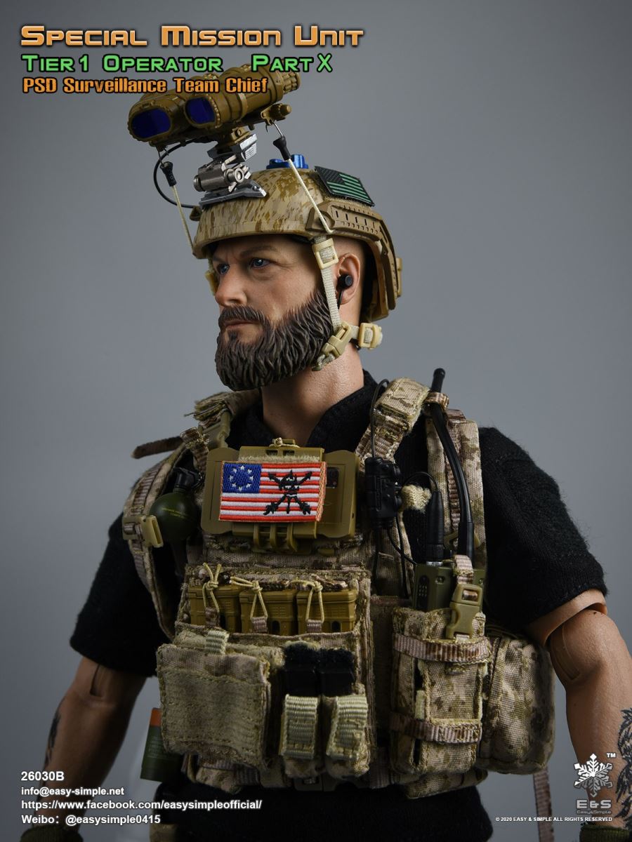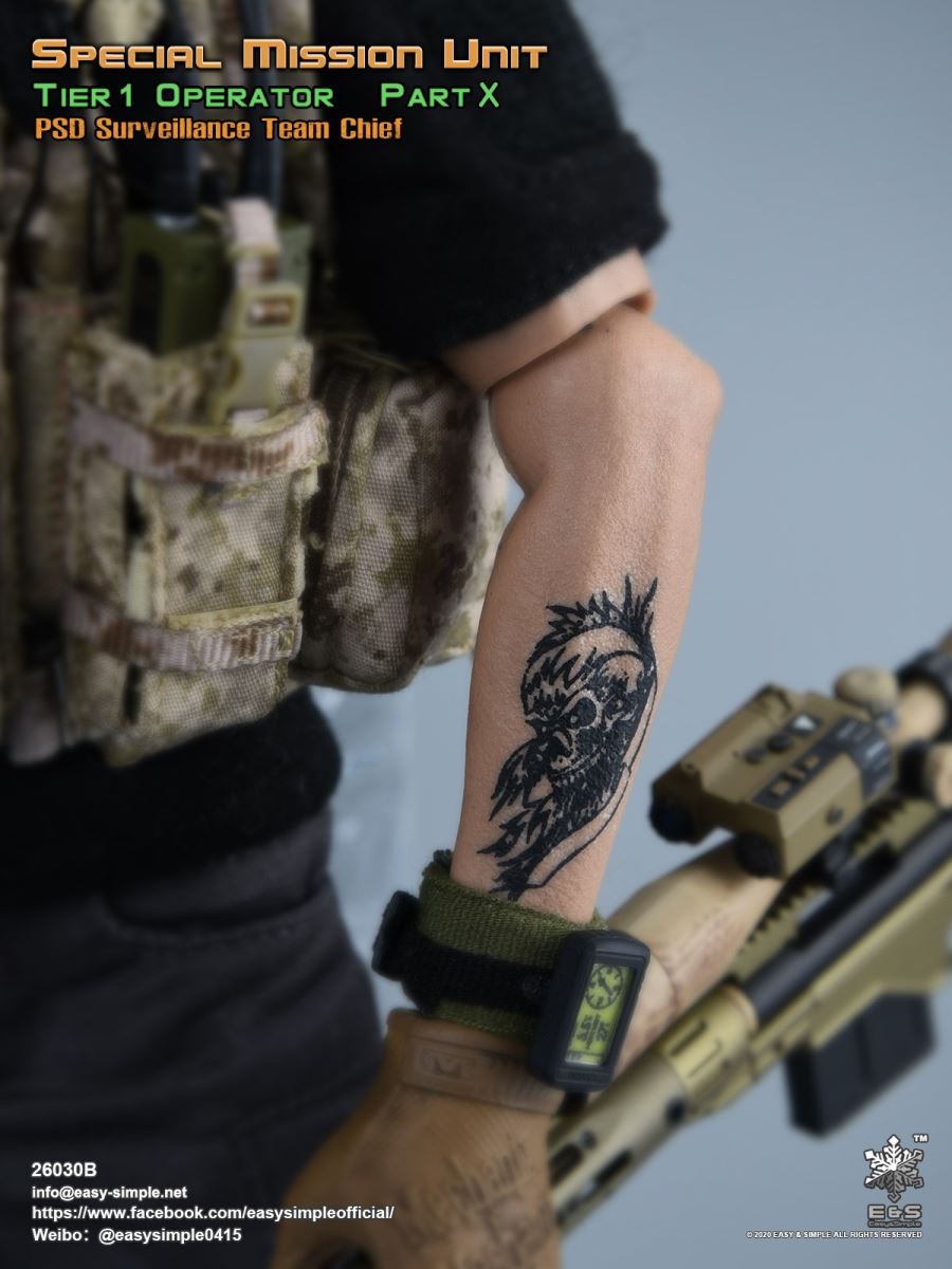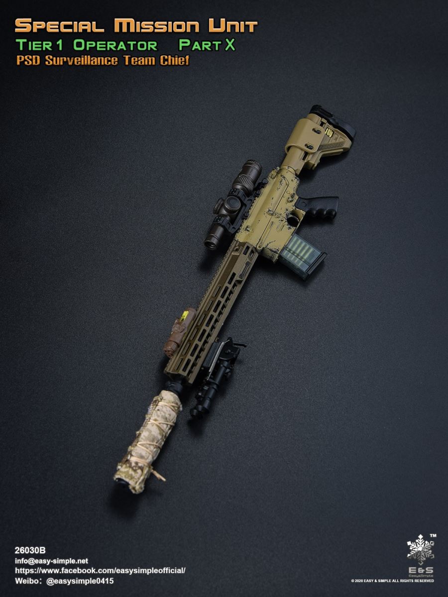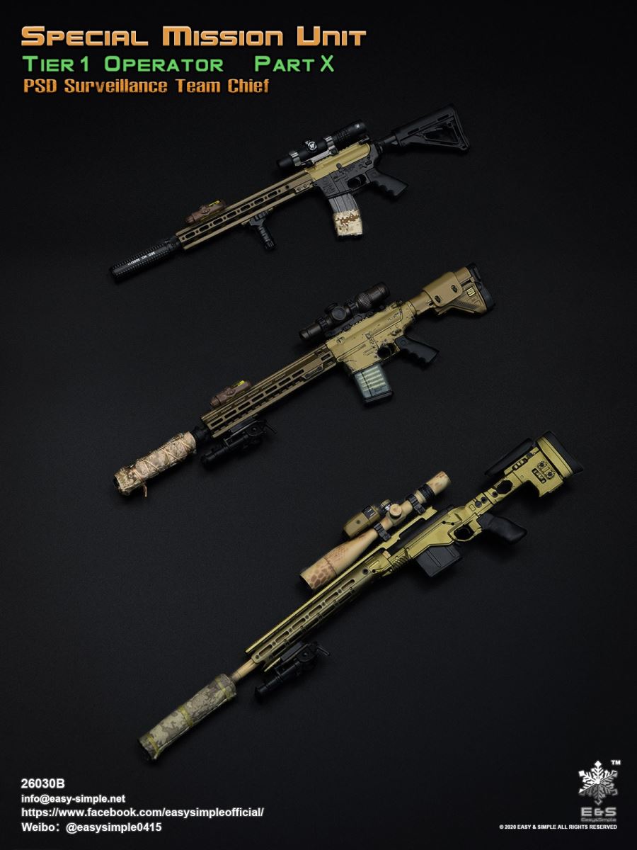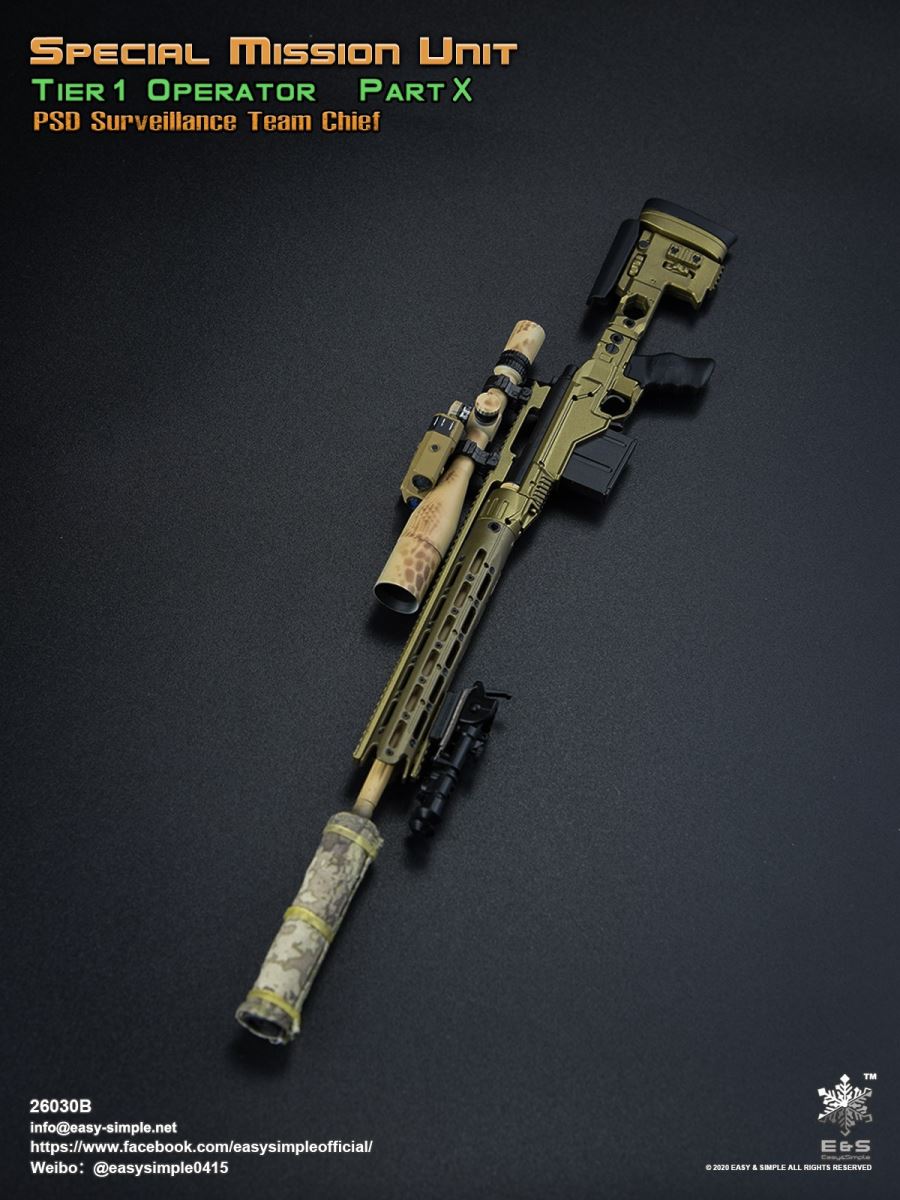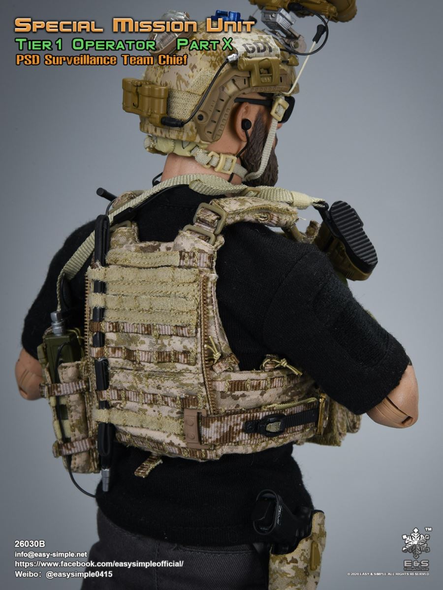 SKU: 26030BITEM: Special Mission Unit Part XPSD Surveillance Team Chief (Year 2020)Breakdown ListReal like Head SculptES-Buddy 2.0 BodyBoss Rugby Shirt *NewLEAF Combat Pants *ModifiedHead Scarf0612F Rigger’s BeltAOR1 Aero Assault Basic Armor Carrier *NewAOR1 MBITR PRC 148/152 PouchAOR1 2586 Admin Pouch *NewAOR1 Double Pistol Mag PouchAOR1 IFAK Pouch *NewAOR1 T.S.Q TourniquetAOR1 Titian Weapon Retention *NewDEVGRU Custome 5.56 RECCE RifleNF 2.5*10 Rifle ScopeTactical Compact ForegripQD 5.56 SuppressorLA5 Peq Indicator30rd Steel Mag30rd Pmag417 7.62 Designated Marksman RifleRazor HD 2 1-6 ScopeOffset MountMini Reddot SightLA5 Peq IndicatorFA-7.62SV SuppressorAOR1 Suppressor Cover Tactical Bipods417 10rd Mag417 20rd MagXM2010 .300 Sniper Rifle *NewNF 12-42x56 Rifle ScopeRAPTAR Multipurpose Tactical Module *NewTactical Bipods.300 MagG-19 9mm Pistol with MagwellX300 Weapon LightAOR1 6354DO ALS Pistol HolsterPistol MagAOR1 2670B Slim Medical Backpack *NewAOR1 FAST Maritime Cut HelmetL4G30 NVG Mount SystemGP NVG-18 (BNVS)Remote Battery PackTech Charge MLPSOriginal Tactical GlovesSpeedcross 3 BootsU94 Gen3 Dual Chanel PTT *NewLow Profile HeadsetPRC-152 RadioPRC-152 Extended WireFolding AntennaCarabineersForetrex 601 GPS *New640 Hellstar StrobeUtility KnifeM-67 Frag GrenadeMK13MOD0 Flash BangIR Light StickIP 11 Tactical Personal Terminal With Protective Case *NewSI Shocktube Goggle *NewWristband *NewPatches
