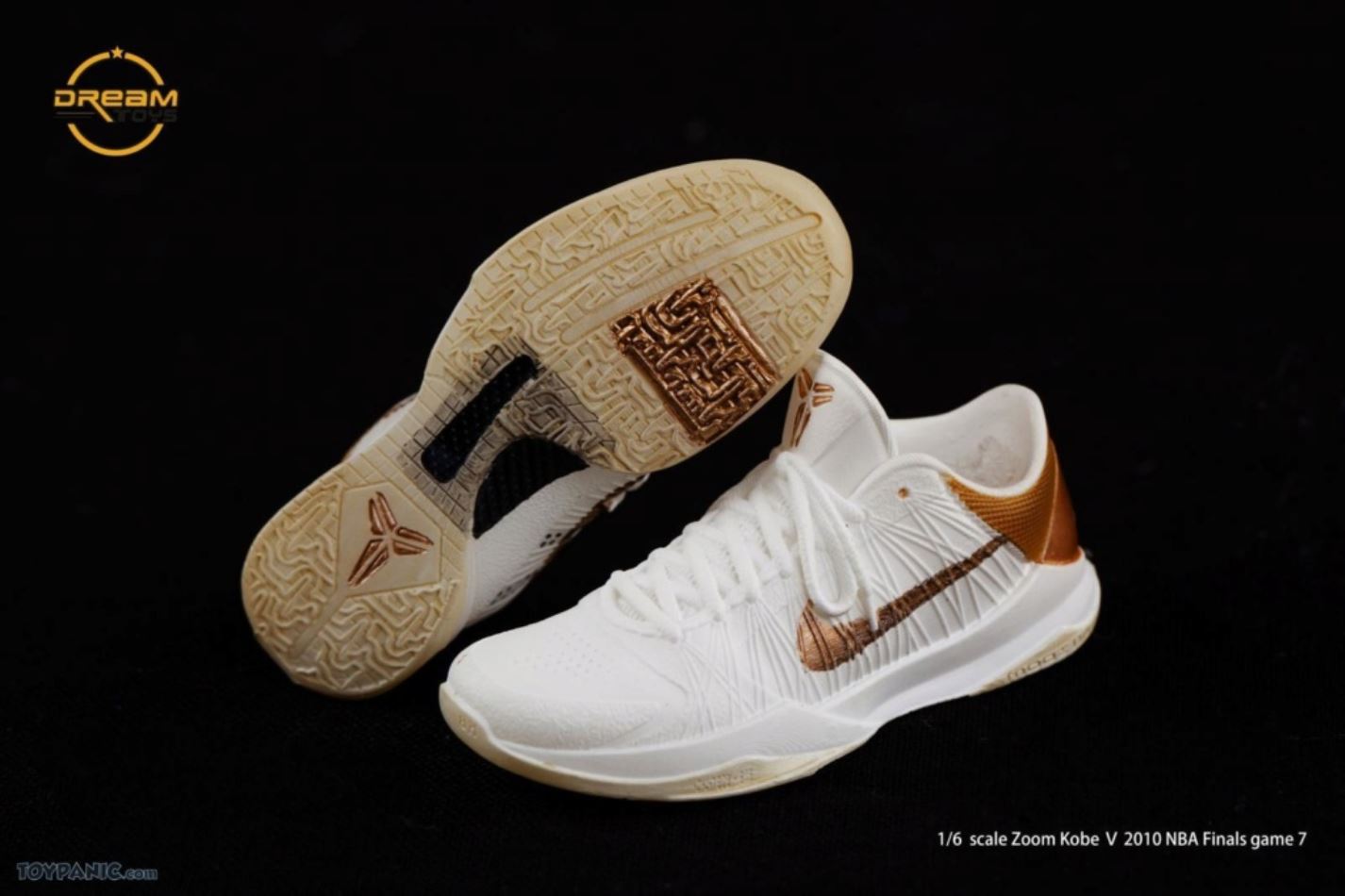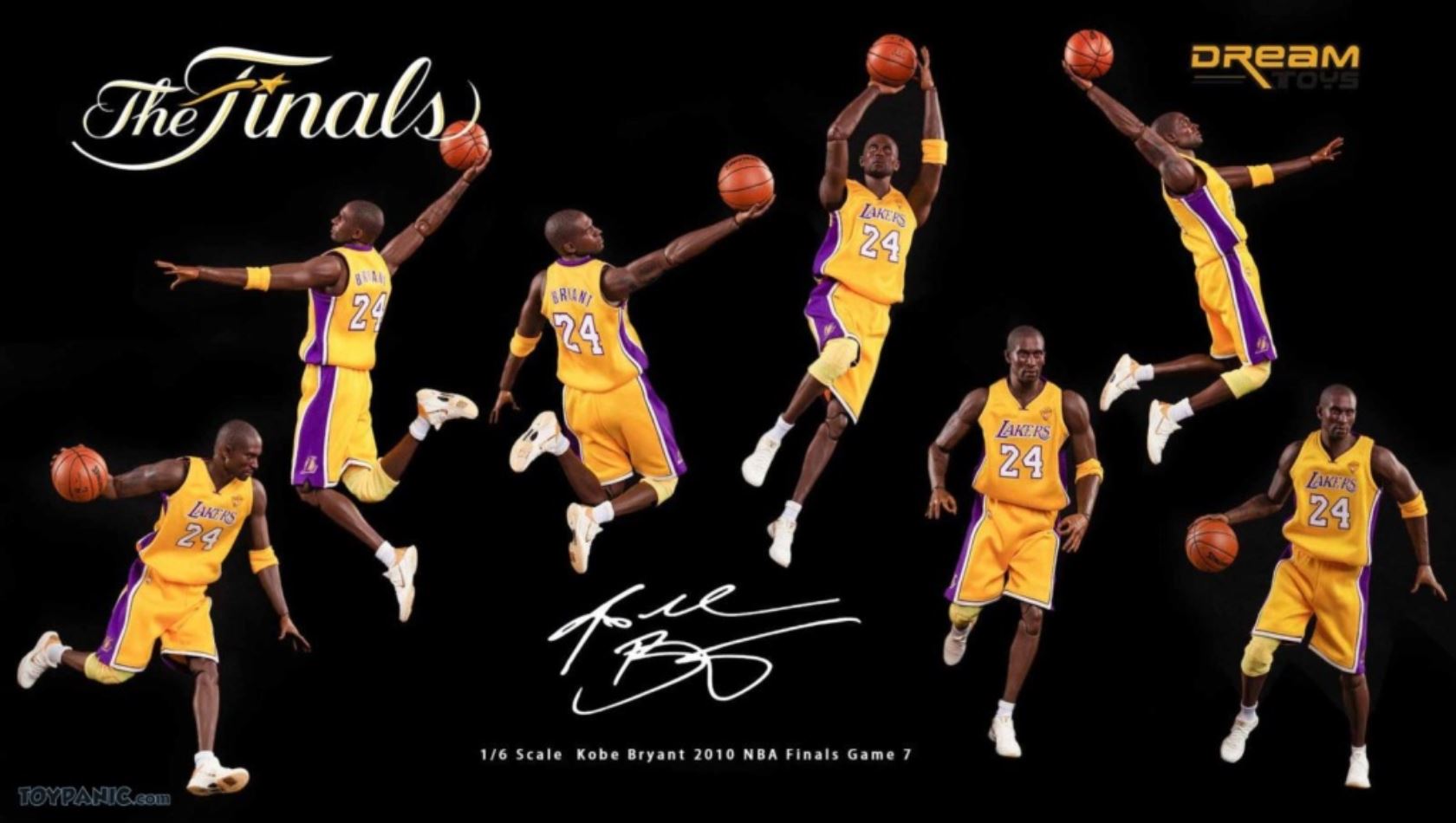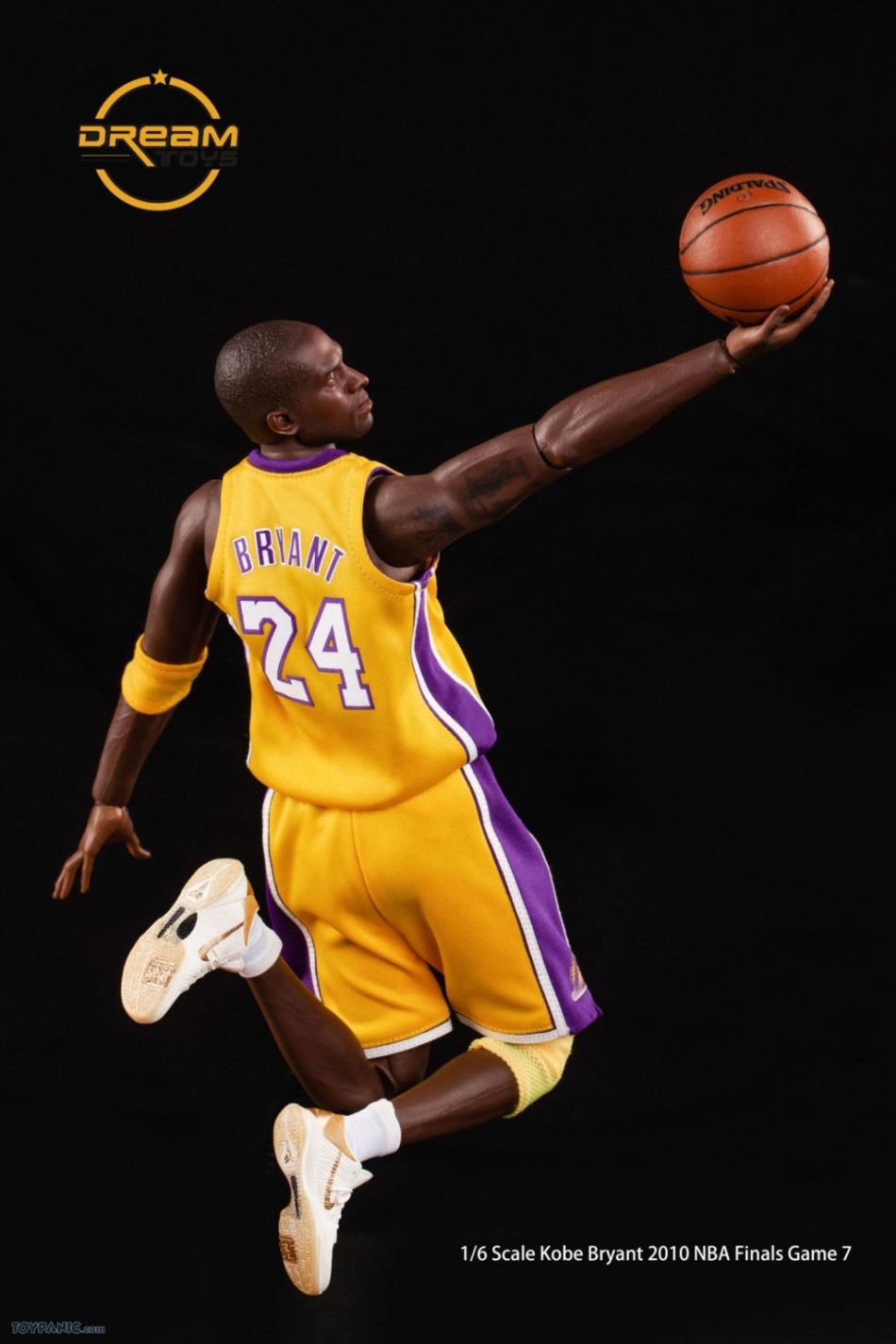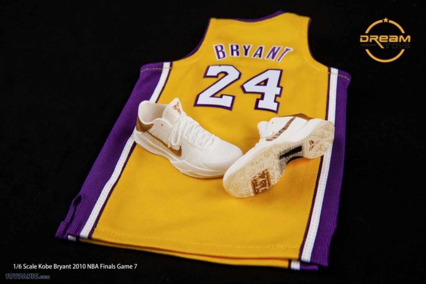 1/6 Kobe Bryant 2010 NBA Finals Game 7 From DREAMTOYS Code: KB2010Accessories include:1) Kobe Bryant 1/6 high-reduction headsculpt2) Exclusive 1/6 element body3) 8 Kobe Bryant special hand types (including 2 magnet hand types)4) 1 set of Yellow Lakers jerseys in the 2010 Final(Accessories include a pair of yellow elbow pads / yellow knee pads / white shorts / white socks)5) 1/6 Kobe ZOOM KOBE 5 platinum stage shoes 1 pair6) 1/6 scale 1 Spalding basketball7 1/6 Super Mobile 2010 Finals Kobe exclusive light stand platform.