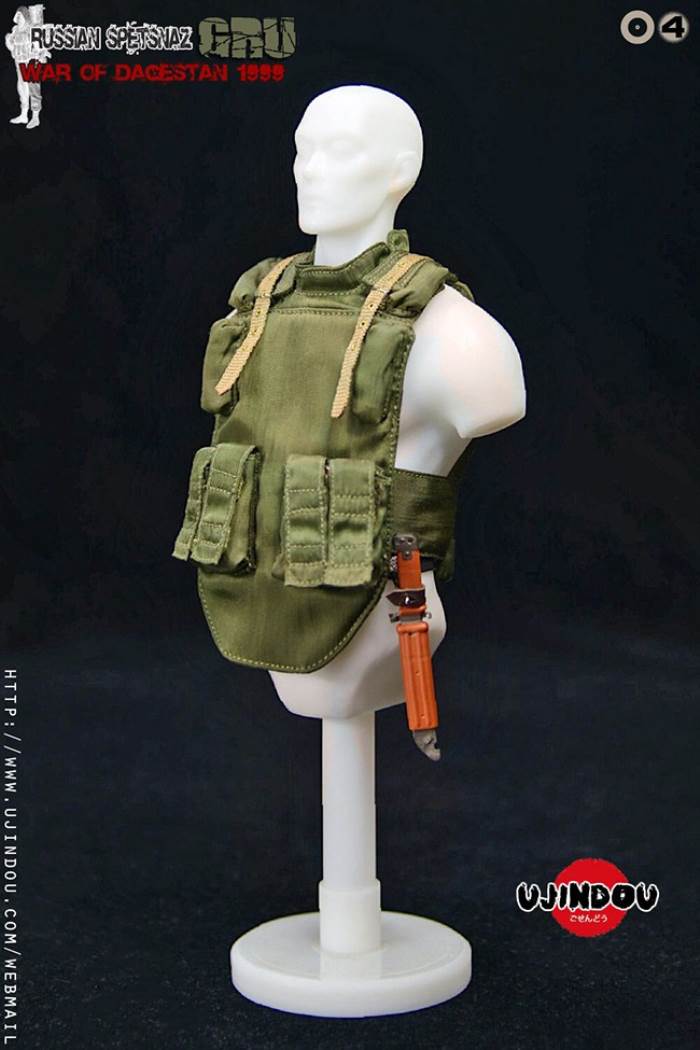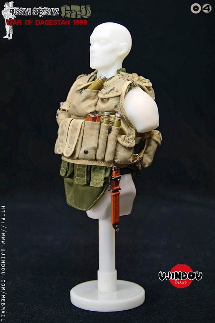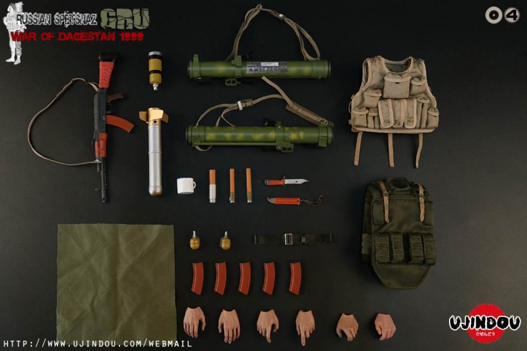 PRODUCT NAME: MILITARY WARFARE SERIES:Russian special forces Dagestan War 1999RUSSIAN SPETSNAZ GRU WAR OF DAGESTAN 1999PRODUCT ITEM NO. UD9004SET INCLUDES:Costume COSTUME:1X Khaki Goka-1 combat uniform KONDOR MINING KITGORDA-11X Army Green 6B5 Bulletproof Vest 6B5 BODY ARMOR1X Wolf Brown BVD Tactical Vest BVD VEST1X Black Uniform Belt RUSSIAN UNIFORM LEATHER BELT1X Wolf Brown Gun Belt AK RIFLE CARRYING SLING BELT1X Black Boots RUSSIAN BERCI COMBATBOOTSHANDKERCHIEFSimulation head sculpture HEAD-SCULPT1X head sculpture HEAD-SCULPT VLADIMIR1X body with palm/foot BODY W/RELAXED HANDS & FOOTSPalm PALMS:2PAIR GUN HOLDING HANDS 2PAIR GUN HOLDING HANDSACCESSORIES:1X Ashmir Individual Cloud Blast Launcher RPO-A SHMEL ROCKET INFANTRY FLAME THROWER1X Ashmir Warhead Rocket RPO-A SHMEL WARHEAD ROCKET2X Signal Flare PG 431 SIGNAL FLARE ( RSP)1X ROP 30 LIGHTING REACTIVE FLARES2X grenade RGD-5 HAND GRENADE1X tin mug cup TIN MUG1X tourniquet TURNIKETWEAPONS :1X AKS-74 assault rifle AKS-74 ASSAULT RIFLE1X rifle stock pad AK-47 COMBAT BUTT PAD1X bayonet + scabbard AK74 BAYONET AND SCABBARDMANNEQUIN BUST IS NOT INCLUDED.
