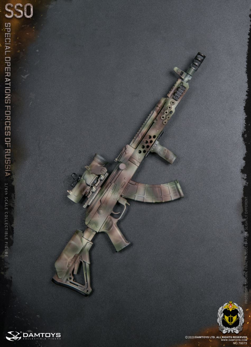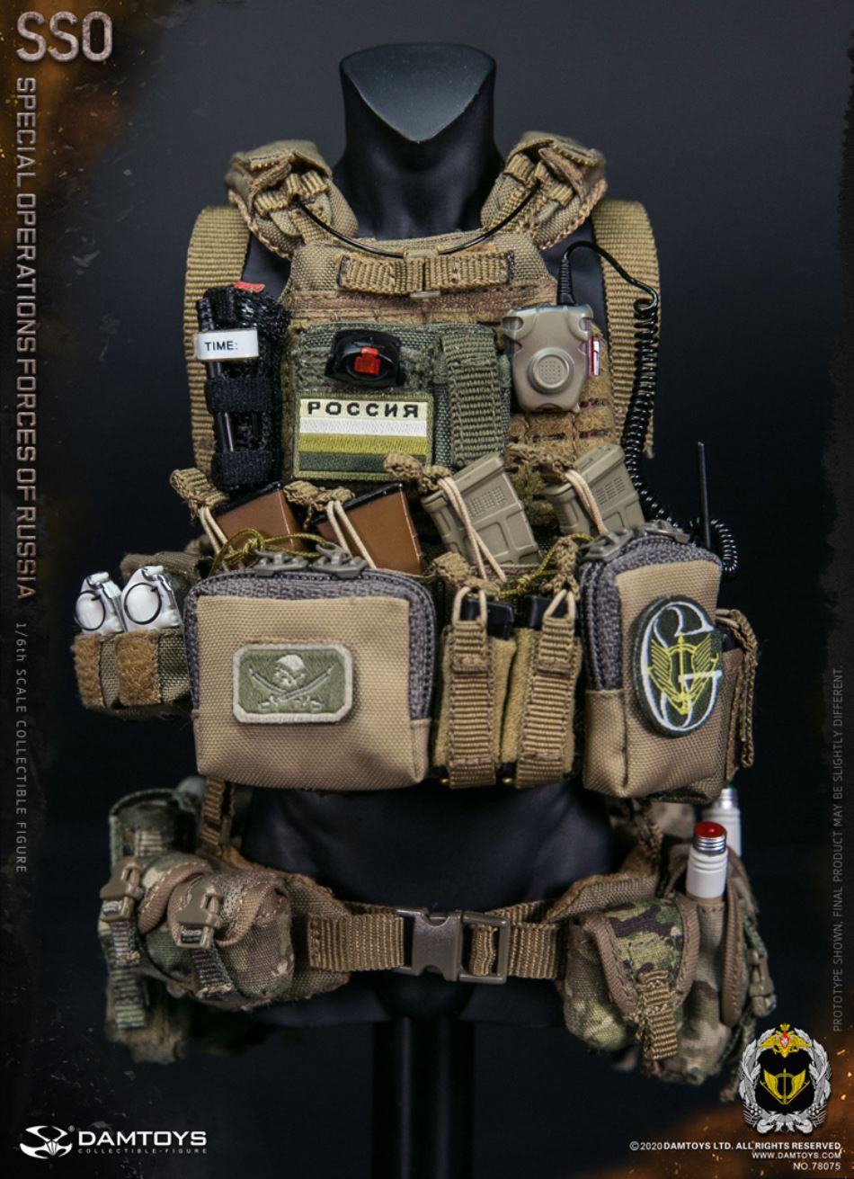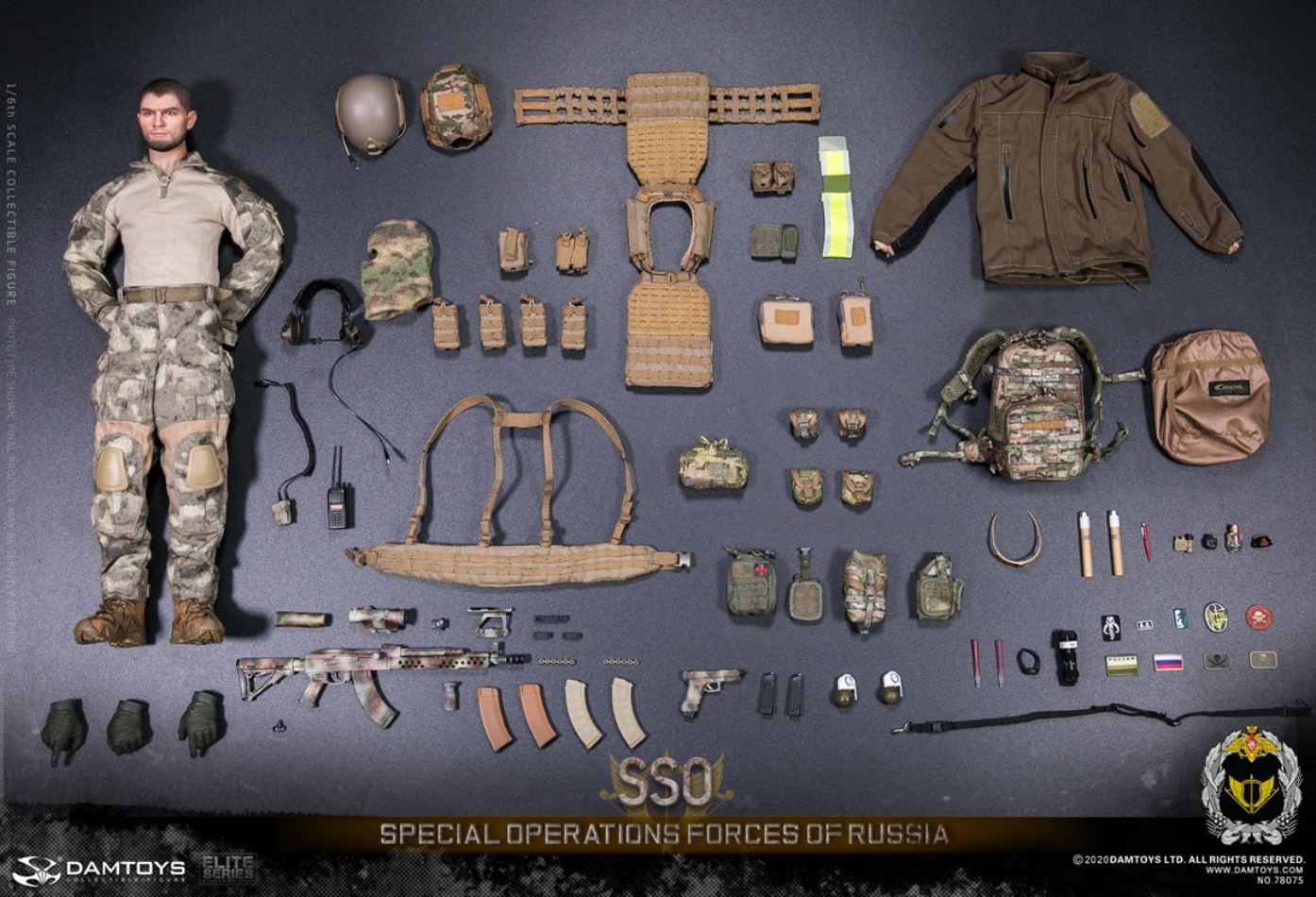 DAMTOYS 1/6 SPECIAL OPERATIONS FORCES OF RUSSIA (SSO)ACTION FIGURE NO.78075BODE: 6970569622743PARTLIST:REAL LIKE HEADSCULPTUREDAM 3.0 ACTION BADYFRAME GLASSESFAST HELMETHELMET COVER(MultiCam)SF HELMET LEDPETZL HEADLAMPMANTA STROBEBH TACTICAL GLOVES x3FACE MASK (A-Tacs FG)TACTICAL BELTECIG G-LOFT JACKETECIG G-LOFT JACKET POUCHG2 COMBAT SUITG2 COMBAT PANTSBDU BELTADMIN POUCHSRVV GP POUCHAID POUCHRADIO POUCHGP POUCH A x 2GP POUCH BTOOL POUCH ATOOL POUCH BGTX BOOTSTACTICAL TAC TEC PLATE CARRIERAK-74M RIFLESPECTER DR 1.5-6X SIGHT WITH REDDOT SIGHTM AK MAG x2+1AK74M MAG x2TROY FULL LENGTH RAIL HANDGUARDL MODULAR RAIL SECTIONS MODULAR RAIL SECTION x2TROY SQUID GRIP x2FLASH HIDERCTR STOCKM GRIPSLING ADAPTORCTR STOCK CHEEK RISERMOLLE RIFLE MAG POUCH x4SRVV SLINGG17 PISTOLG17 MAG X2+1DELTA HOLSTERDOUBLE PISTOL MAG POUCHSRVV GP POUCH(MultiCam)SRVV MUL BACKPACKGRENADE POUCH x2DOUBLE GRENADE POUCHRGO GRENADERGN GRENADEROP FLARES POUCHROP FLARES (red)ROP FLARES (green)VX RADIOPTTPELTOR COMTEC II HEADSETWATCHID PATCH x 6A POS+ PATCHRUS FLAG PATCH x2LIGHT STICK x2IRT REFLECTIVE ARMBANDCOMBAT APPLICATION TOURNIQUE