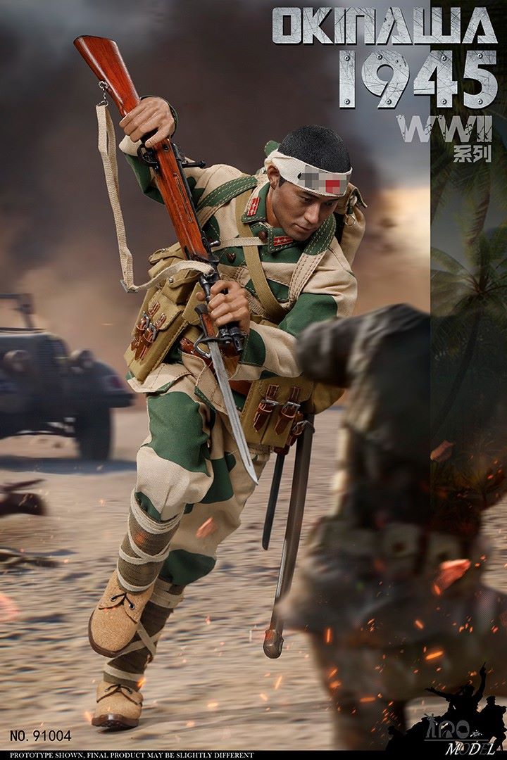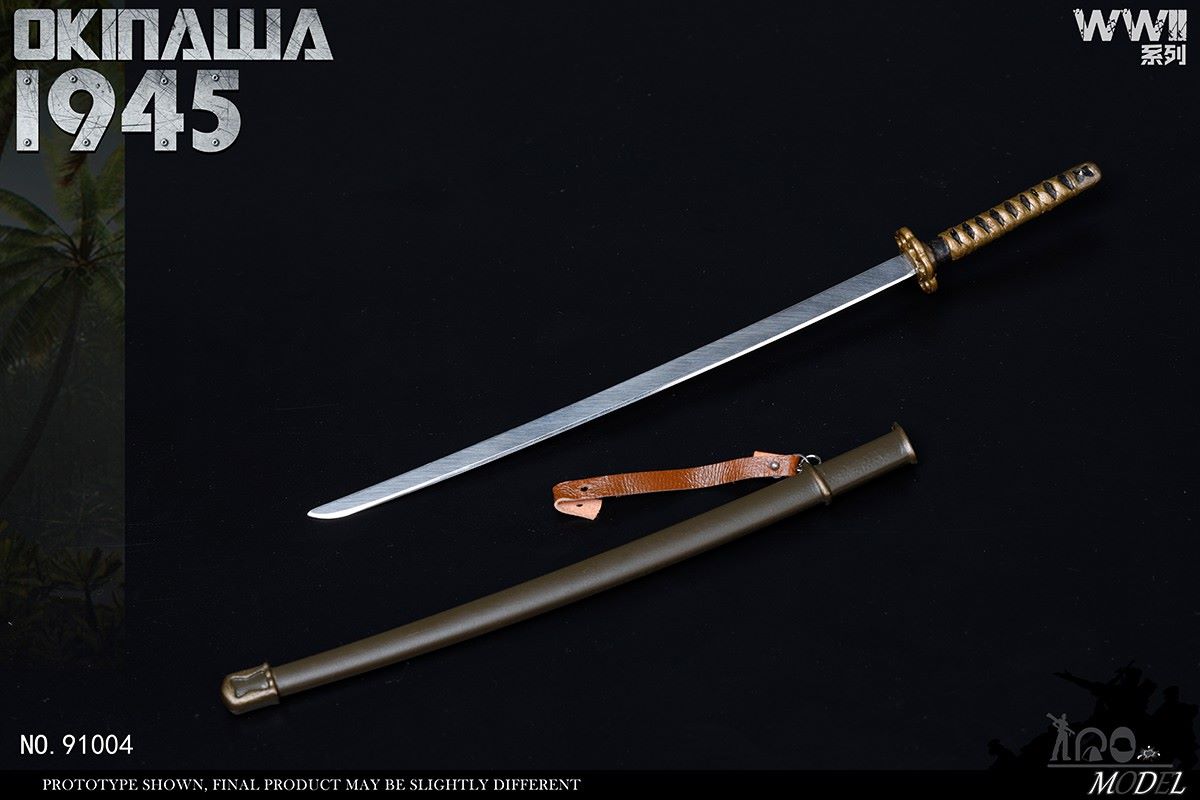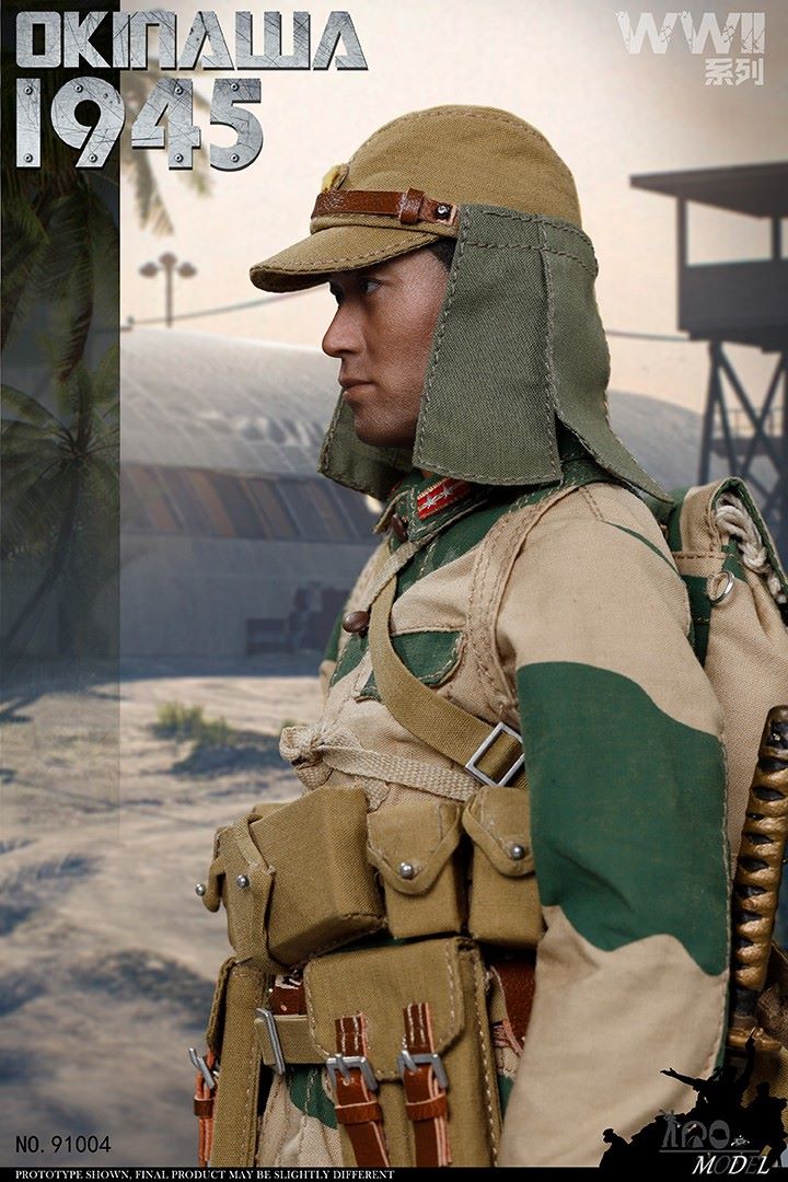 IQO Model new product (NO.91004): 1/6 WWII 1945 Battle of OkinawaConfiguration list: -one(1) 1/6 simulation head carving -one(1) Movable entity -eight(8)Pieces of Interchangeable PalmsCostumes: -one(1) Trousers -one(1) Jacket -one(1) Hat -one(1) Drapery -two(2) Shoes -two(2) Leggings -one(1) Belt(dermal) -two(2) BeltAccessory: -two(2) Cartridge BAG -one(1) Bayonet cove (leather) -one(1) Kettle (metal) -one(1) Head wear -one(1) Backpack -five(5) Bag -one (1) Sundry BAG -one(1) Type 100 submachinegun (metal, wood) -one(1) Pistol (metal) -one(1) Pistol pack -one(1) Sabre (metal) -one(1) Bayonet (metal) -two(2) Grenade (metal) -one(1) Adsorption bomb (metal, wood) -one(1) Black figure stand