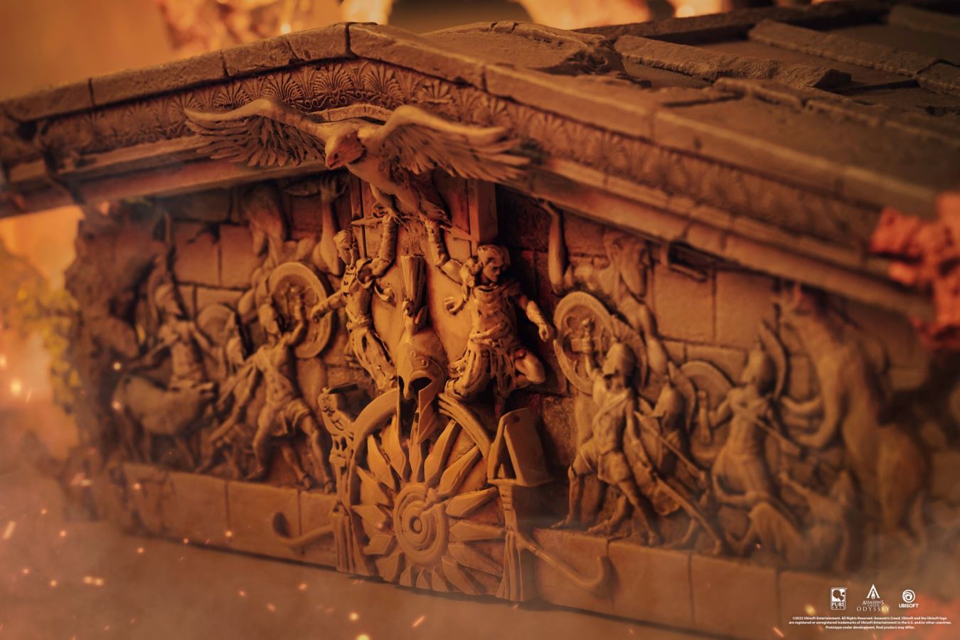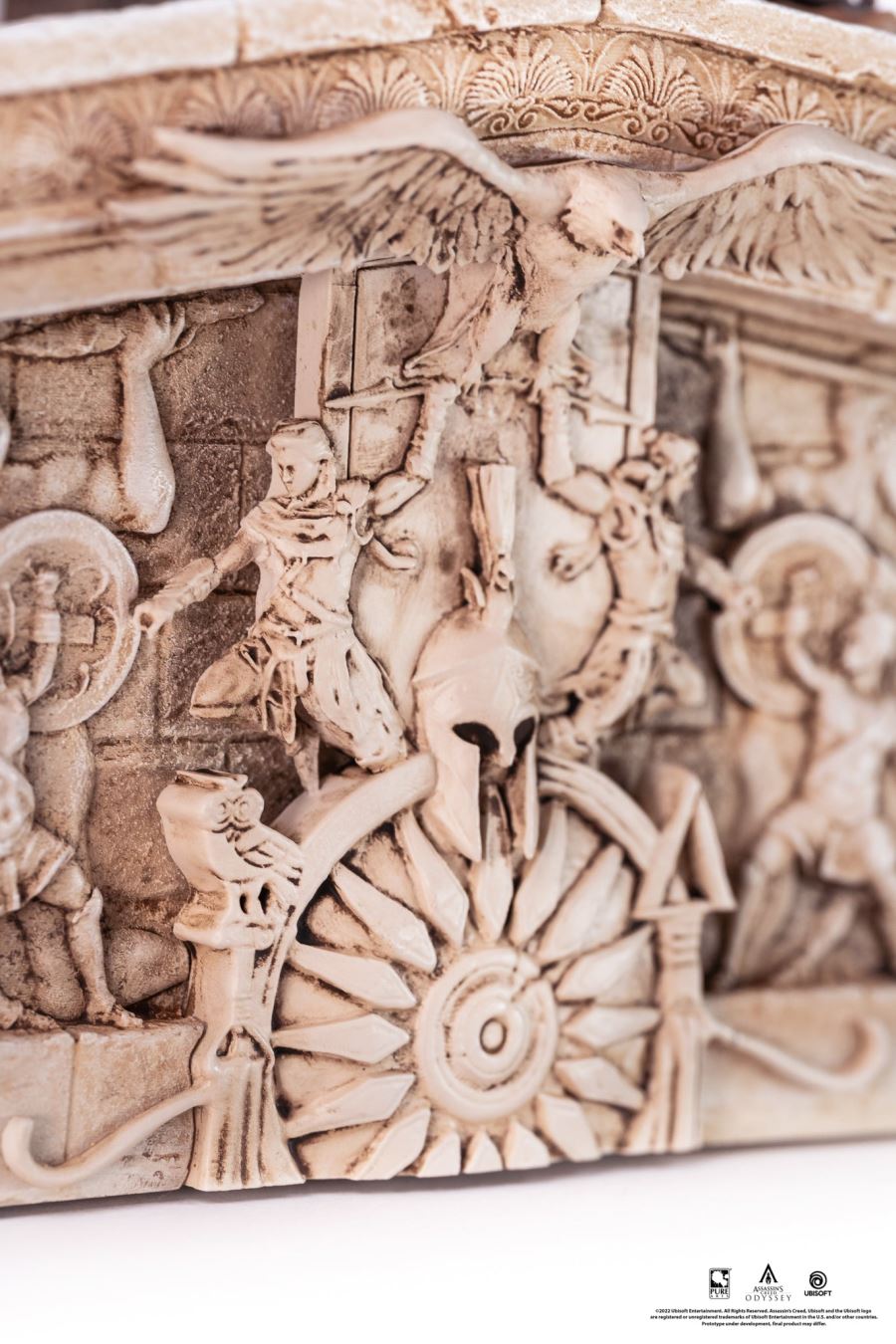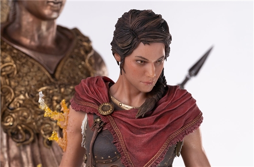 ASSASSIN'S CREED: ANIMUS KASSANDRAIf I was your punishment, you’d already be dead.” – KassandraKnown as the Eagle Bearer and Misthios, Kassandra the deadly Spartan mercenary of Greece would not only hunt and eliminate her prey with ease but take on powerful organizations such as the Cult of Kosmos and the Order of the Ancients as well.PureArts proudly presents the Assassin’s Creed: Animus Kassandra ¼ Scale Statue – one of the most requested Animus statues by fans worldwide! This stunning collectible includes two head poses and an elaborate LED lit base featuring a massive bronze statue of Athena crumbling into our signature Animus Transition effect.PureArts.com Exclusive Edition:With a limited edition size of only 500 units, the PureArts.com Exclusive Edition includes a wearable replica of Kassandra’s golden brooch!Product Highlights:Two full head poses (with and without Mercenary helmet)Display base for extra head poseLED lit base with bronze colored Athena Statue and engravings depicting Alexios in battleIncredibly detailed sculpt with classic Misthios battle attire and broken spear.Exclusive Edition includes a wearable replica of Kassandra’s golden broochProduct Features:License: Officially licensed by UbisoftScale: ¼ ScaleEdition Size: 500 Exclusive Editions, 2000 Standard EditionsMaterial: PolyresinAvailability: WorldwideEstimated Delivery: Q2 2023Requires 3 AA batteries (not included)