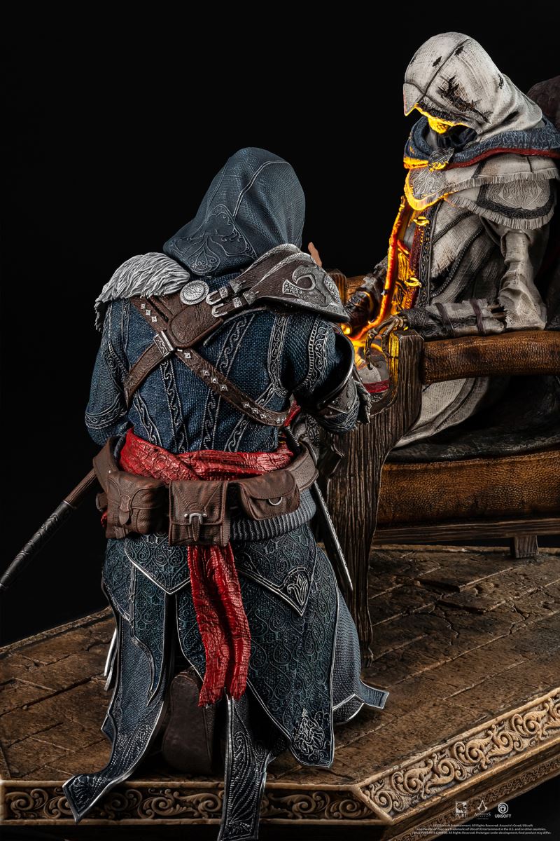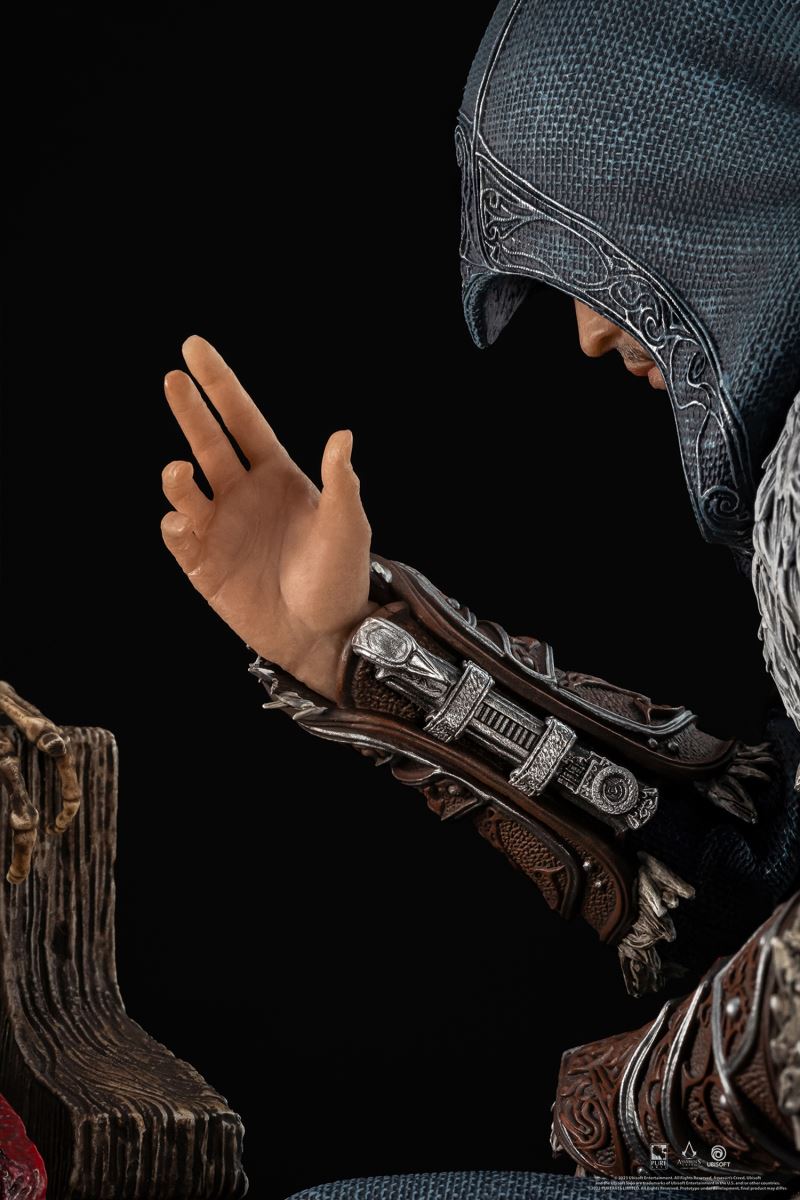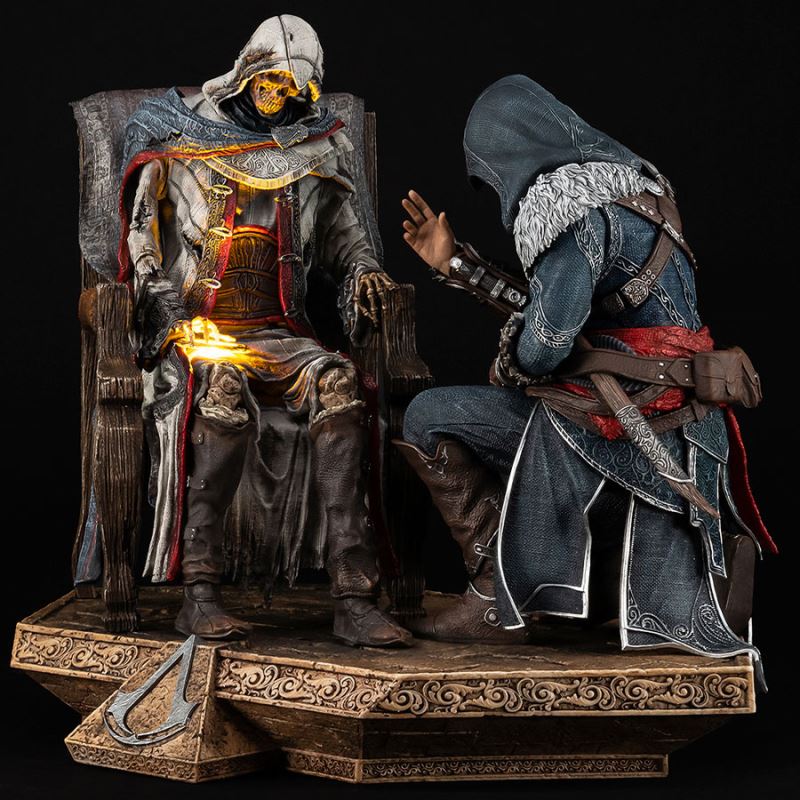 “I have lived my life as best I could, not knowing its purpose, but drawn forward like a moth to a distant moon. And here, at last, I discover a strange truth.” – Ezio AuditoreEzio Auditore entered the Library of Altaïr Ibn-La’Ahad expecting to find books. Instead came face to face with the remains of Altaïr himself, seated in a chair and holding a Memory Seal in his hand. Kneeling before Altair to pay his respects, we’ve captured the pivotal moment when Ezio discovers his life’s purpose!Re-live this unforgettable moment in Assassin’s Creed Revelations with our Assassin's Creed R.I.P. Altaïr Sixth Scale Diorama rendered in exquisite detail and care.BrandAssassins CreedCharacterEzio Auditore AltairManufacturerPureArtsTypeDioramaSixth Scale DioramaGenreFantasy Video Game HistoricThe Assassin's Creed: RIP Altair Sixth Scale Diorama features:LED-lit Memory SealHighly detailed painted sculptPolyresin + Mixed MediaMaterialsPolystone , Mixed MediaProduct SizeHeight: 12 (30.5 cm)Width: 14.5 (36.8 cm)Depth: 9 (22.9 cm)Weight: 8 lbs (3.6 kg) ** Size and weight are approx. valuesLearn moreSKU912139UPC713929404520Item shown is a prototype. When shipped, the final production piece may differ in appearance.©2022 Ubisoft Entertainment. All Rights Reserved. Assassin's Creed, Ubisoft and the Ubisoft logo are registered or unregistered trademarks of Ubisoft Entertainment in the U.S. and/or other countries. ©2022 PUREARTS LIMITED. All Rights Reserved.