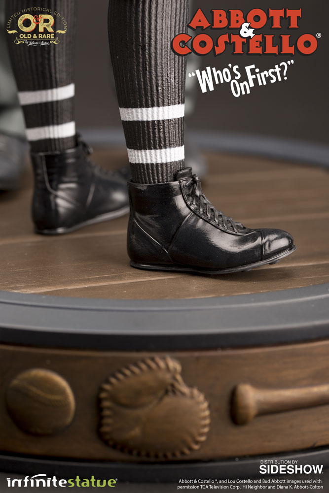 Sideshow และ Infinite Statue ภูมิใจที่ได้นำเสนอ Abbott & Costello ว่า "ใครคือคนแรก?" 1: 6 Scale Statue จาก Old & Rare Series เรารับแรงบันดาลใจจากภาพยนตร์ในปี 1945 ที่พวกเขาเล่นเป็นตัวละครในช่วงต้นศตวรรษที่ 20 มีการกล่าวกันว่าในระหว่างการถ่ายทำฉากนี้ทีมงานทั้งหมดไม่สามารถยับยั้งเสียงหัวเราะของพวกเขาได้ซึ่งสามารถได้ยินได้ในการบันทึกเสียงดั้งเดิม นักแสดงสองคนนี้คือ Abbott & Costello นี่คือประวัติศาสตร์ของภาพยนตร์ นี่เป็นเรื่องตลกบริสุทธิ์โดยศิลปินสองคนที่ไม่มีใครสามารถเอาชนะได้