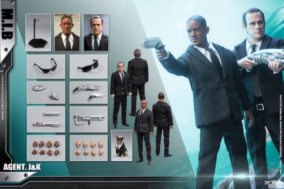 Brand: PCTOYS Ratio: 1/12 Item No.: Agent J: PC022A Agent K: PC022B Two-person suit: PC022CWeight: 0.4KG Material: PVC/ABS/Fabric Cut-off time: May 18, 2021 Shipping time: Third quarter of 2021 Agent J: PC022A list1. Artificial head sculpture*12. Super movable body*1 (Crazy Figure)3. A pair of fist hands4. A pair of gunhands 5. A pair of grip hands6. A pair of relaxed palms7. Amnesia stick* 28. Space-time shuttle*19. Alien device*110. Sunglasses*111. Black suit jacket*112. Black suit pants*113. White T-shirt*114. Lining*115. Belt*116. Tie*117. Socks*118. A pair of bare feet19. A pair of leather shoes20. Drawer base *1=====================Agent K: PC022B list1. Simulation head sculpture*12. Super movable body*1 (Crazy Figure)3. A pair of fist hands4. A pair of gunhands 5. A pair of grip hands6. A pair of relaxed palms7. Atomic pistol* 18. Hand cannon*19. Time shuttle gun*110. Sunglasses*111. Black suit jacket*112. Black suit pants*113. White T-shirt*114. Lining*115. Belt* 116. Tie * 117. A pair of socks18. A pair of bare feet19. A pair of leather shoes20. Drawer base * 1=====================Two-person suit: PC022C listAgent J: PC022A+ Agent K: PC022B Free puppy*1+Puppy sunglasses*1Product:PCTOYSName:MIB Scale:1/12 No: J:PC022A K:PC022B J+K:PC022C Material:ABS/PVC Perorder is available before:May 18, 2021 Release date:Third quarter of 2021 List:J:PC022AMan in Black J1. Head sculpture*12. Super movable body*1 (Crazy Figure)3. A pair of fisting hands4. A pair of gun hand5. A pair of holding hands6. A pair of relax hand7. Amnesia stick*28. Space-time shuttle *19. Alien device *110. Sunglasses*111. Black suit jacket *112. Black suit pants*113. White T-shirt*114. Lining*115. Belt*116. Tie*117. Socks*118. A pair of bare feet19. A pair of leather shoes20. Drawer base *1K:PC022BMan in Black K1. Head sculpture*12. Super movable body*1 (Crazy Figure)3. A pair of fisting hands4. A pair of gun hand5. A pair of holding hands6. A pair of relax hand7. Atomic pistol*18. Portable gun*19. Time and Space Shuttle Gun*110. Sunglasses*111. Black suit jacket *112. Black suit pants*113. White T-shirt*114. Lining*115. Belt*116. Tie*117. A pair of socks18. A pair of bare feet19. A pair of leather shoes20. Drawer base *1PC022C:Man in Black J1. Head sculpture*12. Super movable body*1 (Crazy Figure)3. A pair of fisting hands4. A pair of gun hand5. A pair of holding hands6. Relax a pair of palms7. Amnesia stick*28. Space-time shuttle *19. Alien device *110. Sunglasses*111. Black suit jacket *112. Black suit pants*113. White T-shirt*114. Lining*115. Belt*116. Tie*117. Socks*118. A pair of bare feet19. A pair of leather shoes20. Drawer base *1Man in Black K1. Head sculpture*12. Super movable body*1 (Crazy Figure)3. A pair of fisting hands4. A pair of gun hand5. A pair of holding hands6. A pair of relax hand7. Atomic pistol*18. Portable gun*19. Time and Space Shuttle Gun*110. Sunglasses*111. Black suit jacket *112. Black suit pants*113. White T-shirt*114. Lining*115. Belt*116. Tie*117. A pair of socks18. A pair of bare feet19. A pair of leather shoes20. Drawer base *121. Puppies*122. Puppy Sunglasses*1
