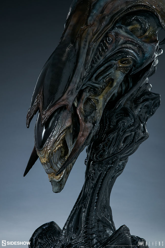 ABOUT THIS LEGENDARY SCALE™ BUST“All we know is that there’s still no contact with the colony, and that a xenomorph may be involved.” Sideshow presents the Alien Queen Mythos Legendary Scale™ Bust.Sideshow’s Mythos series captures the limitless possibility of fan-favorite franchises by emphasizing core concepts and introducing unique ideas to popular fictional universes. This Alien Queen Mythos bust takes the tyrannical terror to an entirely new level, evolving the Xenomorph queen into a newly frightening figure in the cold vacuum of space.The Alien Queen Mythos Legendary Scale™ Bust measures a terrifying 30” tall as the monstrous matriarch rears her ridged crest above the Xenomorph hive. The creature's imposing crown flares out with spines and detailed bio-mechanical elements, capturing H. R. Giger’s signature style in a unique way. Beneath the domed skull, the Alien Queen’s clear, pointed fangs and outer tusks are exposed in a vicious hiss. The carapace of this intensely detailed collectible is painted with cool tones, blending the classic coloration of the Xenomorph creature with nightmarish new textures.The Alien Queen Mythos Legendary Scale™ Bust rests on a deeply detailed base that compliments her design and incorporates even more of Giger’s iconic aesthetic, making an epic tribute to the undisputed ruler of the hive.Bring home the Alien Queen Mythos Legendary Scale™ Bust to lead your infestation of Alien collectibles today.BrandAlienManufacturerSideshow CollectiblesTypeLegendary Scale™ BustArtistsSteve Schumacher (Sculpt)Simon Garcia (Mold and Cast)Chadwick Andersen (Mold and Cast)Jeremy Williams (Mold and Cast)Joe Dunaway (Paint)Paul Komoda (Development) (Design)Anthony Mestas (Development) (Design)ADDITIONAL DETAILS & DIMENSIONSMaterialsFiberglass , ResinProduct SizeHeight: 30 (762 mm) | Width: 17.5 (444.5 mm) | Depth: 22 (558.8 mm) | *Dimensional Weight0.00 lbs (0 kg) [Intl. 0.00 lbs (0 kg)] ** Size and weight are approximate values.SKU400325UPC747720239920Aliens TM & © 2019 Twentieth Century Fox Film Corporation. All Rights Reserved.