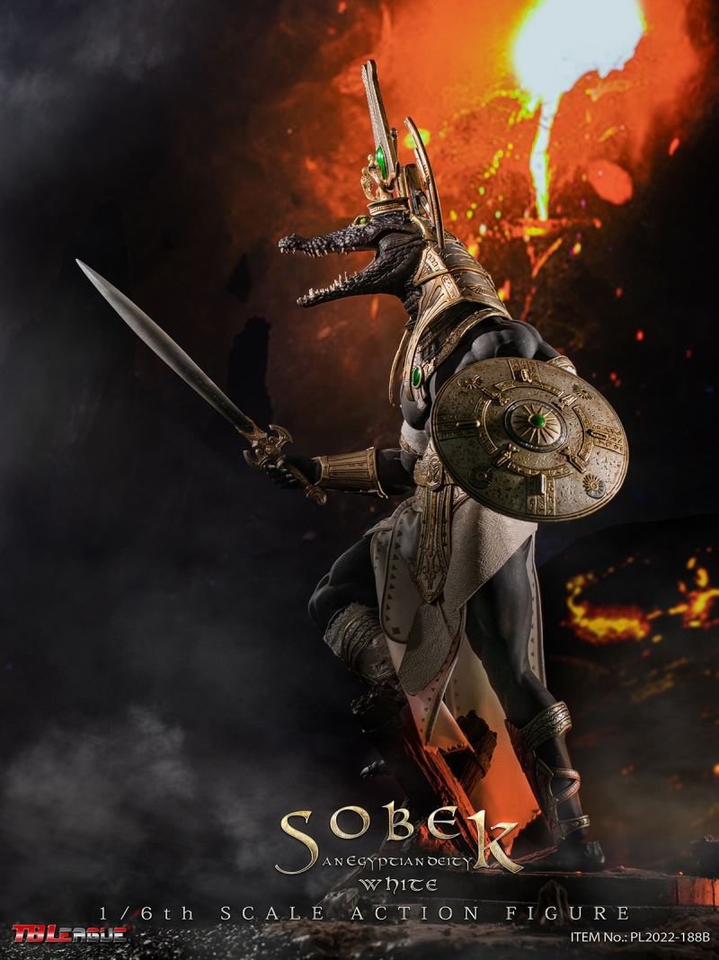 Sobek -Black 1/6 Scale Action FigureItem Name: Sobek -Black 1/6 Scale Action FigureItem No.: PL2022-188ABar Code: 6 97 127233 130 4Sobek (also called Sebek) was an ancient Egyptian deity with a complex and elastic history and nature. He is associated with the Nile crocodile or the West African crocodile and is represented either in its form or as a human with a crocodile head. Sobek was also associated with pharaonic power, fertility, and military prowess, but served additionally as a protective deity with apotropaic qualities, invoked especially for protection against the dangers presented by the Nile.Packing List:1) 1 x head sculpt with fixed headdress2) 1 x TBLeague 1/6 scale male seamless body with metal skeleton3) 1 x neck armor4) 1 pair x bands for upper arms5) 1 x strip of cloth for right upper arm6) 1 x sleeve for left lower arm7) 1 pair x armor for lower arms8) 1 x waist armor9) 1 x leather skirt-like garment10) 1 x skirt/kilt-like garment (fabric material)11) 1 pair x detachable feet12) 1 x ankh13) 1 pair x armor for lower legs14) 1 x calf leg sleeve for right lower leg15) 3 pairs x interchangeable hands16) 1 x sword17) 1 x scabbard for the sword18) 1 x sceptre19) 1 x base with holder20) 1 x underpants21) 1 x belt for hanging shield22) 1 x shield23) 1 x a trip of cloth to fasten on the waistPackaging:1 product/individual boxGW: 3.01kgMeasurements:28.7cm * 27.2 cm * 38 cm26cm * 36cm * 15.5cm2 products/master cartonGW: 7.02 kgMeasurements: 56.7cm * 30.5 cm * 40.5 cm--------------------------Sobek - White 1/6 Scale Action FigureItem Name: Sobek -White 1/6 Scale Action FigureItem No.: PL2022-188BBar Code: 6 97 127233 131 1Sobek (also called Sebek) was an ancient Egyptian deity with a complex and elastic history and nature. He is associated with the Nile crocodile or the West African crocodile and is represented either in its form or as a human with a crocodile head. Sobek was also associated with pharaonic power, fertility, and military prowess, but served additionally as a protective deity with apotropaic qualities, invoked especially for protection against the dangers presented by the Nile.Packing List:1) 1 x head sculpt with fixed headdress2) 1 x TBLeague 1/6 scale male seamless body with metal skeleton3) 1 x neck armor4) 1 pair x bands for upper arms5) 1 x strip of cloth for right upper arm6) 1 x sleeve for left lower arm7) 1 pair x armor for lower arms8) 1 x waist armor9) 1 x leather skirt-like garment10) 1 x skirt/kilt-like garment (fabric material)11) 1 pair x detachable feet12) 1 x ankh13) 1 pair x armor for lower legs14) 1 x calf leg sleeve for right lower leg15) 3 pairs x interchangeable hands16) 1 x sword17) 1 x scabbard for the sword18) 1 x sceptre19) 1 x base with holder20) 1 x underpants21) 1 x belt for hanging shield22) 1 x shield23) 1 x a trip of cloth to fasten on the waistPackaging:1 product/individual boxGW: 3.01kgMeasurements:28.7cm * 27.2 cm * 38 cm26cm * 36cm * 15.5cm2 products/master cartonGW: 7.02 kgMeasurements: 56.7cm * 30.5 cm * 40.5 cm