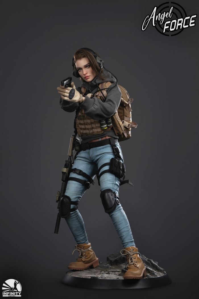 Studio: infinity StudioProduct Name: Angel Force 1/3 Silicone Action Series MIA GJKD0001Est. Completion: 2025 Q3-Q4Size:(H)70 cm x (D)30 cm x (W)30 cmLimited No Of Unit:Product IP: OriginalProduct Role: MIAProduct Features: Other OriginalProduct Scale: 1/3Height Range:70-90cmProduct Material:Special Description:Angel Force 1/3 Scale Full Silicone Action Figure- MIAAngel Force 1/3 Silicone Action Series - MIAPictureDescription:Brand IntroductionAngel Force is a new product line from Infinity Studio that establishes an uniqueuniverse where dynamic female characters take center stage. This world is adreamlike realm full of mysterious territories and thrilling adventures.Character BackgroundMIA is the first character in the Angel Force series, introduced as a mercenary.Designed with great attention to detail, MIA’s appearance reflects her strength and decisiveness. Her tailored mercenary outfit from the rugged tactical vest to lightweight combat boots showcases her professionalism. MIA’s debut as a mercenaryis only the beginning. In the future, she will embodydifferent styles, such as medieval fantasy or cyberpunk, presenting new facets of her unique charm and offering collectors a variety of exciting looks. Product Details - Head Sculpt: The 1/3 scalehead sculpt follows the same high standards as full-scale(1/ 1)statues. It offers rich structural detail and realistic paintwork to capture lifelikefeatures. The hand-planted hair, made from high-temperature synthetic fibers, ensures a lightweight, softfeel and makes it easy for collectors to style. - Body: The body features an alloy skeleton covered in platinum silicone for a soft, lifelike texture. Articulated fingers and magnetic hands allow secure placement of accessories. - Outfit Design: Themilitary-inspired outfit emphasizes MIA's strength and independence, with careful material selection and expert tailoring for authenticity. - Accessories: The figure includes a variety of high-quality ABS weapon accessories, allowing collectors tocreate multiple poses and scenarios. The durable, detailed weaponsenhance the immersive experience. - Display Base: The realistic, hand-painted display base enhances the figure's overall presentation with both stability and aesthetic appeal.Body: 1. Ultra-realistic Platinum Silicone Head Sculpt with Rooted Hair 2. Platinum Silicone Body with Alloy Skeleton Accessory: 3. Mercenary Outfit Set: Gray Hoodie (x1), Jeans (x1), Tactical Boots (x1), Tactical Vest (x1), Belt (x1) 4. Carabiner(x1) 5. Tactical Headset (x1) 6. Radio (x1) 7. Tactical Belt (x1) 8. Gun Holster (x1)9. Leg-mounted Magazine Pouch (x1)10. Watch (x1)11. Tactical Gloves (x1 pair)12. Backpack (x1)13. HK416 Rifle (x1)14. Rifle Magazines (x4)15. G17 Pistol (x1)16. Glow Sticks (x4)17. M18 Smoke Grenades (x2)18. M67 Hand Grenades (x2)17. Glow Sticks *418. M18 Smoke Grenade *219. M67 Hand Grenades *2Others:19. Display Base Stand (x1)20. Leather Jacket (PreorderExclusive)Others20. Base Stand *121. Leather Jacket *1 (Preorder Exclusive)Pre-Order Information Collection Pre-Order InformationProduct Code: GJKD0001Scale: around 1/3Material: Platinum Silicone, Prosthetic eyes, High tempsynthetic fibers, Fabric, ABS, Alloy Frame etcPower Source: /Dimensions: Approximately 70cm Heights (including base)Version: Limited Edition: TBD, Pre-Order Bonus: Exclusive Leather Jacket (ONLY ORDER PLACED WITHIN EARLY BIRD PERIOD)UPC Barcode: 6972099322100