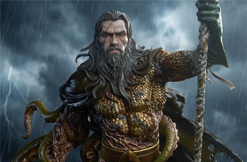 Sideshow presents the Aquaman™: Lord of the Deep Premium Format™ Figure, an ominous DC collectible.Sideshow’s Mythos collection captures the limitless, untold potential of fan-favorite characters across many multiverses. As a collection, Mythos adds unique artistic storytelling to the most popular fictional people and places, taking key themes and expanding them into anything our imagination can conceive of.This Aquaman collectible utilizes eldritch horror elements to tell a tale of an aging Arthur Curry whose body has melded with his watery home. Measuring 29” tall, 16” wide, and 15.3” deep, the Aquaman: Lord of the Deep Premium Format™ Figure rises from the trenches into a base of tumultuous, translucent waves. Barnacles and flesh, kelp and costume, all appear indiscernible at every angle as he becomes one with the creatures and environment he has sworn to protect. Whether his sacred duty has transformed him into a beast or a savior is a question best left to the sea and sand.Inspired by the character’s comic book appearance, the fully sculpted DC statue presents an eerie guardian covered in crustaceans, fish scales, and other cold-blooded components. Distressed metallic paint on his rusted armor echoes a shipwreck long forgotten in the cold, unforgiving ravines of the ocean floor. Aquaman wields a weathered gold trident while he marches forward, braced for battle and bearing all the scars of his past. A red squid joins him from fathoms deep, and as the hero’s own green tentacles join it, man becomes myth ... becomes monster.Let the tide carry the Aquaman: Lord of the Deep Premium Format™ Figure to your collection today!MaterialsPolystoneProduct SizeHeight: 29 (74 cm)Width: 16 (41 cm)Depth: 15.3 (39 cm) *