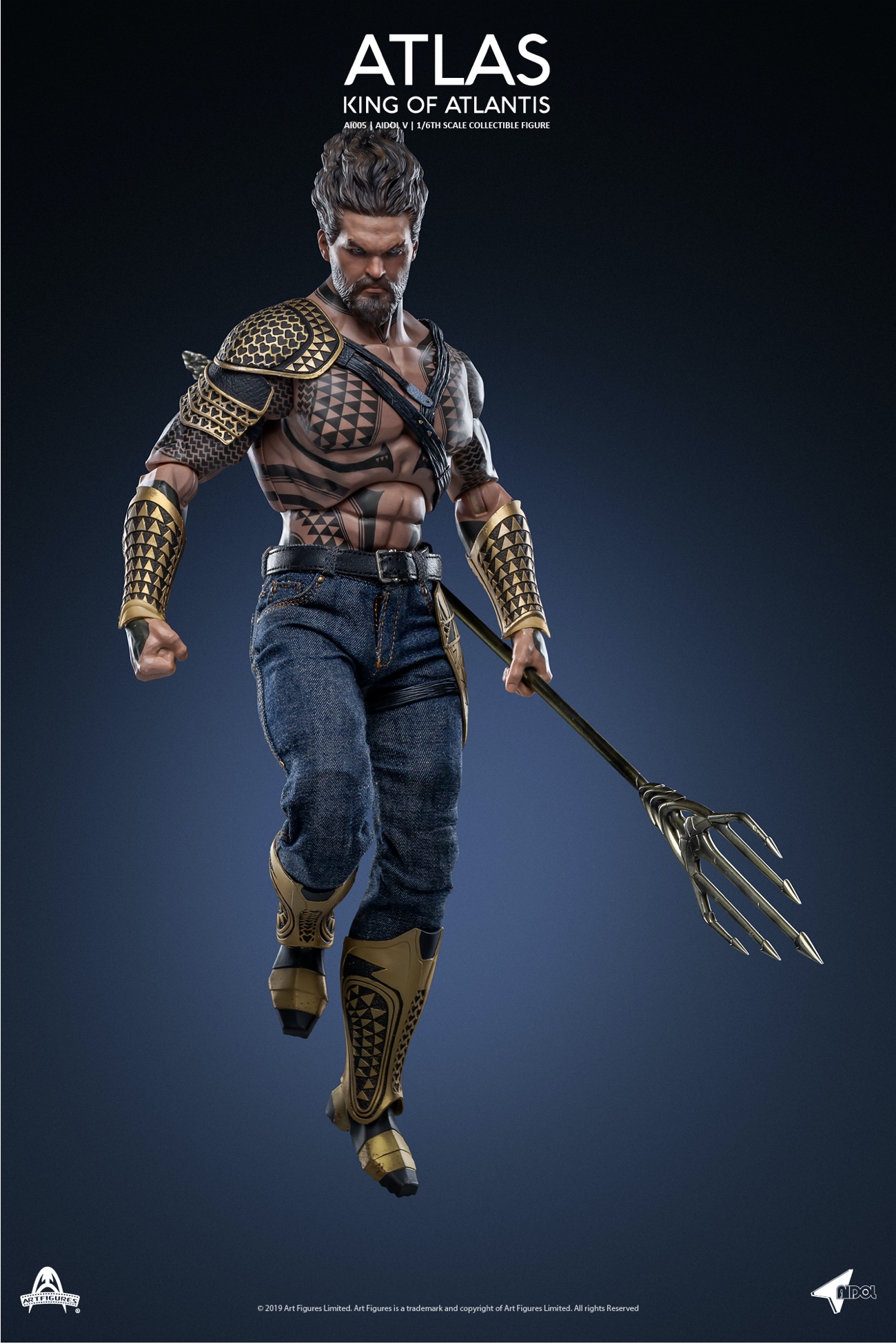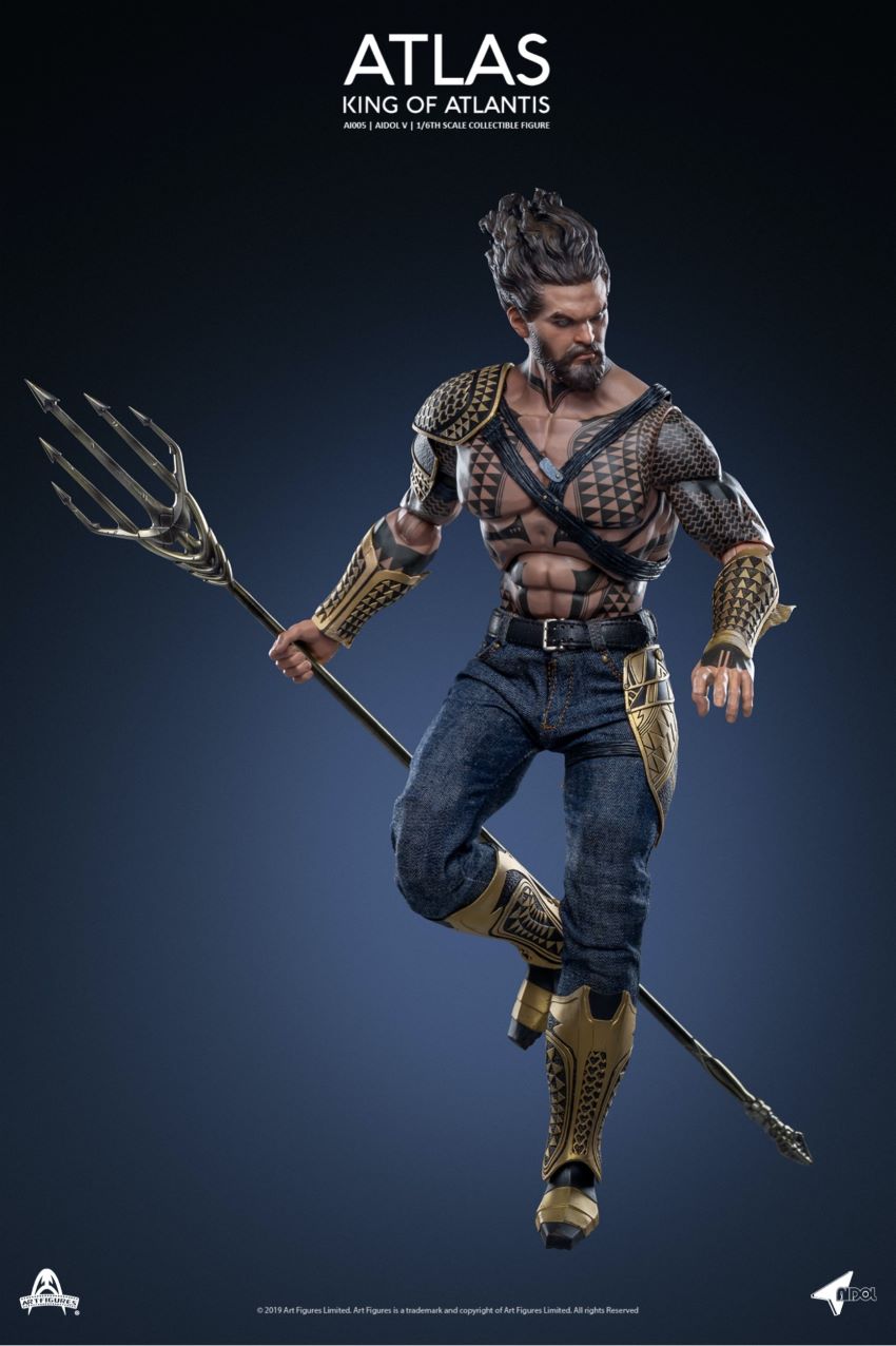 Art Figures New: 1/6 Atlas - The King of the Sea King can move the dollProduct Name: AtlasProduct code: AI-005Product ratio: 1/6 ratio1:6 Proportion Atlas Collector's Product Features:Carefully crafted a new head carving that fully demonstrates Atlas's facial contours and sea styling Newly developed head engraving with film accurate facial expressions with detailed skin texture and beardNewly designed characters with fine tattoosAbout 33cm highNew up to 30 movable joint bodies7 pairs of replaceable palms includeda pair of fistsa pair of pendulum palmsa pair of open palmsa relaxing palmClothing style:A special armor version of Atlas Armor with bronze color gold painting and feature patternsA pair of boots with bronze color gold painta pair of blue jeans with a belta pair of brown casual bootsarms:a pendulum