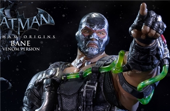 DescriptionsI can feel you breaking, Batman. Prime 1 are proud to present the Bane - Venom Version 1:3 Scale Statue from Batman: Arkham Origins. The deadly assassin is crafted in roughly 1:3 scale with exceptional attention to detail. He towers over 34 inches tall and includes an interchangeable unmasked portrait and Angry Portrait. One of eight assassins contracted to kill the Batman, only Bane is fueled by a fanatic need to conquer Gotham City to forge his own criminal empire. Specifications:High-quality translucent resin for a lifelike skin effectOne (1) Switchable Normal PortraitOne (1) Switchable Angry PortraitOne (1) Switchable Unmasked PortraitNotice:Prototype samples shown.Product details could be subjected to change without further notice.BATMAN: ARKHAM ORIGINS and all related characters and elements © & ™ DC Comics and Warner Bros. Entertainment Inc. WB SHIELD: TM & © WBEI. (s16)