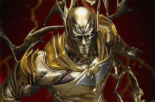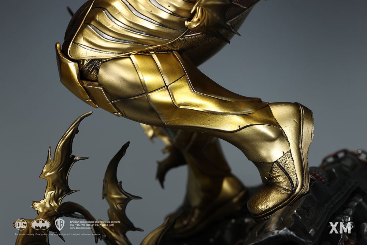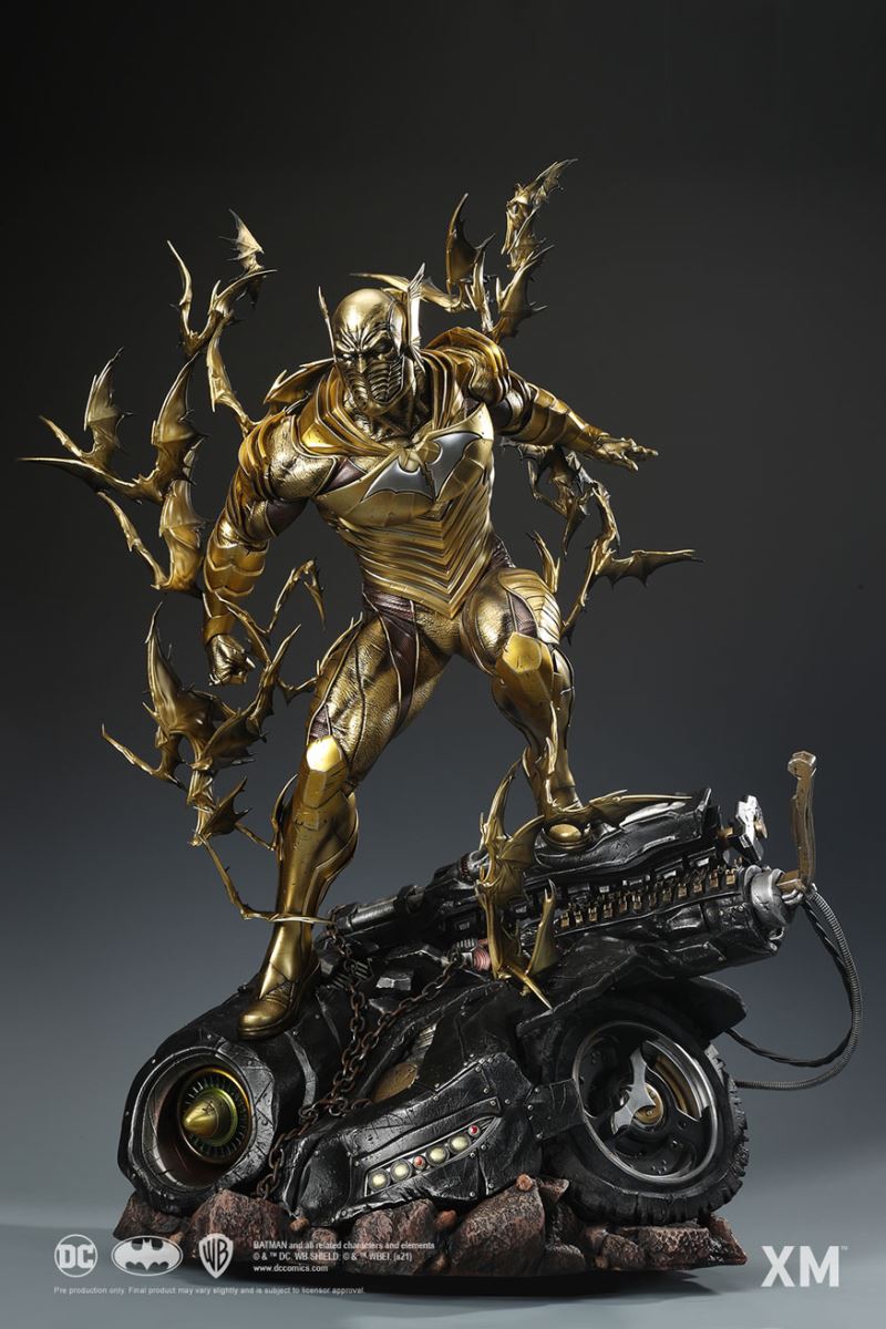 Barry Allen Ver B รูปปั้นศิลปะของสะสมทำให้เป็นอมตะการกำเนิดของ Red Death in the Dark Nights: Metal อันเป็นสัญลักษณ์แห่งฝันร้ายและเป็นสัญลักษณ์ แบทแมนจาก Earth -12 ซึ่งถูกผลักดันไปสู่ความสุดขั้วด้วยความวิกลจริตและความเศร้าโศกของเขาในขณะที่เขาล้มเหลวในการกอบกู้โลกของเขา ล่าม The Flash ไว้กับหมวกของ Batmobile ของเขา (ดัดแปลงเพื่อใช้พลังของลู่วิ่งจักรวาล) และขับเคลื่อนตัวเองและ The Flash เข้าสู่หน่วยความเร็ว ที่เปลี่ยนทั้งสองให้เป็นหนึ่งเดียว เดอะแฟลชนั่งเบาะหลังซึ่งติดอยู่ในจิตสำนึกและร่างกายของบรูซ ขณะที่บรูซใช้ความสามารถของเดอะแฟลช ด้วยเหตุนี้ Red Death จึงถือกำเนิดขึ้น Ver B Gold Version เป็นสัญลักษณ์ของการกลับมาของ Barry Allen ในขณะที่เขาควบคุมจิตสำนึกของเขากลับคืนมา