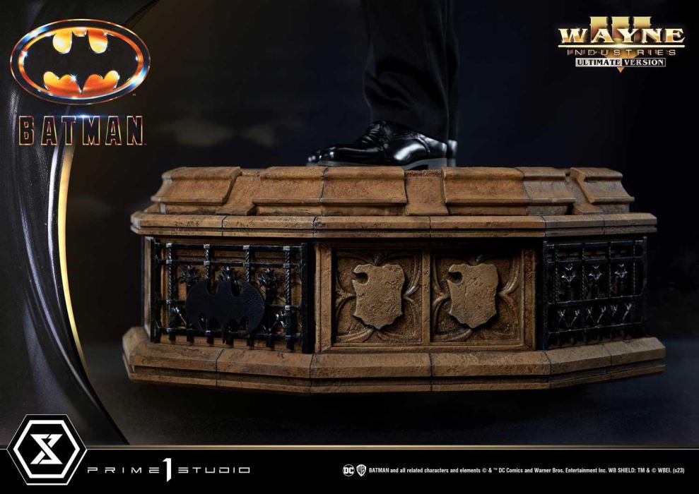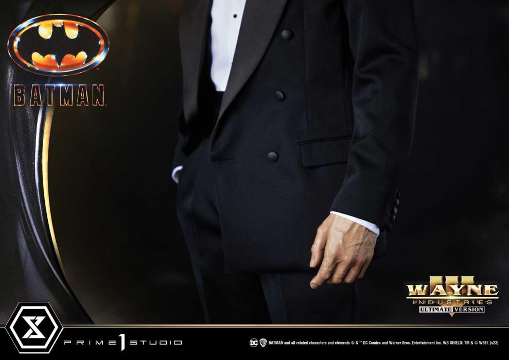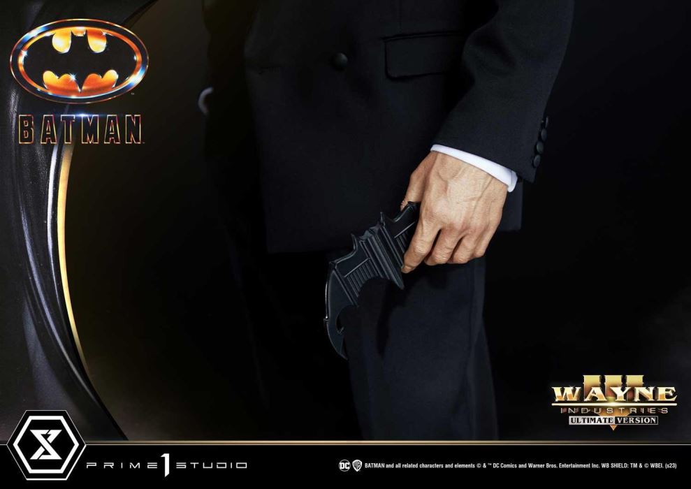 DescriptionsI'm not going to kill you. I want you to do me a favor. I want you to tell all your friends about me.Prime 1 Studio is thrilled to present yet again another astonishing collaboration with Blitzway, introducing the next entry to our Museum Masterline Series: The 1:3 Scale MMBM-06UT Batman Ultimate Version from Batman 1989!Prime 1 Studio and Blitzway have come together once again to deliver yet another statue of the highest quality and stunning accuracy of Michael Keaton’s Batman from 1989’s Batman!Michael Keaton’s portrayal of Batman in the 1989 film directed by Tim Burton was a defining moment in the Dark Knight’s cinematic history. Keaton brought brooding intensity to the role, creating a dark and gritty atmosphere that made him a fan favorite and set the standard for future Batman films. This statue is a perfect way to commemorate his performance.Prime 1 Studio and Blitzway brings you another screen-accurate depiction of Batman in a simple, yet powerful stance. Standing at an impressive height of 31 inches tall, it is sure to make a statement in any collection.Blitzway did an astonishing job at not only recreating a Keaton’s facial features, but also replicating the Batsuit. The costume’s design was brough to us by Bob Ringwood, who was incorporated many elements from the comics, such as the cowl with pointed ears, the golden utility belt and the scalloped fabric leather-like cape that all add to the ominous presence of the character. The suit now takes a midnight black shade and heavily armored, giving it a much more menacing look and an air of invincibility.Batman stands on a Batcave-themed base, a perfect representation of podium that the Dark Knight would have at the center of his underground base of operations. His grappling gun lays at his feet. This base also features a total of four spotlight LED illuminations.The Ultimate Version takes your pre-order to the next level: a SECOND 1:3 Scale statue of Bruce Wayne is included. Just shy of 30 inches tall, Bruce Wayne, the wealthiest playboy philanthropist in Gotham, wears his unique and iconic expression, which seems to blend a touch of sophistication and urgency. He dons a classic tuxedo that stays true to the iconic look of the time. His sense of composure can be felt in his restrained posture, nonchalantly shifting his weight to one side. Bruce Wayne stands on a Wayne Manor-themed stone base where a detachable Batarang can be placed in his left hand. Having his Ultimate Version in your collection will definitely make anybody’s jaw drop, whether they are hardcore collectors, Batman fans or simply a casual follower of the DC Comics universe.These statues are a must-have for any fans of the Tim Burton’s Batman film and Michael Keaton’s iconic performance of the billionaire vigilante. Pre-order now while you can!Specifications:Highly detailed likeness sculpture of Michael KeatonPerfectly designed Batman’s original costume with a fabric capePerfectly designed Bruce Wayne in a fabric 80’s trendy tuxedoBatman, Batcave-themed baseBruce Wayne, Wayne Manor-themed baseLED-Illuminated Base for BatmanThree (3) swappable right-hand for Batman (Open, Fist, Grapple Gun)Two (2) swappable left-hand for Batman (Open, Fist)One (1) detachable Batarang from the Wayne Manor themed-baseNotice:Prototype samples shown.Product details could be subject to change without further notice.Please note the final product specifications may differ because each product is Handmade.Since the product is still in the development stage, the Size (up to 10%) & Weight (up to 10kg) may be changed during the production stage.BATMAN and all related characters and elements © & ™ DC Comics and Warner Bros. Entertainment Inc. WB SHIELD: TM & © WBEI. (s23)