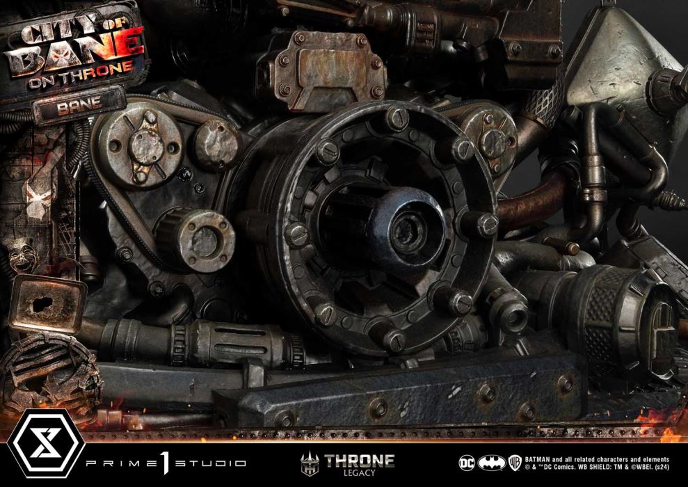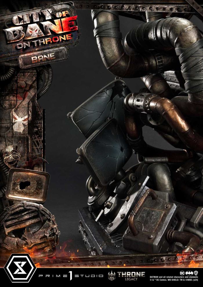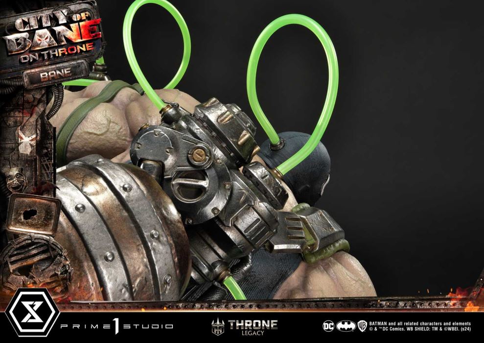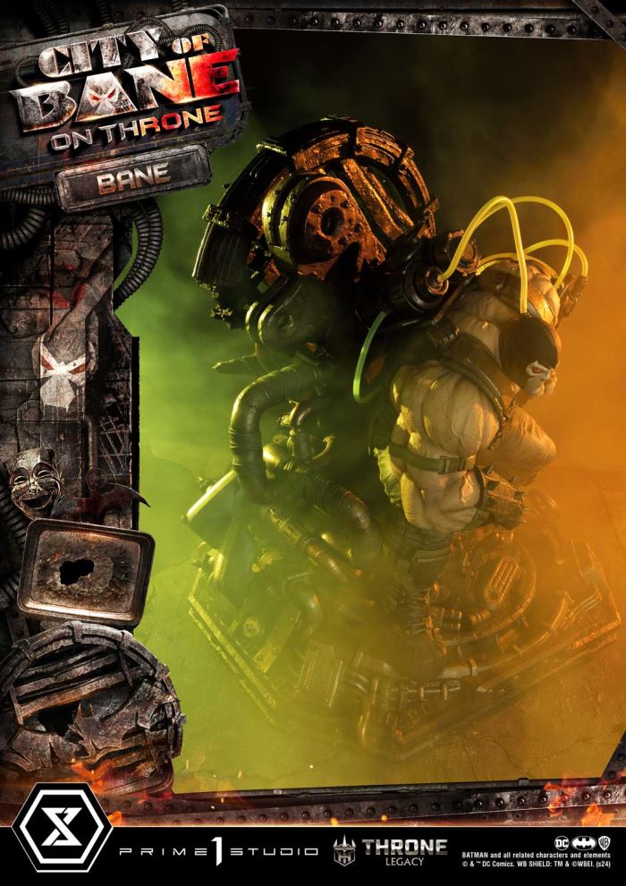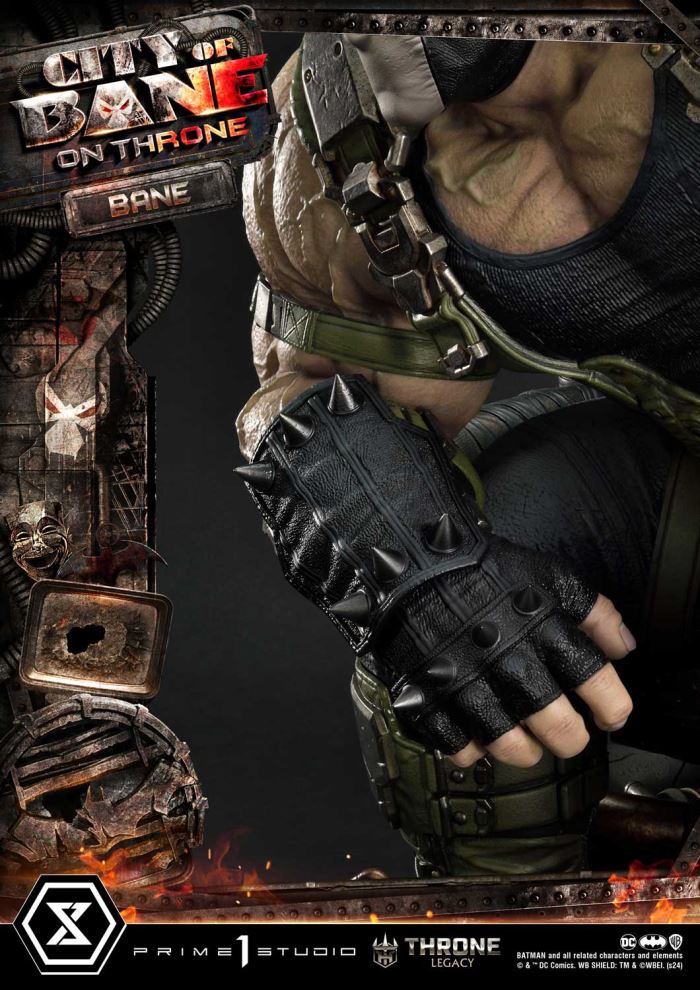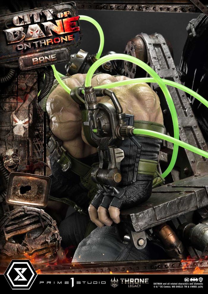 “This is the City of Bane”Prime 1 Studio is proud to present the next entry to the highly coveted Throne Legacy Collection, in collaboration with DC artist Carlos D’Anda, here is the 1:4 scale TLCDC-05 Bane on Throne from Batman series!Step into the dark and gritty world of Gotham City with the formidable villain, Bane from the Batman comics. Born from the shadows of the City of Bane storyline and the alternate reality of Flashpoint, Bane stands as a symbol of brute strength and strategic genius. This meticulously crafted piece, built by the best craftsmen, captures Bane’s imposing presence with unparalleled detail and precision.With the help of the esteemed artist Carlos D’Anda, we have depicted the sinister ruler of the City of Bane seated upon his commanding throne of dark and rusty metalware, reaching 24 inches. Our artisans have once again outdone themselves, capturing the essence of Bane’s commanding presence as he gazes down upon his subjects with an aura of menace and authority. With his elbow confidently resting on his knee and his left hand firmly gripping the arm of his throne, Bane exudes an air of dominance and power that strikes fear into the very hearts of all who dare to defy him. Every aspect of this statue, from the intricate designs of the metalware throne to the green Venom that flows through the tubes on his back, serves as a chilling reminder of his unwavering grip on the Gotham City.Elevate your collection with this captivating centerpiece and let the City of Bane reign supreme in your display. Pre-order the TLCDC-05 Bane of Throne now while quantities last!Specifications:Statue Size approximately 24 inches tall [H:61cm W:57cm D:47cm]City of Bane throne baseNotice:Prototype samples shown.Product details could be subject to change without further notice.Please note the final product specifications may differ because each product is Handmade.Since the product is still in the development stage, the Size (up to 10%) & Weight (up to 10kg) may be changed during the production stage.BATMAN and all related characters and elements © & ™ DC Comics. WB SHIELD: TM & © WBEI. (s24) DETAILSBrandsPRIME 1 STATUECollectionThrone LegacySeriesDC SeriesScale1/4 ScaleProduct CodeTLCDC-05Product Size Approx.H:61cm W:57cm D:47cmCarton(Est):2 boxProduct Weight Approx.37.5 kgMaterialsPolystone and other materialsJAN4580708049281