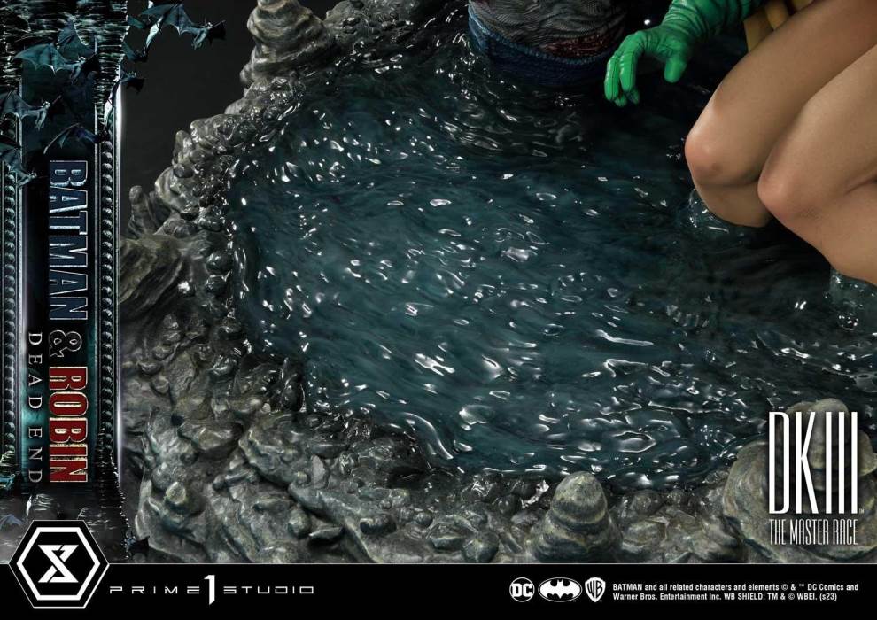 Descriptions“All the people I’ve murdered...by letting you live.”Prime 1 Studio is proud to present a statue born out of the best and rarest comic book cover from the Dark Knight III Master Race, joining our Ultimate Premium Masterline Series: Batman & Robin Dead End.The original cover was drawn by none other than Master Illustrator and DC Creative Chief Officer Jim Lee himself. Prime 1 Studio has taken upon another great challenge to recreate Jim’s thrilling cover. Surely, the sculptors and painters have outdone themselves once again to fully capture the grim mood of Frank Miller’s Dark Knight Universe!Just under 17 inches tall, this diorama packs so many details as it recreates such an impactful scene of the series The Batman, suffering from a stab wound, the Joker finds himself cornered deep within the Tunnel of Love, Gotham authorities at his tail. Alongside the Dark Knight is his trusted sidekick Carrie Kelley in her Robin suit, trying to escape from the GCPD’s arrest, as the Joker’s murder would be pinned onto Batman. Once you lean in closer, you notice the level of expertise that the artists have mastered to realistically render every different texture on this piece: his reinforced fabric of the Batsuit, the rugged leather of the cowl, the torn and battle-damaged cape, Robin’s ethereal hair, the trouble surface of the water, and let us not forget those stalagmites.Describing this Ultimate Premium Masterline piece as breathtaking is a huge understatement!Pre-order now to immortalize this fitting tribute to the survivability of Batman!Specifications:Tunnel of Love’s dead-end designed theme baseNotice:Prototype samples shown.Product details could be subject to change without further notice.Please note the final product specifications may differ because each product is Handmade.Since the product is still in the development stage, the Size (up to 10%) & Weight (up to 10kg) may be changed during the production stage.BATMAN and all related characters and elements © & ™ DC Comics and Warner Bros. Entertainment Inc. WB SHIELD: TM & © WBEI. (s23)