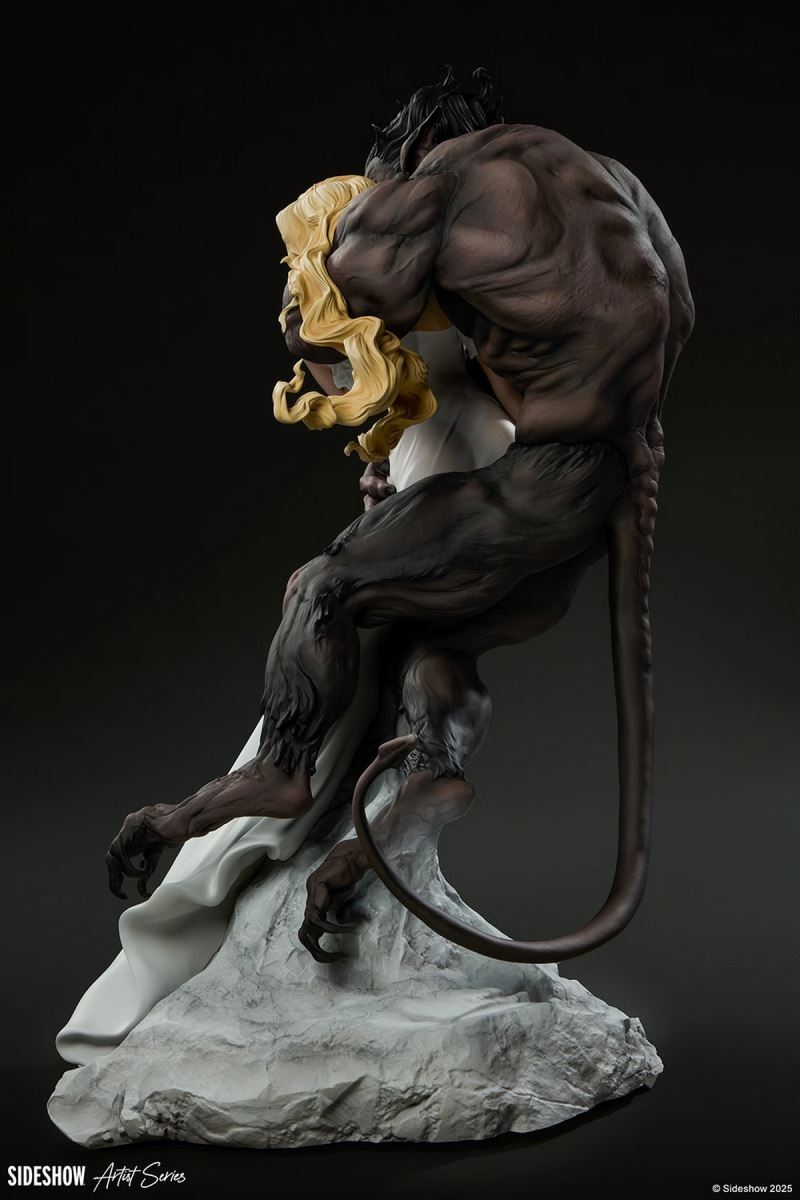 Sideshow presents the Beauty and the Beast Statue, an original dark fantasy design by artist Maria Panfilova.A timeless tale retold through an artist’s imagination, Maria Panfilova’s fully sculpted vision of Beauty and the Beast emphasizes the contrast between innocence and animal instinct. Despite the frightening nature of his monstrous form, there is a surprising tenderness as the Beast wraps himself protectively around the woman. And Beauty does not resist — in fact, she leans into the embrace as her fingertips lovingly brush his feral, furred physique. The dreamy quality of her expression indicates a moment of entwined intimacy, as the pair are whisked away almost weightlessly from the stony, marble-like base. A single red rose beneath their feet alludes to the original French fairytale, a precious gift stolen at great cost.The polystone Beauty and the Beast Statue measures 18.25” tall (46.3 cm) x 12.3” wide (31.4 cm) x 10.75” deep (27.3 cm). The Beast’s design is a unique blend of grisly features, including a ridged tail, clawed feet, pointed ears, and piercing yellow eyes. The deep, earthy tones of his complexion further highlight the delicateness of pale Beauty, as her blonde hair and gossamer gown flutter behind her. From the paint detailing to the dynamic flow of the dual character sculpture, this imaginative Sideshow Original collectible statue makes a breathtaking addition to any home.Get swept up in a forbidden romance with the Beauty and the Beast Statue from the Maria Panfilova Artist Series by Sideshow.Purchase LimitsLimit of 2 per person.MaterialsPolystoneWarning: Cancer and reproductive harm. For exposures to both listed carcinogens and reproductive toxicants.Product SizeHeight: 18.25 (46 cm)Width: 12.3 (31 cm)Depth: 10.75 (27 cm) ** Size and weight are approx. valuesSKU200665UPC747720276581