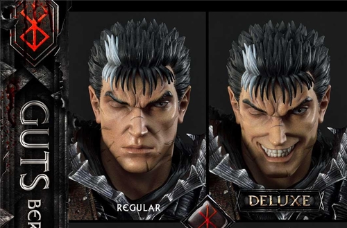 นอกเหนือจากภาพบุคคลมาตรฐานของ Guts แล้ว Deluxe Version Guts ยังมาพร้อมกับหัวที่ถอดเปลี่ยนได้อีกสามหัวเพื่อให้เขามีความยืดหยุ่นในการแสดงออก: ตั้งแต่ความมั่นใจในการเยาะเย้ยไปจนถึงการมุ่งร้ายทันที! และโดยเฉพาะอย่างยิ่งเราได้รวมภาพเหมือน Guts ที่หายากไม่เหมือนใครซึ่งวาดโดย Miura-Sensei มอบให้เราและปั้นโดยศิลปิน Prime 1 Studio ด้วยความเคารพและเอาใจใส่อย่างสูงสุด ส่วนหัวที่ถอดเปลี่ยนได้เฉพาะของ Miura-Sensei พิเศษนี้สามารถเป็นของคุณได้ด้วยการซื้อรุ่น Deluxe!