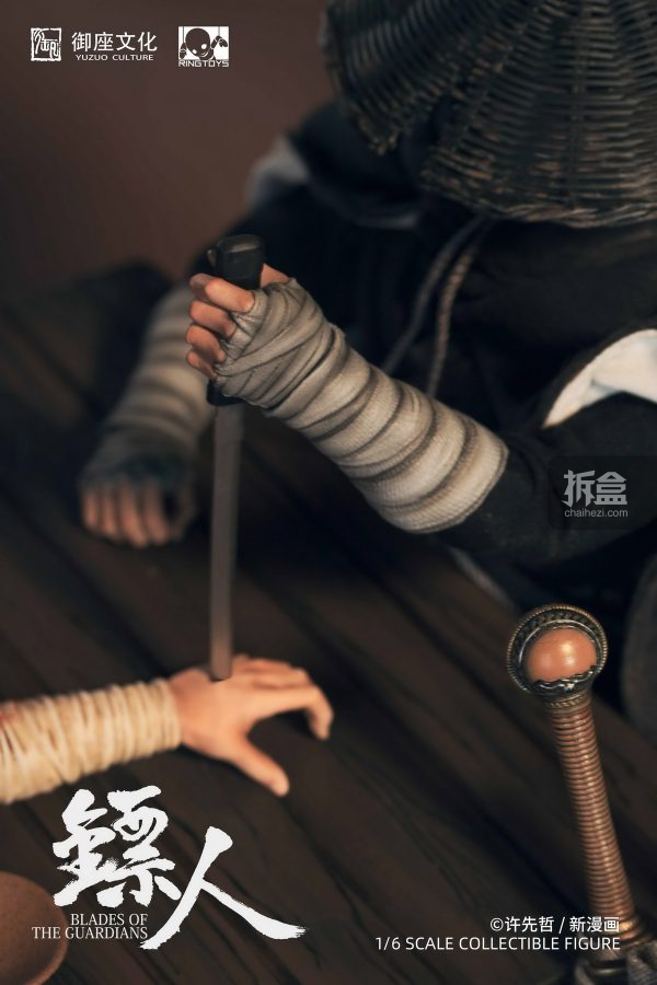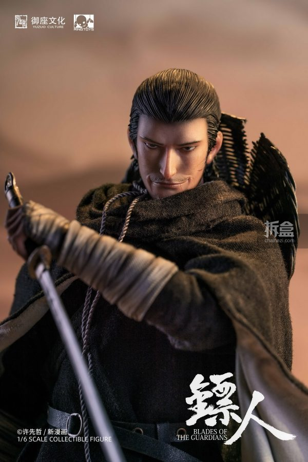 RINGTOYSBiaoRen DaoMa the 1/6 scale action figure copyright authorizedProduct code: RT-005DXProduct configuration:Height: about 34cmThe body of DaoMa apply Ringtoys’ independent R&D slender figureExquisite Head sculpt*1(natural expression)Exquisite Head sculpt*1(manic expression)Changeable hand*6Figure stand*1Bandage and glove’s canisterArrest warrantBlack bamboo hat*1Weapon bag*1OutfitsCross collar black underwear*1Black trousers*1Cross collar black coat*1(it has built-in copper wire for style adjusting)Hand-aged black cloak*1(it has built-in copper wire for style adjusting)Diexiedai*1Hand-aged cloth boots*1WeaponMetal bladeTouzhui Broadsword*1Bingzijiaolin*1Broadsword*1Tangheng knife*1Short knife A*1Short knife B*1Axe*1