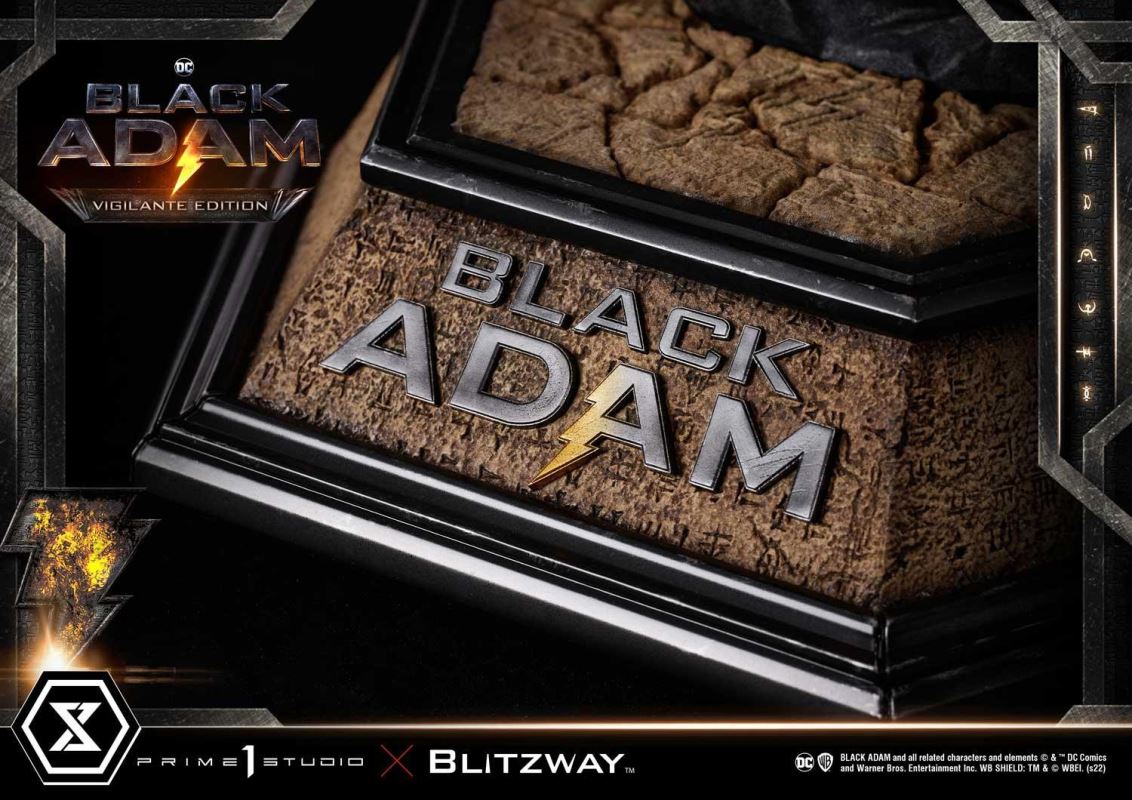 DescriptionsI was a slave until I died. Then I was reborn a god. My son sacrificed his life to save me. Now...I kneel before no one.” – Teth-AdamPrime 1 Studio is proud to present an amazing, eagerly anticipated statue in the Museum Masterline DC Theatrical Series: the limited 1:3 Scale Black Adam Vigilante Edition from 2022’s Black Adam!After 5,000 years, Teth-Adam has been awakened to a very different world. While many things might be unfamiliar to him, he will always know the stench of evil and injustice! Empowered by ancient Egyptian gods, Black Adam is unstoppable.While not an outright villain, Black Adam is an antihero out to punish those who have evil in their heart. The Black Adam Vigilante Edition portrays Black Adam in the wrathful visage of his enormous bulk, deadly serious stare, and jet-black armor...signifying that he is determined to mete out deadly punishment to those who deserve it.At a breathtaking 37.8 inches tall and enrobed in his removable fabric cape, Black Adam floats above his Khandaq-themed base, with the Black Adam film logo emblazoned front and center. Black Adam comes with two (2) swappable heads portraying a serious tone, and a deafening scream. His eyes and chest symbol light up with the power of LED illumination to showcase the power of Shazam!This film and statue have both been long in the making...but now, they are both ready for you! Pre-Order the MMBA-02 Black Adam Vigilante Edition limited to 300 pieces today and hold the power of Shazam! in your hands before they run out!!!Specifications:Khandaq-themed baseLED Illumination in the ChestOne (1) Swappable HeadOne (1) Removable and Poseable Fabric CloakOne (1) Swappable Head with LED Illuminated EyesLimited Quantity MadeNotice:Prototype samples shown.Product details could be subjected to change without further notice.Please note the final product specifications may differ because each product is Handmade.Since the product is still in the development stage, the Size (up to 10%) & Weight (up to 10kg) may be changed during the production stage.BLACK ADAM and all related characters and elements © & ™ DC Comics and Warner Bros. Entertainment Inc. WB SHIELD: TM & © WBEI. (s22)