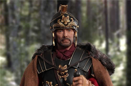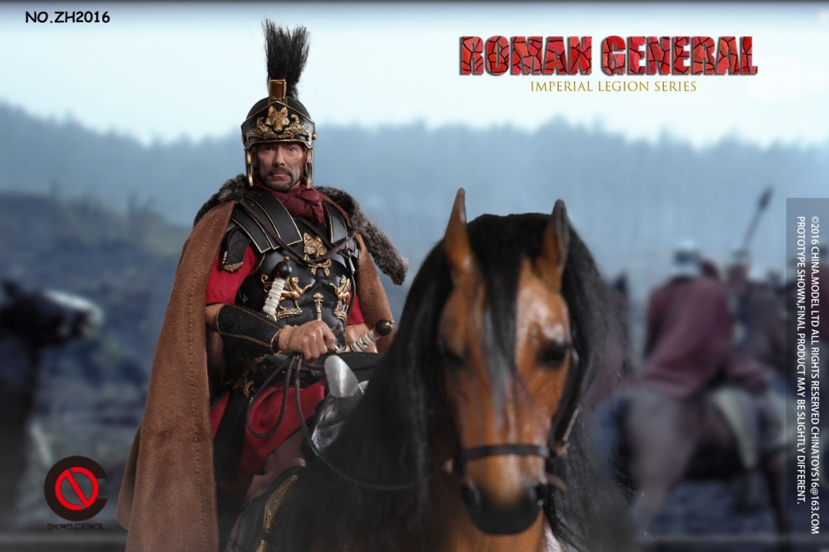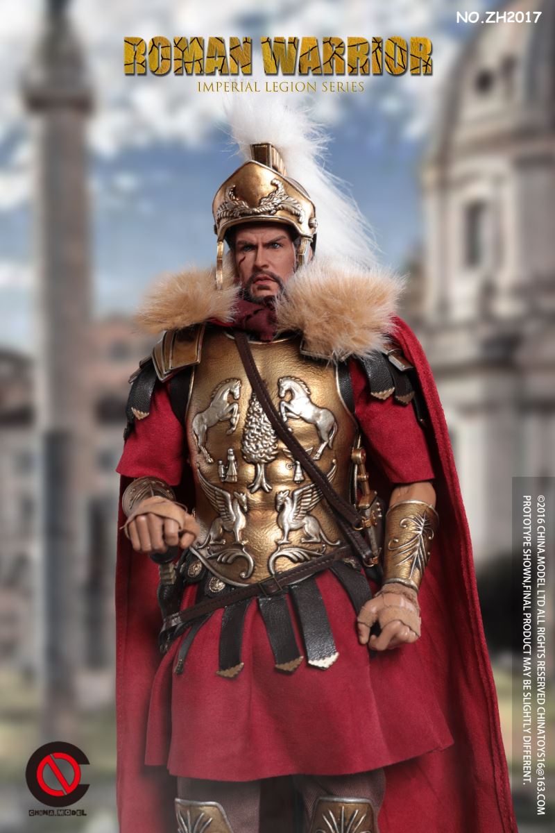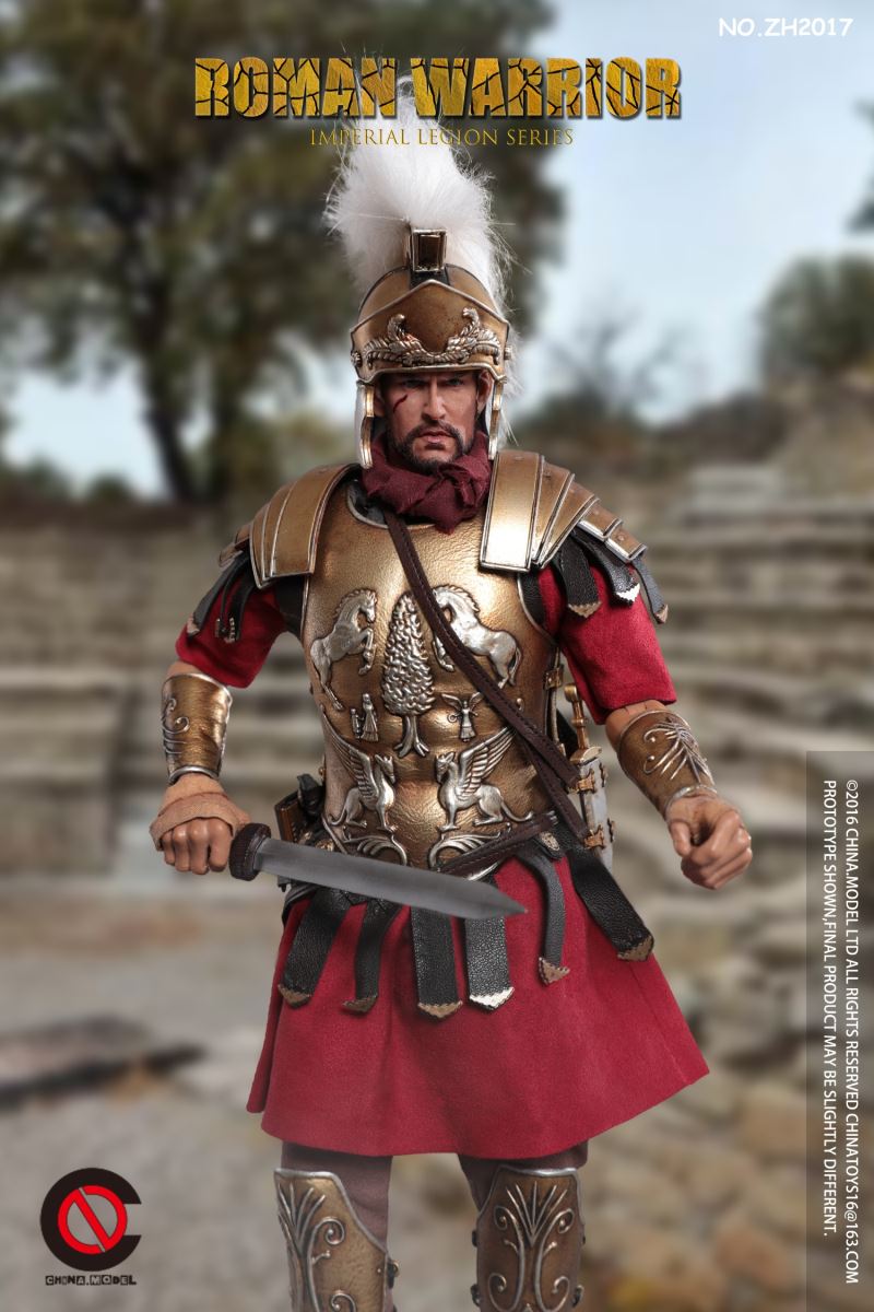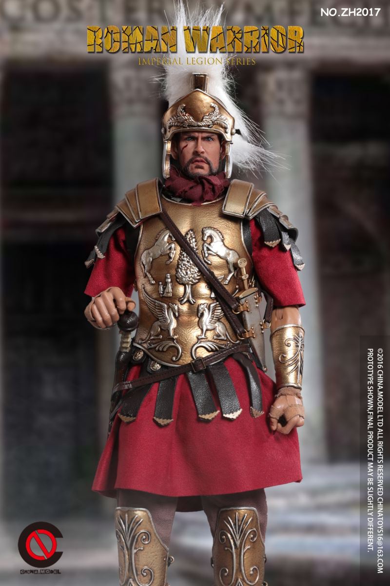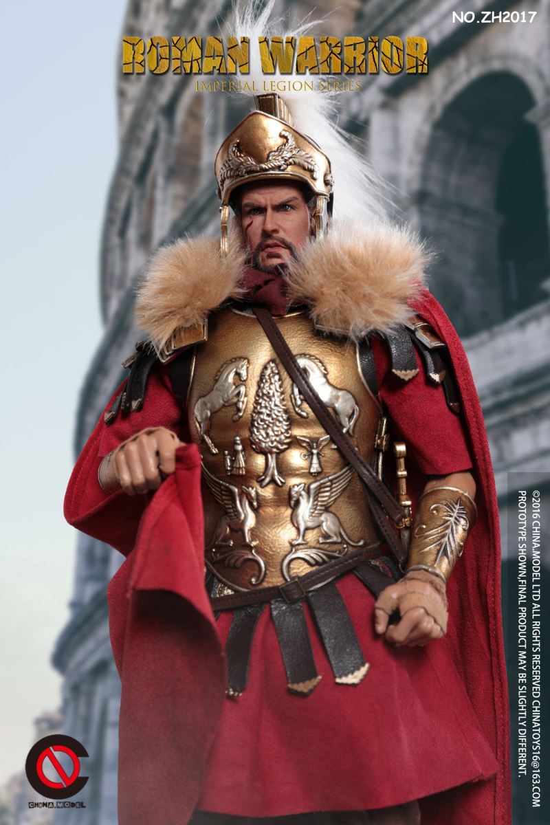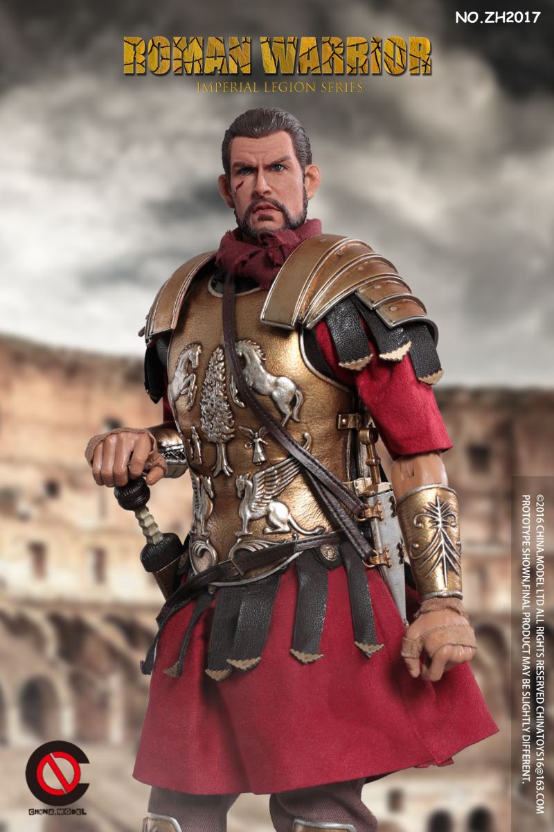 CHINA. Model No: zh016 1:6 black gold Roman general movable dollMaterial: metal, cloth, plasticAccessories list:1 head carving1 elementHand type 2 pairs1 piece of clothes1 pair of trousers1 pair of shoes1 CloakLeather Armor 1 piece1 BreastplateShoulder armor 1 pieceOne leg armor1 wrist guard1 scarfHelmet 1 setLong sword 1 set1 set of dagger