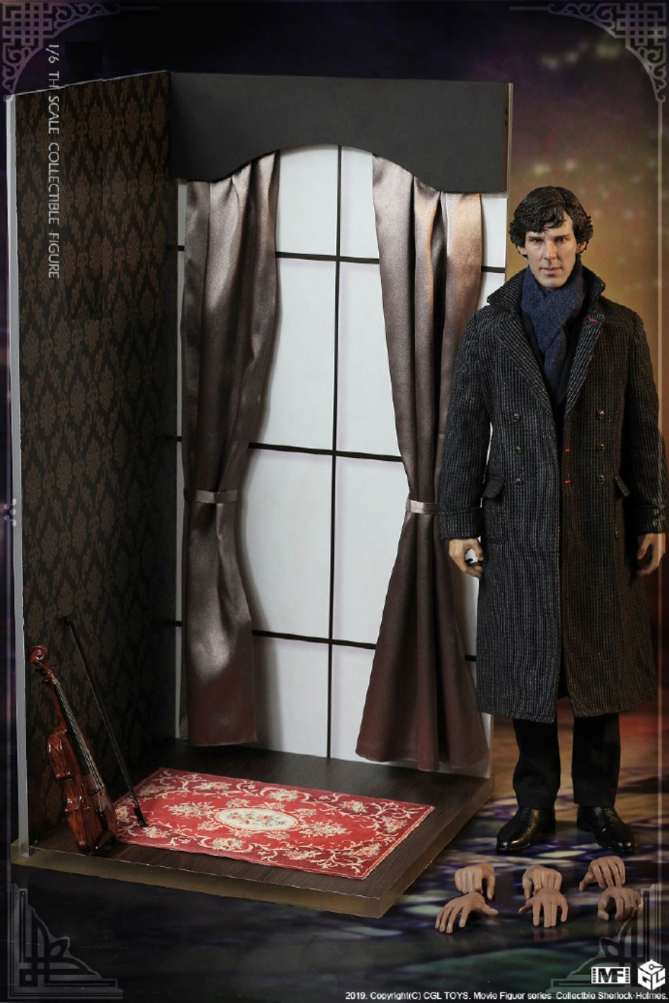 CGLTOYS MF16 1/6 Sherlock HolmesProduct configuration list:-Head of the Blessing × 1-1/6 standard body × 1-Hand × 8-Purple shirt × 1-Blue scarf × 1-Black suit top × 1-Black suit pants × 1-A pair of black socks × 1-A pair of black leather shoes × 1-Coat × 1-1/6 violin × 1-1/6 violin strings × 1-Scene floor × 1 (35.5 × 18 × 18cm)-Patterned rug × 1
