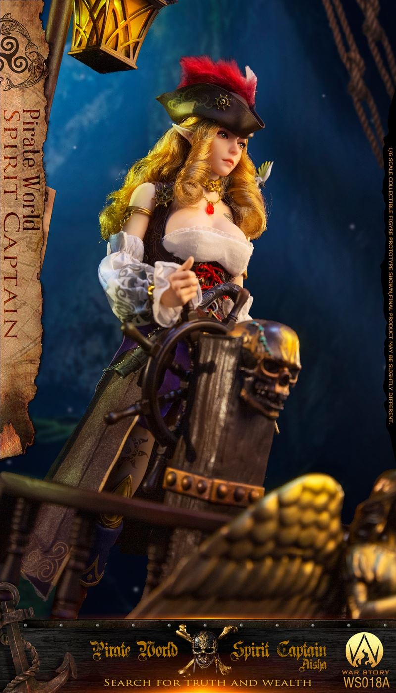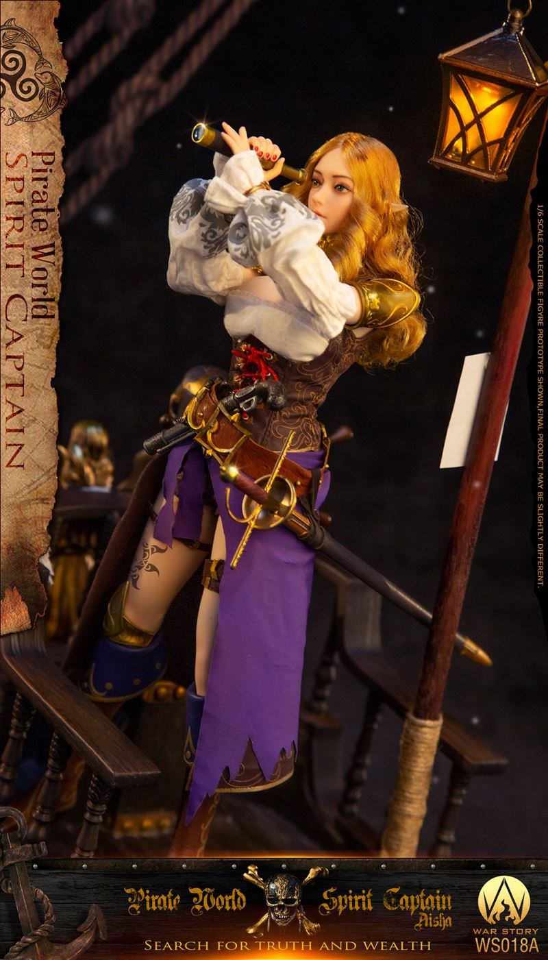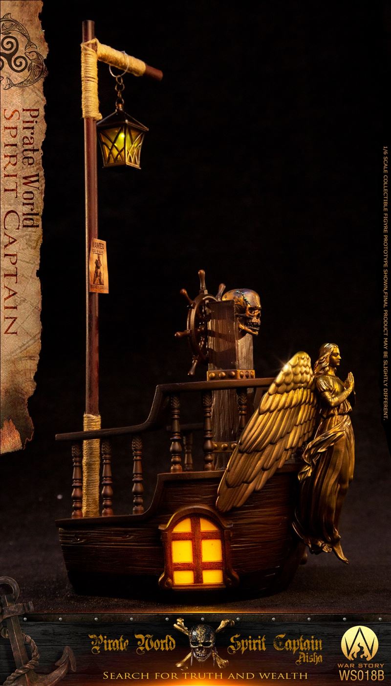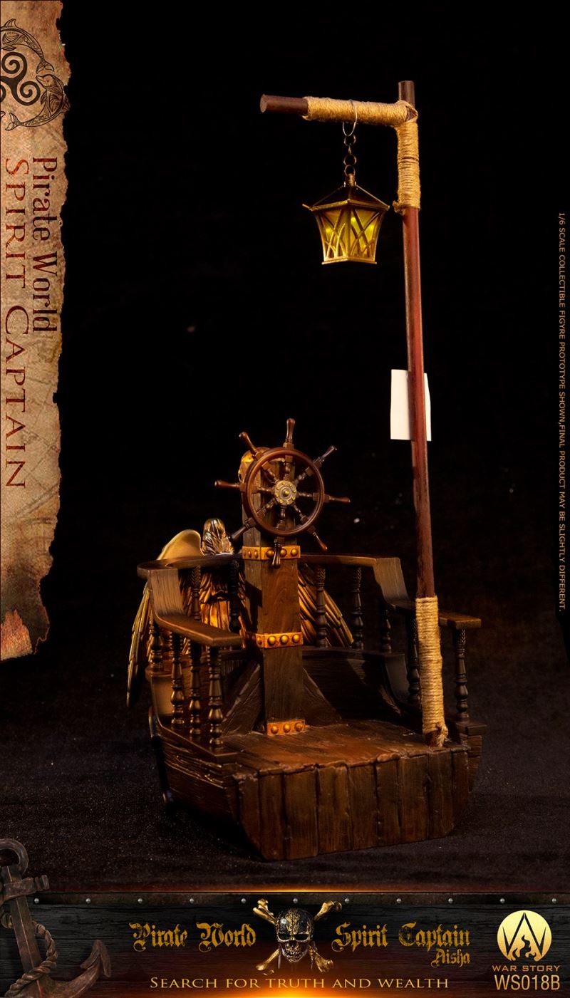 War Story 1/6 Captain Elsa Action FigureWS018A:1 Body (with joints covered by rubber) * 12 Hair planted head * 13 Captain cap * 14 Coat * 15 Underwear * 1 set6 Belt * 17 Waist cloth * 18 Shorts * 19 Sleeves * 210 Boots * 1 pair11 Collar * 112 Crystal necklace * 113 Arm armor A * 114 Arm armor B * 115 Bracelet * 216 Knee armor * 117 Belt A * 118 Belt B * 119 Gun * 120 Long sword * 121 Scabbard + belt * 122 Compass * 123 Compass pack * 124 Telescope * 125 Parrots * 126 Metal treasure box * 127 Gold coins * 50 pieces28 Hands * 3 pairsWar Story 1/6 Pirate ship Plug-in lighting base # WS018BShip body (environmental friendly resin)Electroluminescent oil lamp12V USB power cableProduct size: H 27cm * W18cmPre-order till: 18TH Mar, 2023Shipment plan: Q2 of 2023