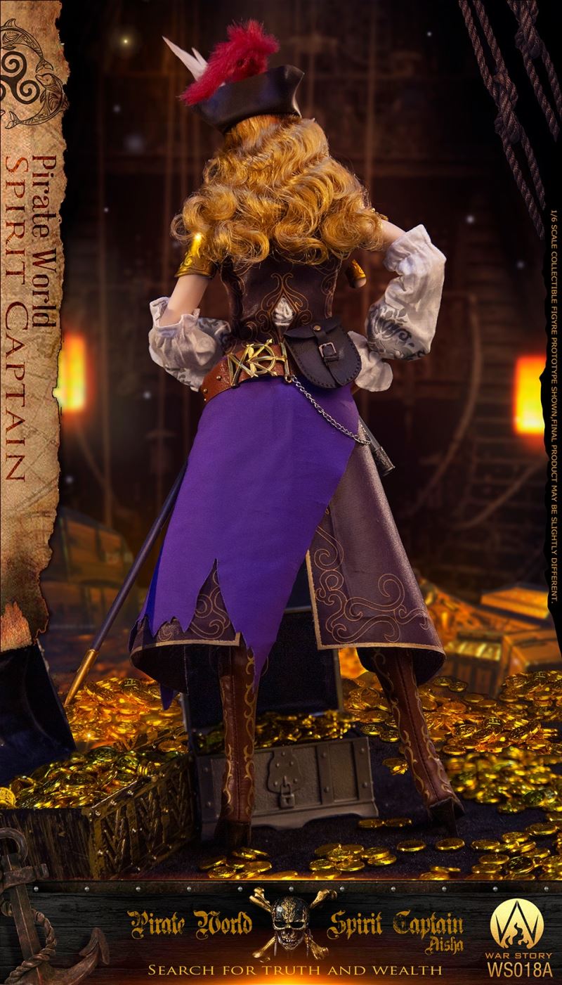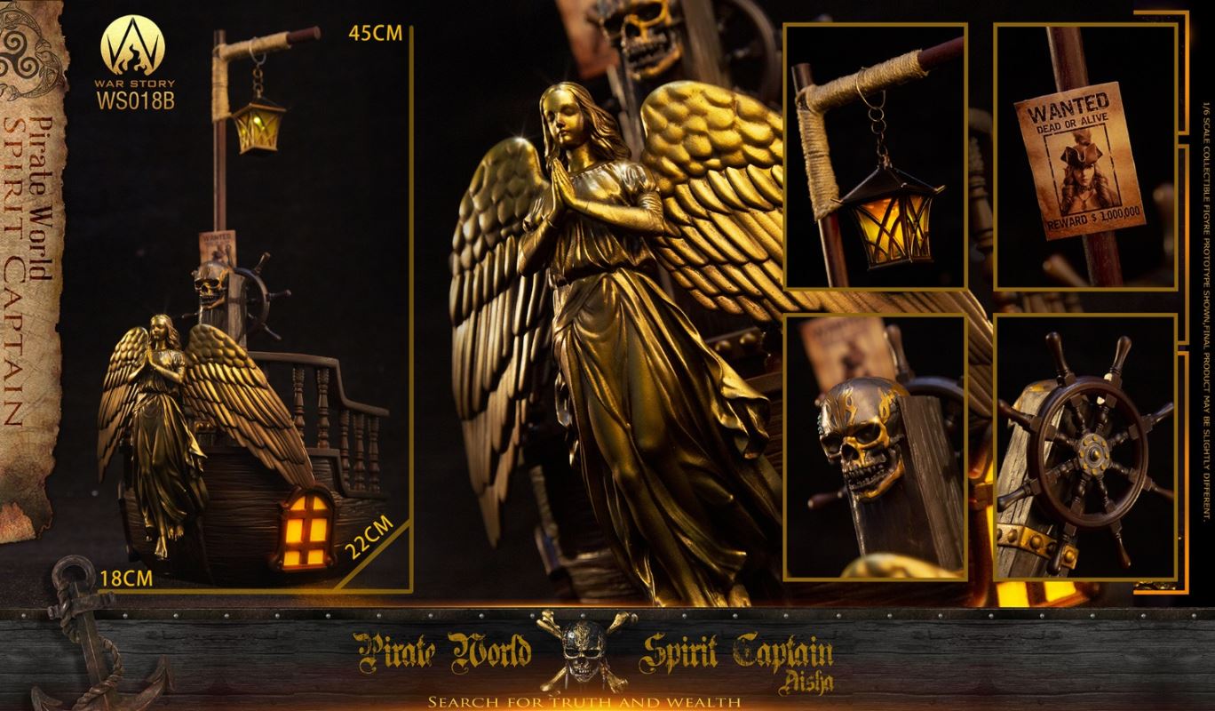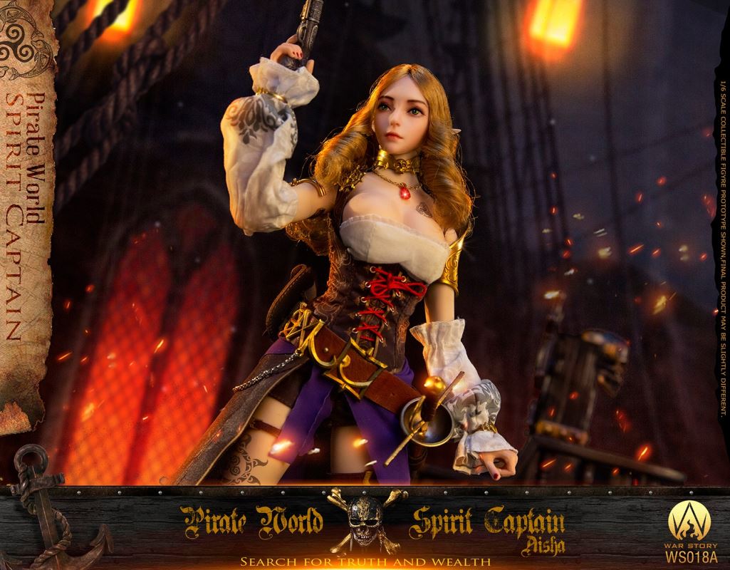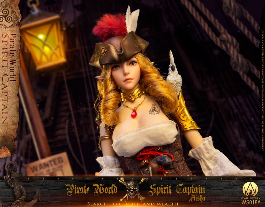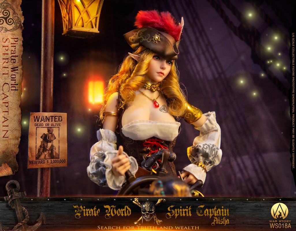 War Story 1/6 Captain Elsa Action FigureWS018A:1 Body (with joints covered by rubber) * 12 Hair planted head * 13 Captain cap * 14 Coat * 15 Underwear * 1 set6 Belt * 17 Waist cloth * 18 Shorts * 19 Sleeves * 210 Boots * 1 pair11 Collar * 112 Crystal necklace * 113 Arm armor A * 114 Arm armor B * 115 Bracelet * 216 Knee armor * 117 Belt A * 118 Belt B * 119 Gun * 120 Long sword * 121 Scabbard + belt * 122 Compass * 123 Compass pack * 124 Telescope * 125 Parrots * 126 Metal treasure box * 127 Gold coins * 50 pieces28 Hands * 3 pairsWar Story 1/6 Pirate ship Plug-in lighting base # WS018BShip body (environmental friendly resin)Electroluminescent oil lamp12V USB power cableProduct size: H 27cm * W18cmPre-order till: 18TH Mar, 2023Shipment plan: Q2 of 2023