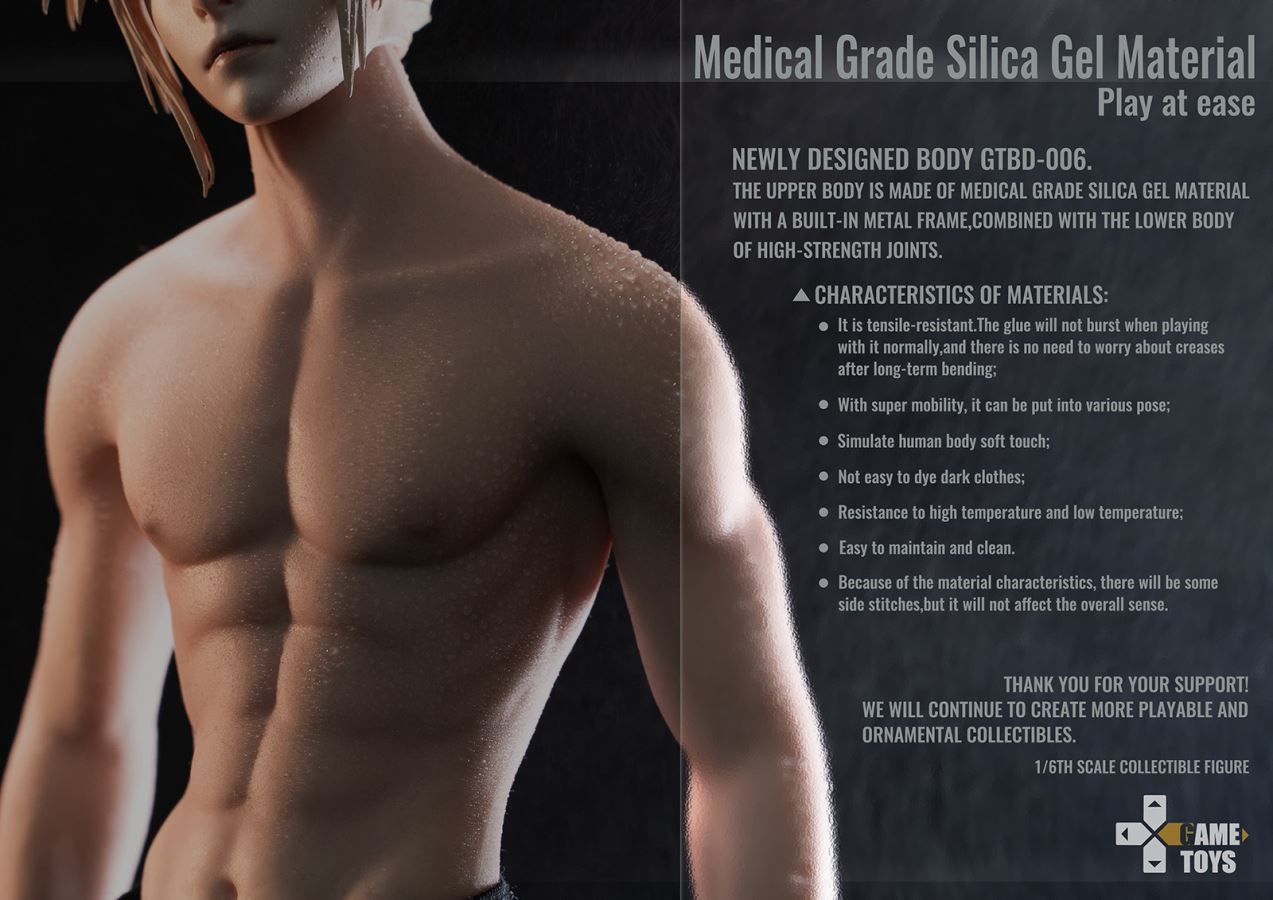 Warm reminder(this body model GTBD-006 belongs to the newly developed new body, the upper body is covered with rubber, the lower body is jointed, the height is thesame as the previous RE version of Claude, and there is a height difference with Sephiroth and Zacks)Shipment time: The first quarter of 2023 (specifically based on the actual delivery time)
