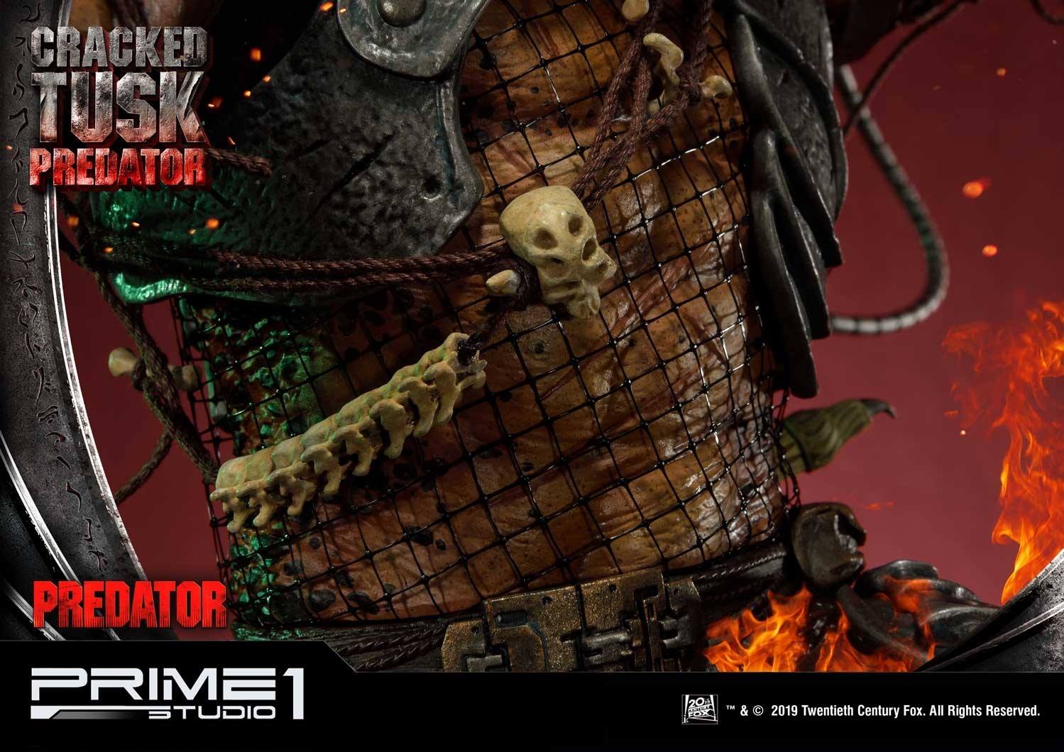 DescriptionsAn extraterrestrial species characterized by their hunting of Xenomorphs/Aliens for faith and honor using a combination of highly advanced technology are the Yautja, also widely known as Predators. This time Prime 1 Studio is proud to introduce the tribe leader, PMDHPR-01: Cracked Tusk Predator statue from the Dark Horse Comics. This Premium Masterline statue is well-sculpted and based on the details of the dreadful hunter. His remarkably detailed dreadlocks are flying in the air. Moreover, there is a variety of real fabric material used as this statue's accessories such as a leather belt, leather armbands and so on. Not to mention, Yautja technological weapon, Plasmacaster is also known as the Plasma Cannon features LED light-up function on his left shoulder, another LED light-up feature on his Bio-Mask portrait. Additionally, his right forearm equipped with Wristblades/Gauntlet Knives, and holding in his left hand is the iconic Combistick also recognized as Telescoping Spear. The Cracked Tusk Predator is standing on a Spaceship-like measure approximately 39 inches tall preparing to throw the Combistick. This is the best companion piece to display next to the Scorpion Alien Statue! Specifications:Statue Size approximately 39 inches tall [(H):101.4cm (W):48.6cm (D):75cm]One (1) spaceship-designed baseReal Fabric MaterialLED Light-up feature on Shoulder Cannon and Bio-Mask PortraitNotice:Prototype samples shown.Product details could be subjected to change without further notice.™ & © 2019 Twentieth Century Fox Film Corporation. All Rights Reserved.