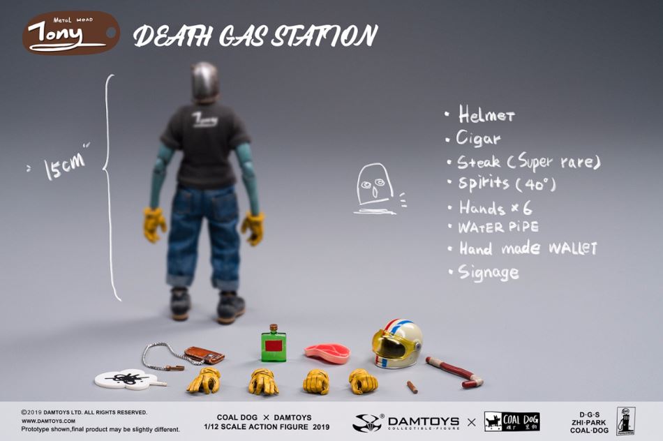 Death Gas StationSecluded,Not by the desolate roads without signs.Wandering soulsAll came here –Purposeless,Needing a short stay.Fugitive, Old Hiker, Elvis, Lost Traveler, Dismissed Driver...creative: Park & Zo.comic:Darkchurh........................................................Iron Head Tony comes withPosable headPosable bodyHelmetCigarRaw steakLiquorAction hand x6Water pipeWalletSignageComicSticker(Note: Motorcycles NOT included in product)Suggested retail price:460rmbPre-order period is one month, starting now. Expected to ship Q2 2020