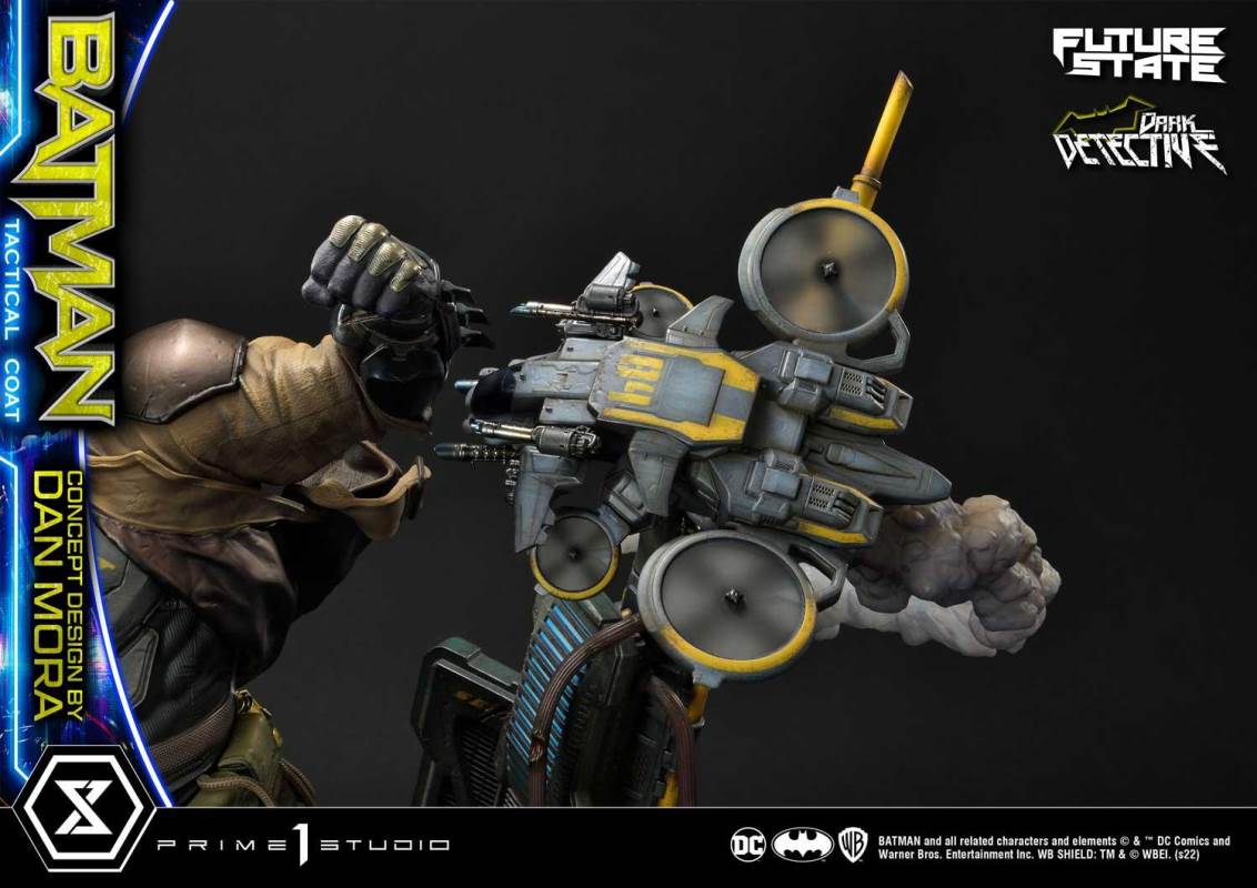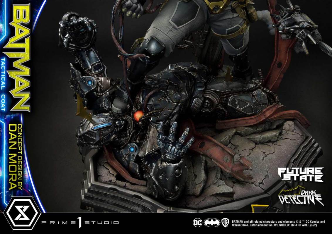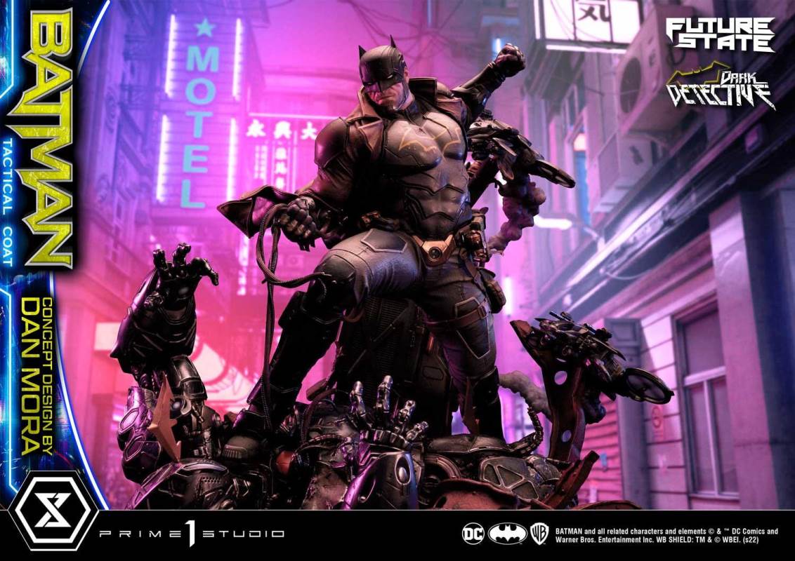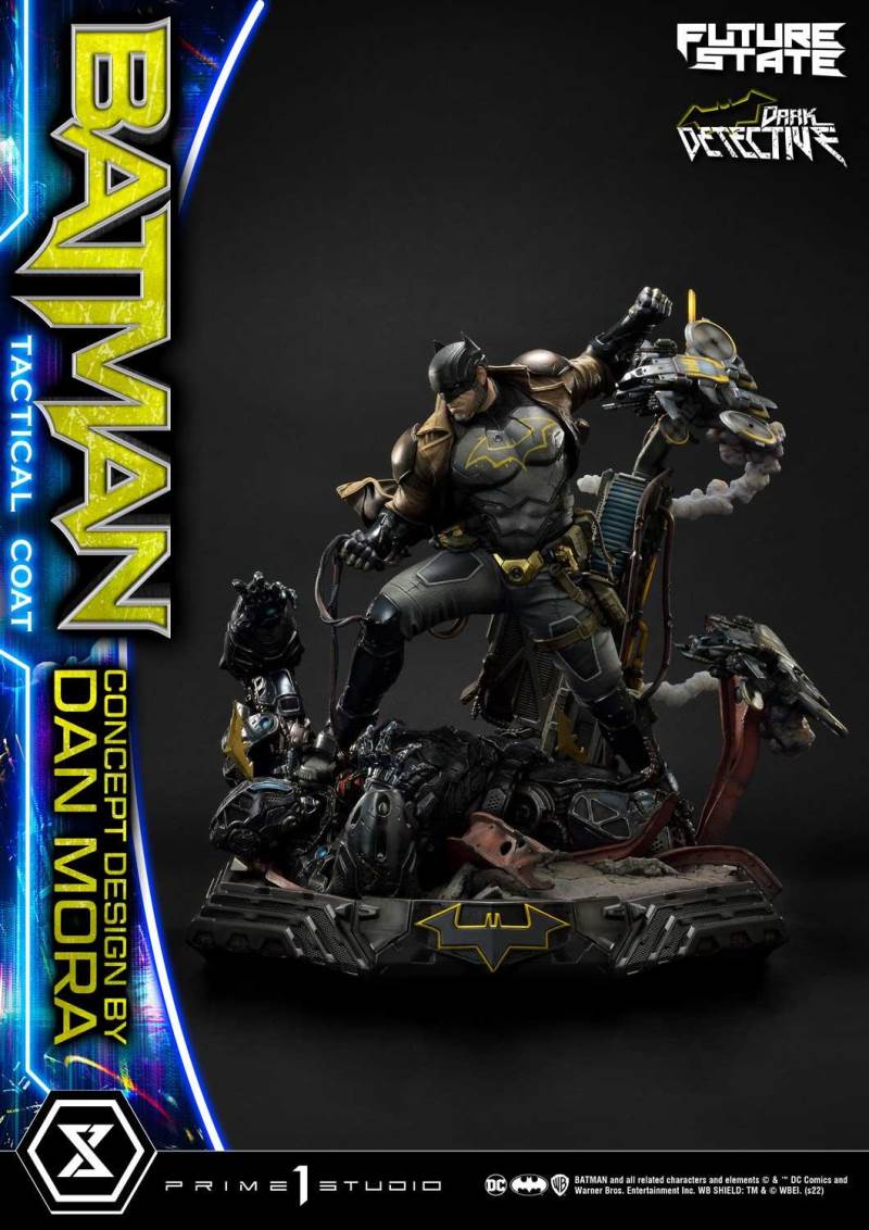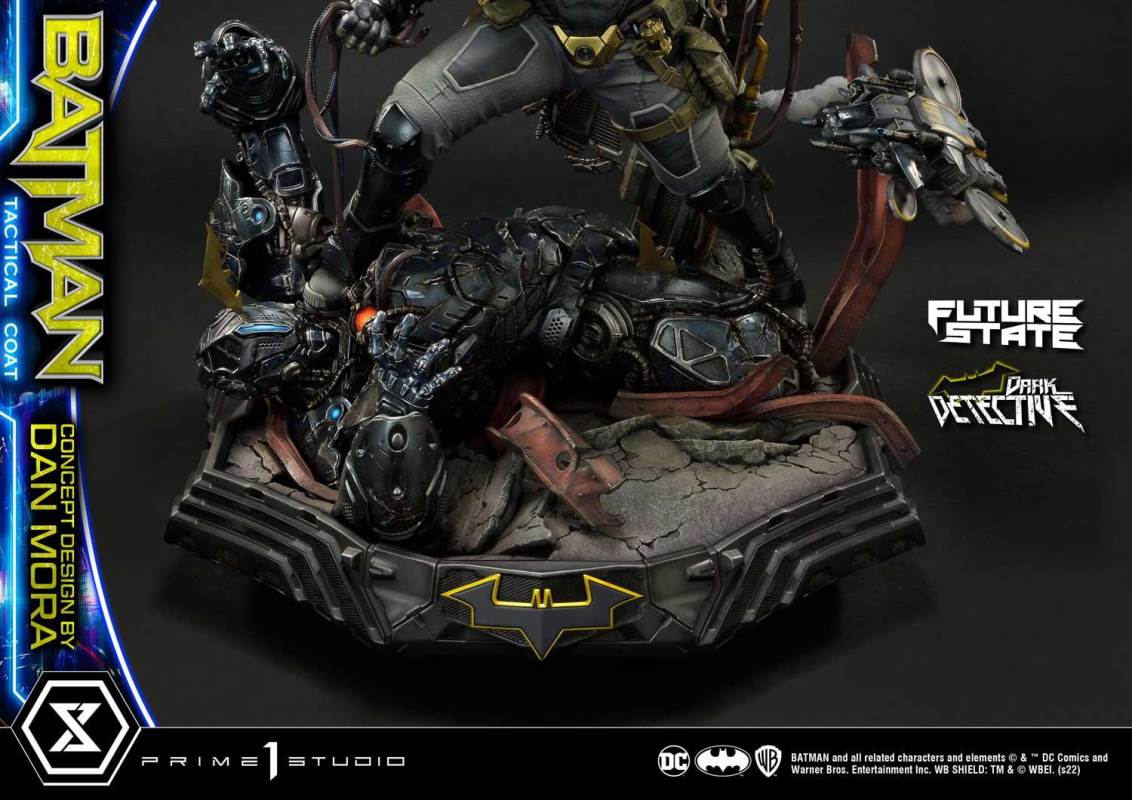 DescriptionsBatman is dead. Bruce Wayne is dead...Whatever I am now, I’ve got nothing left but time to fix this mess. Funeral’s over.Prime 1 Studio is absolutely excited to finally bring one of the most intriguing takes on the Dark Knight designs in a long time: the 1:4 Scale UPMDC-01 BATMAN DARK DETECTIVE TACTICAL COAT CONCEPT DESIGN BY DAN MORA from DC FUTURE STATE!Batman is dead. Bruce Wayne is dead. And in one of the possible futures of the DC Universe, a Future State has risen in Gotham City! In place of the Bat-Family brand of Justice, the Magistrate and his Peacekeepers have taken control of Bruce Wayne’s beloved city. To combat this authoritarian threat to freedom, Bruce has adopted a new and different persona: the Dark Detective!Dan Mora has designed a no-nonsense, combat-ready Batman! Instead of the single-piece costume, this 23-inch-tall Dark Detective gears up with a more tactical suit featuring ballistic weave under garments punctuated by conspicuous plated armor all over his body. Still rocking the utility belt, Batman has equipped it with a heavier, thicker Bat rope, multiple pouches that no doubt contain effective counter measures, and countless other tactical devices. In place of a necessarily absent cape, the Dark Detective wears a tough-looking coat equipped with armored pauldrons.Prime 1 Studio’s amazing artists not only cleverly sculpted each inch of this captivating scene, but they also portrayed how well the different textures and materials are presented for your enjoyment. And because the Dark Detective is a force to be reckoned with, our master painters have painstakingly recreated fictional realism with weathered, battle-damaged, and carefully applied paint with multiple layers of shading.The futuristic, action-packed diorama base is equally as enthralling! In Dan Mora’s concept, The Dark Detective stands poised in a complete environment themed for thrilling dynamism. It’s a futuristic Gotham City street, littered with technological detritus, flanked by persistent attack drones, and features a downed, robotic combatant.Add to your ever-growing Batman statue collection with this incredible UPMDC-01 Batman Dark Detective Tactical Coat Concept Design by Dan Mora from DC Future State today!Specifications:DC Future State-themed diorama baseNotice:Prototype samples shown.Product details could be subject to change without further notice.Please note the final product specifications may differ because each product is Handmade.Since the product is still in the development stage, the Size (up to 10%) & Weight (up to 10kg) may be changed during the production stage.BATMAN and all related characters and elements © & ™ DC Comics and Warner Bros. Entertainment Inc. WB SHIELD: TM & © WBEI. (s22)