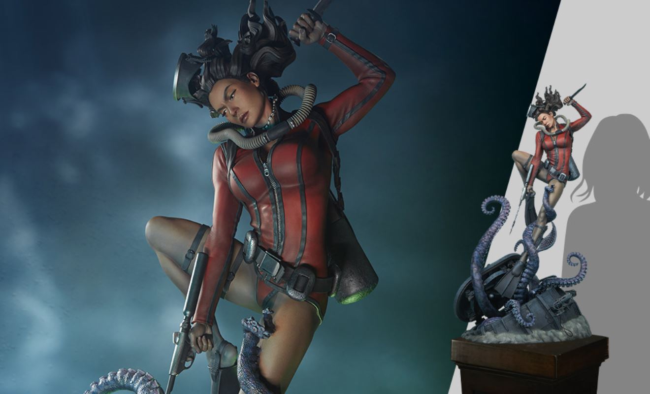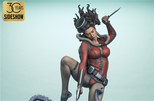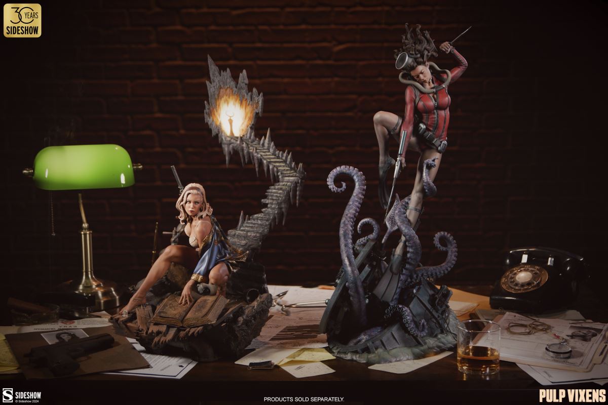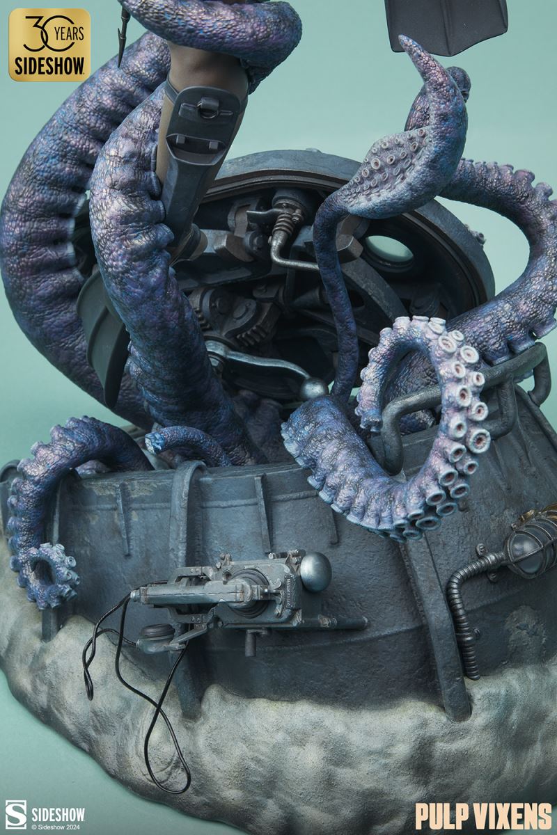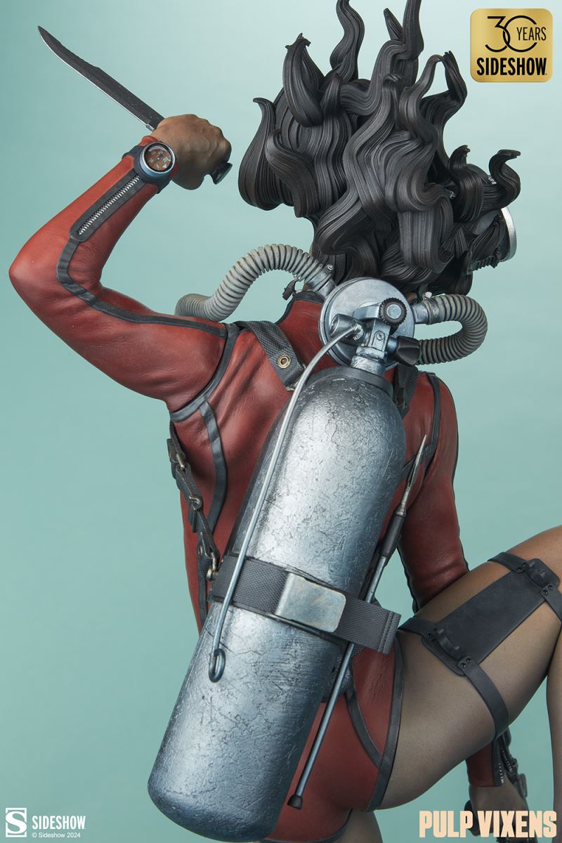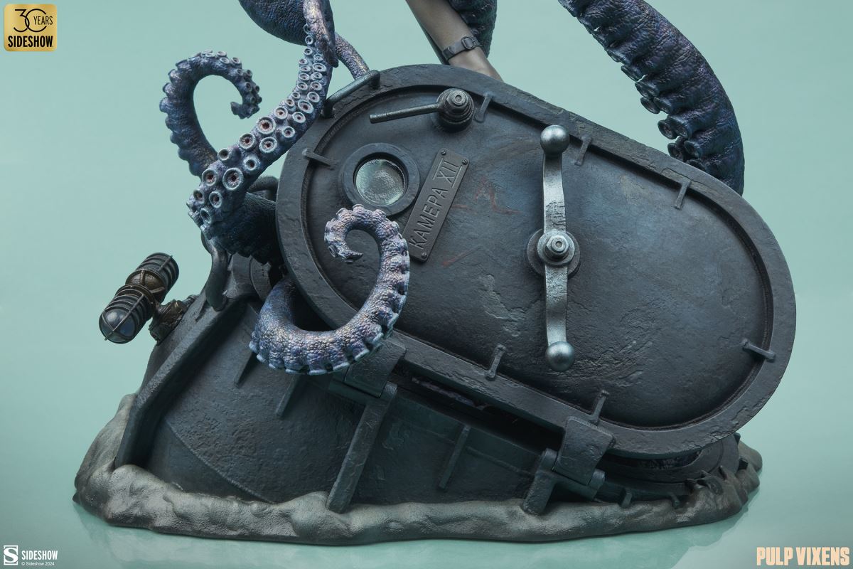 “Where nightmares are made …”Submerge yourself in the world of femme fatales and sinister syndicates with Pulp Vixens by Sideshow. Episode 2: “Deep Down” sends a graceful spy with a complex past sinking into a briny lair of scientific secrets.Agent Hawana Kalili takes the plunge in the Pulp Vixens: Deep Down Premium Format™ Figure, diving into the waters off the coast of Borneo in search of a stolen submarine belonging to an organization known as Kamera XII. But this is no day at the beach! As she comes face to face with unfathomable horrors beneath the waves, she’ll discover a family history murkier than the deepest ocean. This detailed collectible statue shows the diver tangled in the tentacled clutches of a giant squid emerging from the hidden vessel. Her personal diving gear protects her from the mounting ocean pressure — but can Agent Hawana survive the big leagues, or will she be sleeping with the fishes?The Pulp Vixens: Deep Down Premium Format Figure measures 26” tall x 11.15” wide x 13.2” deep and is fully sculpted to capture all of the maritime action of this dangerous deep-sea assignment. Codenamed Dancer, Hawana herself is as graceful and lethal as they come, cutting through the ocean’s depths with ease. The polystone statue features illumination effects, including ambient purple interior lights for the open experiment chamber and flickering red warning lights on the outside of the submarine. Even in the depths of the ocean, these light-up features bring added vibrancy and urgency to the environment. Dynamic paint application and the flow of Hawana’s hair and equipment create the effect of a weightless underwater scene that will have you holding your breath! Are you ready to take the plunge with Pulp Vixens? Reel in your next mission and add the Pulp Vixens: Deep Down Premium Format Figure to your collection today.If you want more intel on the world of Pulp Vixens, scan the latest mission brief and check out Sideshow’s Pulp Vixens Collection Spotlight. And don’t miss Episode 1, the Pulp Vixens: Mr. Sin Premium Format™ Figure, pitting a starlet-turned-spy against a madman! What is Pulp Vixens?Pulp Vixens reveals a hidden world of kitten-heeled killers battling a sinister shadow organization hell-bent on controlling the world. This globetrotting series of collectibles captures the thrill of high-stakes, highly classified action in stunning statue form. Are you ready to go on a secret mission with the Pulp Vixens?Pulp Vixens Episode 2: Deep Down“Where nightmares are made …”The pressure is mounting for Hawana Kalili in Pulp Vixens Episode 2: “Deep Down.” On a mission to an exotic coastal village in Borneo, Agent Hawana will be forced to face her father’s history with the evil organization known as Kamera XII! Diving beneath the waves, she’ll come face to scuba mask with her old man's ghastly experiments hidden aboard a stolen Russian submarine. Can Hawana rise above the tangled tentacles of her past, or will she be drowned by the horrors awaiting her Deep Down?MaterialsPolystoneProduct SizeHeight: 26 (66 cm)Width: 11.15 (28 cm)Depth: 13.2 (34 cm)Weight: 10 lbs (4.5 kg) *