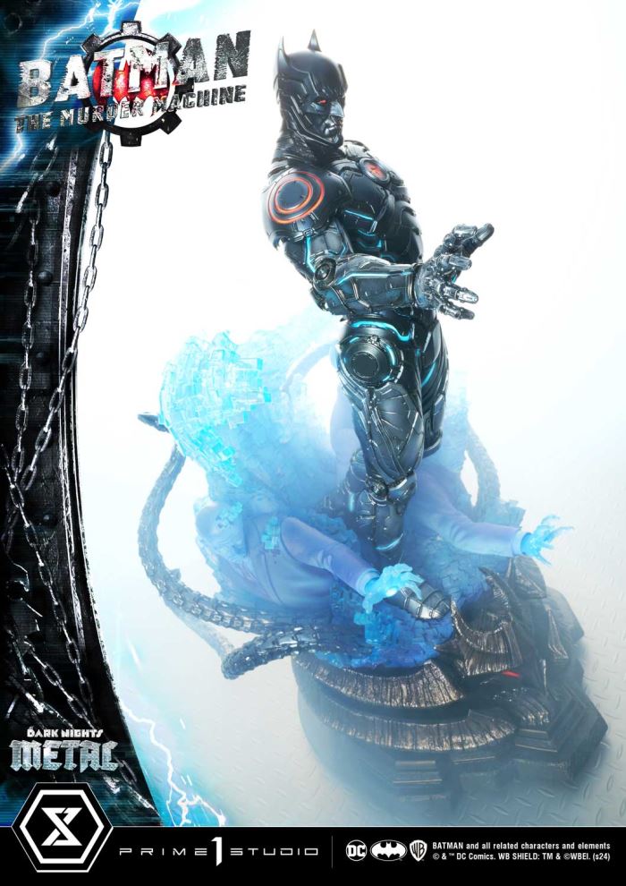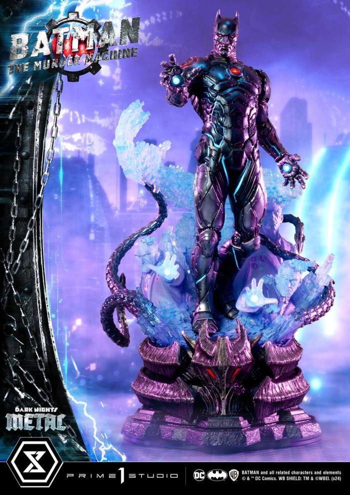 “I am precisely who I want to be. My father will always be there for me. And I will always be there for him. Everyone else is a weakness. A weakness I am ready to shed”Prime 1 Studio is very proud to present you the latest addition to the Museum Masterline, here is the 1/3 Scale The Murder Machine from Dark Nights: Metal in all its splendor!We take you back once again into the Dark Multiverse, this time around with Earth-44’s version of the Caped Crusader. Alfred Pennyworth who’s raised Bruce is brutally murdered, consumed by grief and despair, unable to cope with the emotional turmoil, Batman decides to merge his consciousness with an artificial intelligence version of Alfred, called Alfred Protocol. This fusion leads to the creation of the Murder Machine, a dark and malevolent version of Batman augmented with the abilities of super-advanced AI.At over 33 inches, this cybernetic monster is sure to send chills down your spine. Our artisans have done an outstanding job once again with the detailing, glimpses of machinery can be seen peering through the armor meticulously devised by master engineering. Every wire and metal segment has been crafted with the utmost care and expertise, a glance at the spinal column at the back should be enough to make any jaw drop. The ethereal base features hologram projections of the emotionless Alfred Protocol that would stop at nothing to protect Bruce, even from his own humanity. The former father figure includes LED lighting in both hands as well as the hands of the Murder Machine himself.The Deluxe Version comes with an additional swappable portrait, both ice cold and menacing. The Murder Machine’s reconfigurative capabilities are also represented through the interchangeable parts: monstrous hacking tendrils as well as a sharp blade capable of cutting through anything, allowing you to eternalize key moments from the comic.And if you order the Bonus version from our official store or any authorized distributor, you will receive a third swappable head part, its expression just as chilling as the two others!The pinnacle of cybernetic evolution, unfettered with constraints of human empathy, The Murder Machine is the culmination of guilt and despair, now one with technological enhancements, perhaps even stronger than the Creator Cyborg himself. Pre-order the MMDCMT-14DXS The Murder Machine Deluxe Bonus Version now and complete the full roster of the Dark Nights!Specifications:Statue Size approximately 33.4 inches tall [H:85cm W:49cm D:58cm]Statue Size approximately 22.8 inches wide with tentacle hand [H:85cm W:58cm D:58cm]Dark Multiverse-themed baseTwo (2) Swappable head parts (Normal and Smile)Three (3) Swappable left-hand parts (Open, Tentacles and Sword)One (1) Additional swappable head part (Angry) [BONUS PART]Notice:Prototype samples shown.Product details could be subject to change without further notice.Please note the final product specifications may differ because each product is Handmade.Since the product is still in the development stage, the Size (up to 10%) & Weight (up to 10kg) may be changed during the production stage.BATMAN and all related characters and elements © & ™ DC Comics. WB SHIELD: TM & © WBEI. (s24)DETAILSBrandsPRIME 1 STATUECollectionMuseum MasterlineSeriesDC SeriesScale1/3 ScaleProduct CodeMMDCMT-14DXSProduct Size Approx.H:85cm W:49cm D:58cmH:85cm W:58cm D:58cm (with tentacle hand)Carton(Est):2 boxesProduct Weight Approx.About 31.9 kgMaterialsPolystone and other materialsJAN4580708048888