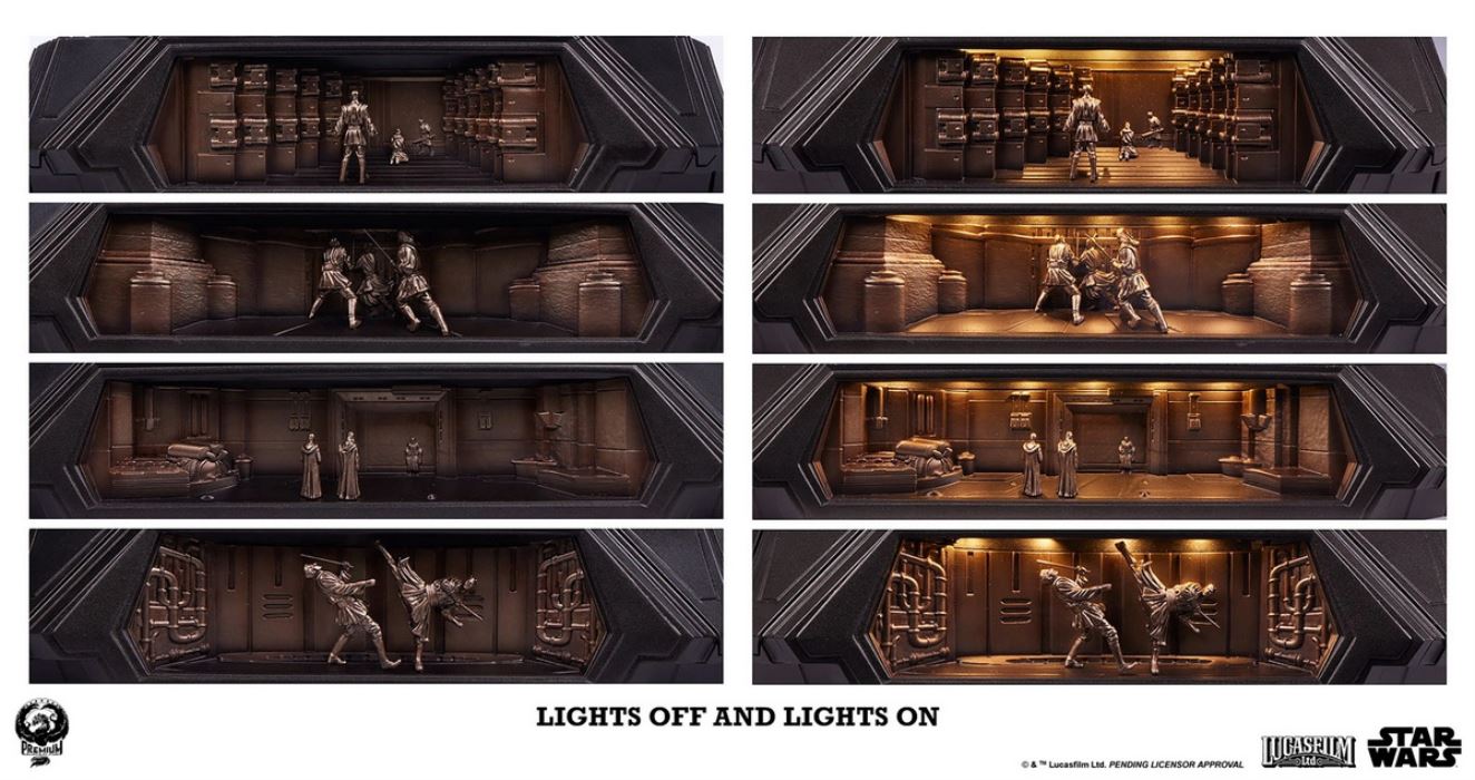 ** สามารถเปิดไฟที่ฐานและดาบ Lightsaber ได้