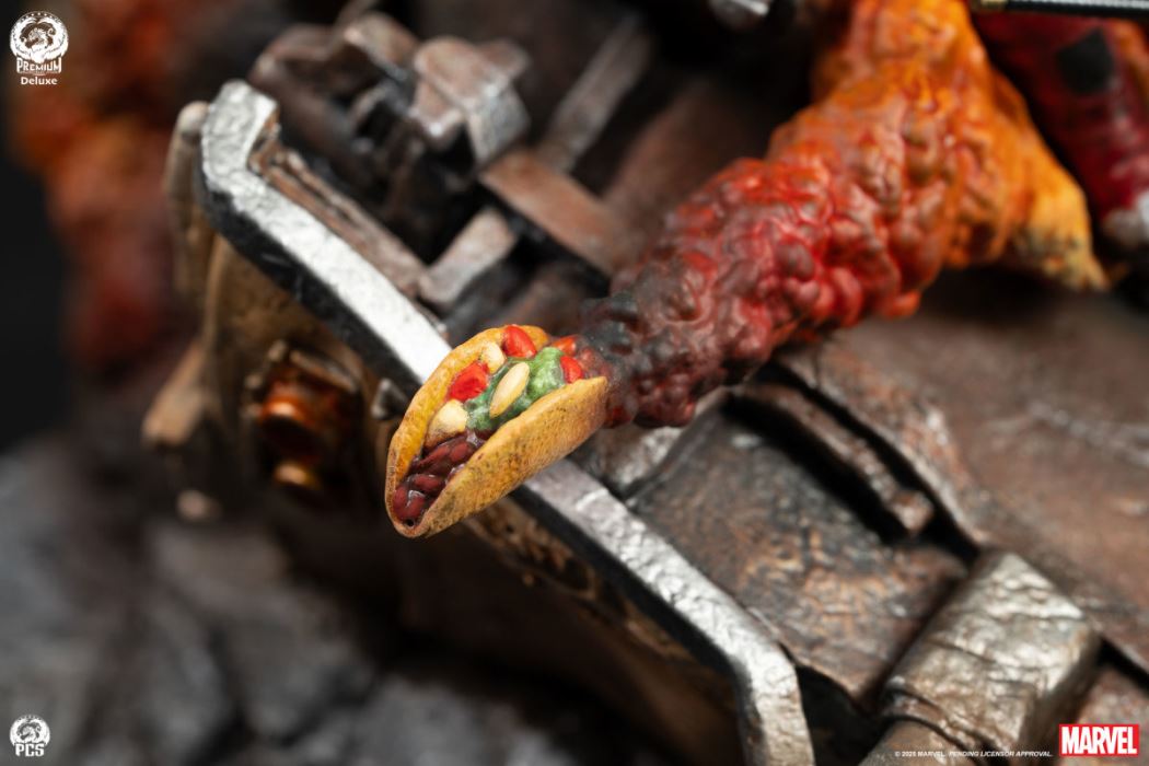The American modeling brand Premium Collectibles Studio (PCS) has released a Fine Art Bust based on the popular MARVEL character Deadpool ! The regular and deluxe versions will be released simultaneously, and are expected to start shipping in the first quarter of 2026.This work is about 41.9 cm tall, creating a Deadpool army surrounding a huge Deadpool head. You can see Deadpool, Mrs. Deadpool, Deadpool Boy, Deadpool's head and Deadpool's dog, surrounded by overturned vehicles and explosion effects. In addition to the dynamic movements of each Deadpool, the red and black main costume covering the whole body also depicts delicate textures and wrinkles, and with the explosion effects with gradient colors, the overall atmosphere is really gorgeous, destructive, joyful and playful. If you look closely, you can also find that a fried Mexican roll (Chimichanga), which is Deadpool's favorite, flew out of the explosion, which is quite interesting.The deluxe version will have an additional Deadpool riding a unicorn on the back, holding a Baby Cable in his arms!Deadpool - Fine Art BustSuggested retail price: Unannounced, Product specifications: 16.5H x 10.5W x 13.5D (inches), Expected release date: Q1 2026