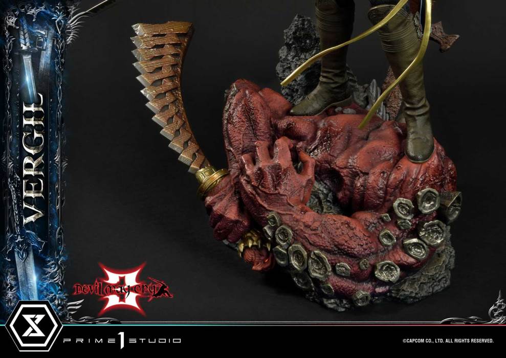 Might controls everything, and without strength, you cannot protect anything, let alone yourself. – VergilThe enigmatic and powerful older twin brother of Dante now takes center stage for our next release. Standing at a mesmerizing 1/4 scale, Prime 1 Studio is proud to announce the UPMDMC3-02DXS Ultimate Premium Masterline Devil May Cry 3 Vergil DX Bonus Version!Vergil's journey is one of contrasts and conflicts, as he relentlessly pursues power while battling his own inner demons. His appearance is striking and imposing with fair, pale skin and white, swept-back hair. His blue eyes, reminiscent of his brother Dante's, hold a fierce and stoic expression. Adorned in his signature long, silver-buttoned blue coat with a distinct serpentine pattern, Vergil exudes an aura of authority and conviction. His navy-blue ascot and tight vest reveal his well-toned physique. Wearing fingerless gloves, he confidently wields his sinister Yamato sword as a subtle reminder of the dark power brewing within him. The demon's remains lying by his feet serve as a testament to the overwhelming dark forces he possesses. The statue offers versatility with swappable parts, including a normal head and a dual display head. This allows collectors to select their preferred expression and display options, especially when paired with the Devil May Cry 3 Dante statue. Additionally, a left hand holding a scabbard and a dual display left hand is included to add depth to the character's pose. The Deluxe Version elevates the experience with an extra left hand that wields the iconic Force Edge sword. This dynamic accessory allows fans to recreate the duo’s dynamic battle stances. Also included are 2 Logo displays that pays homage to both the game's North American and European variations, capturing the essence of the Devil May Cry universe.That’s not all! Order on the Prime 1 Studio official online store and you will be gifted an extra head portrait that portrays Vergil with his hair down, which we all know is a rare sight for fans. This alternative head is sure to remind us of the complex relationship between the Nephilim twins.The UPMDMC3-02DXS Vergil Statue is more than a collectible; it's a testament to Vergil's unyielding quest for power. Whether you're a dedicated Devil May Cry fan or a hardcore game enthusiast, this masterpiece is a must-have. Now is your chance to immortalize Vergil's formidable presence and embrace the true Nephilim within your display. Specifications: Statue Size Approximately 27 inches [H: 69cm W: 56cm D: 37cm]Statue Size Approximately 27 inches [H: 69cm W: 50cm D: 54cm] (Alongside Dante)Statue Size Approximately 27 inches [H: 69cm W: 50cm D: 48cm] (Holding Force Edge)Devil May Cry 3-themed base.Three (2) Swappable head parts (Normal head & dual display head)Three (3) Swappable left-hand parts (Holding gun, holding scabbard & holding Force Edge)Two (2) Logo displays (NA/JP Version & EU Version)One (1) Swappable bonus head part (Hair down) [BONUS PART]Notice: Prototype samples shown.Product details could be subject to change without further notice.Please note the final product specifications may differ because each product is Handmade.Since the product is still in the development stage, the Size (up to 10%) and weight (up to 10kg) may be changed during the production stage. ⒸCAPCOM CO., LTD. ALL RIGHTS RESERVED.