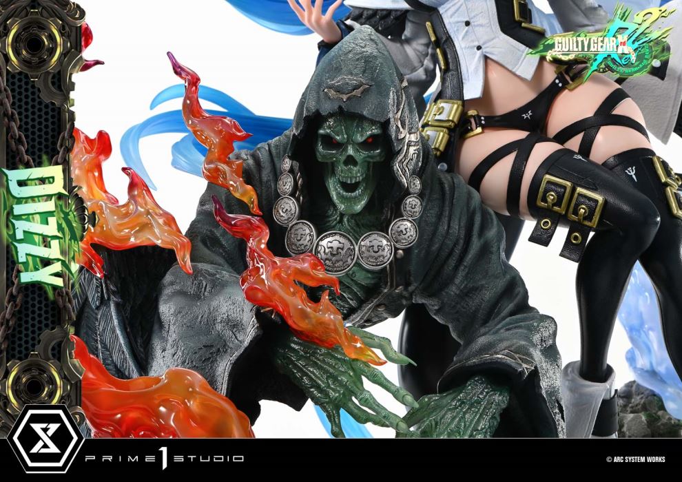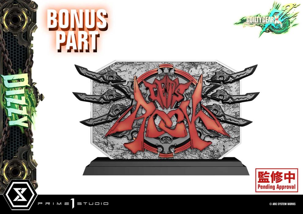 The future must be imagined... I'm no longer afraid.The compassionate half-Gear takes flight with fire and iceHERE COMES DAREDEVIL — From the critically acclaimed fighting game GUILTY GEAR Xrd REV 2, Dizzy enters the Ultimate Premium Masterline series.Born between a human and a Gear, the compassionate half-Gear takes to the battlefield to protect the ones she loves. Her graceful form, captured dramatically in 1/4 scale, is accompanied by her loyal wings: Necro and Undine. The trio is arranged in a dynamic diagonal composition, emphasizing a moment of unity and motion.Her gentle crimson eyes and delicately flared bell sleeves are brought to life with careful attention to detail. Every aspect of Dizzy's sculpt and paintwork was designed through a meticulous study of the GUILTY GEAR Xrd series. From the natural folds formed along her curves to the translucent hair tips that flow with invisible air, the statue recreates the stylized beauty of hand-drawn animation in a seamless three-dimensional form.With arms raised in a fierce glare and a gentle smile beneath crossed hands, Necro and Undine each express their unique personalities through pose and expression. The swirling effects of fire and ice add visual rhythm, drawing the eye across the layout.The custom base is inspired by AREA 42, the battle stage featured in the series. Moss-covered stone pillars, delicate blooming flowers, and patterns reminiscent of ring effects all contribute to a mystical atmosphere.Exclusively included with this bonus version is a specially designed logo stand featuring the iconic phrase LET'S ROCK. This signature punchline that kicks off every battle brings an extra layer of excitement to your display.Compassion and strength, born from her wish for a peaceful future—this statue captures everything that makes Dizzy so beloved, and is a heartfelt tribute for every GUILTY GEAR fan.Specifications:GUILTY GEAR Xrd REV 2 Themed BaseOne (1) LET’S ROCK Logo Stand [BONUS PART]Notice:Prototype samples shown.Product details could be subject to change without further notice.Please note the final product specifications may differ because each product is Handmade.Since the product is still in the development stage, the Size (up to 10%) & Weight (up to 10kg) may be changed during the production stage.© ARC SYSTEM WORKSDETAILSBrandsPRIME 1 STATUECollectionUltimate Premium MasterlineSeriesGUILTY GEARScale1/4 ScaleProduct CodeUPMGG-01SProduct Size Approx.H:63cm W:57cm D:39cmCarton(Est):2 boxProduct Weight Approx.12.7 kgMaterialsPolystone and other materialsJAN4582647121455
