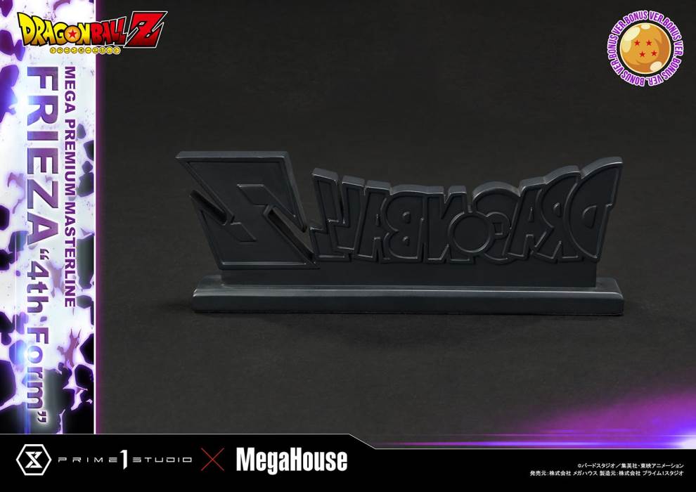 “You seem quite confident, but you don’t seem to realize that your actions have only been infuriating me. Allow me to demonstrate what a fraction of my power can really do”Prime 1 Studio and MegaHouse are very proud to collaborate for this long-awaited entry to our Premium Masterline Series, one of the most iconic antagonists from Dragon Ball Z: the 1:4 Scale MPMDBZ-03S Frieza 4th Form Bonus Version!Emperor of a powerful and fearsome race known as the Frost Demons, or Frieza’s Race, he possesses an insatiable desire for control and domination, seeking to conquer planets and exploit their resources. He has built quite a reputation for himself throughout the universe for his cruelty, ruthlessness, and immense power. This has led him to destroy Planet Vegeta, Goku and Vegeta’s home planet, over the fear of the Saiyan race’s growing power and their potential to become a threat to his rule.The Namek Saga is where Frieza first appears in Dragon Ball Z and became one of the most beloved arcs among fans as it features highly praised character development and battle scenes. The statue portrays Frieza in his final form, reached during his confrontation with Goku on Planet Namek. One foot in front of the other, arms outstretched, fans have come to know this pose as the Frieza Stance – the ground around him comes asunder as he gathers his ki to show his power level – giving off a purple aura lit up by LED.And when you order the Bonus version from our official store or any authorized distributor, you will receive a Dragon Ball Z logo stand to display at the base of your statue.Complete your collection with this MPMDBZ-03S Frieza 4th Form Bonus Version statue and pre-order now! A must-have for DBZ fans everywhere! Specifications: Dragon Ball Z inspired baseLED Illuminated effect partsOne (1) Dragon Ball Z logo stand [BONUS PART] Notice:Prototype samples shown.Product details could be subject to change without further notice.Please note the final product specifications may differ because each product is Handmade.Since the product is still in the development stage, the Size (up to 10%) & Weight (up to 10kg) may be changed during the production stage.Region Exclusive ⒸBIRD STUDIO/SHUEISHA, TOEI ANIMATION DETAILSBrandsPRIME 1 STATUECollectionMega Premium MasterlineSeriesDragon BallScale1/4 ScaleProduct CodeMPMDBZ-03SProduct Size Approx.H:61cm W:43cm D:34cmPackage Weight Approx.About 13.9 kgMaterialsPolystone and other materialsJAN4535123837104