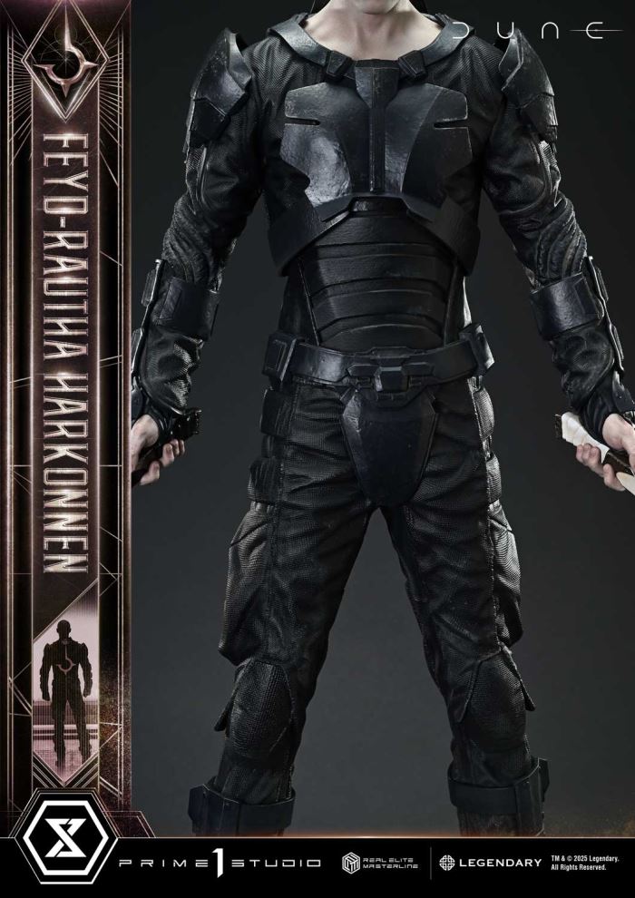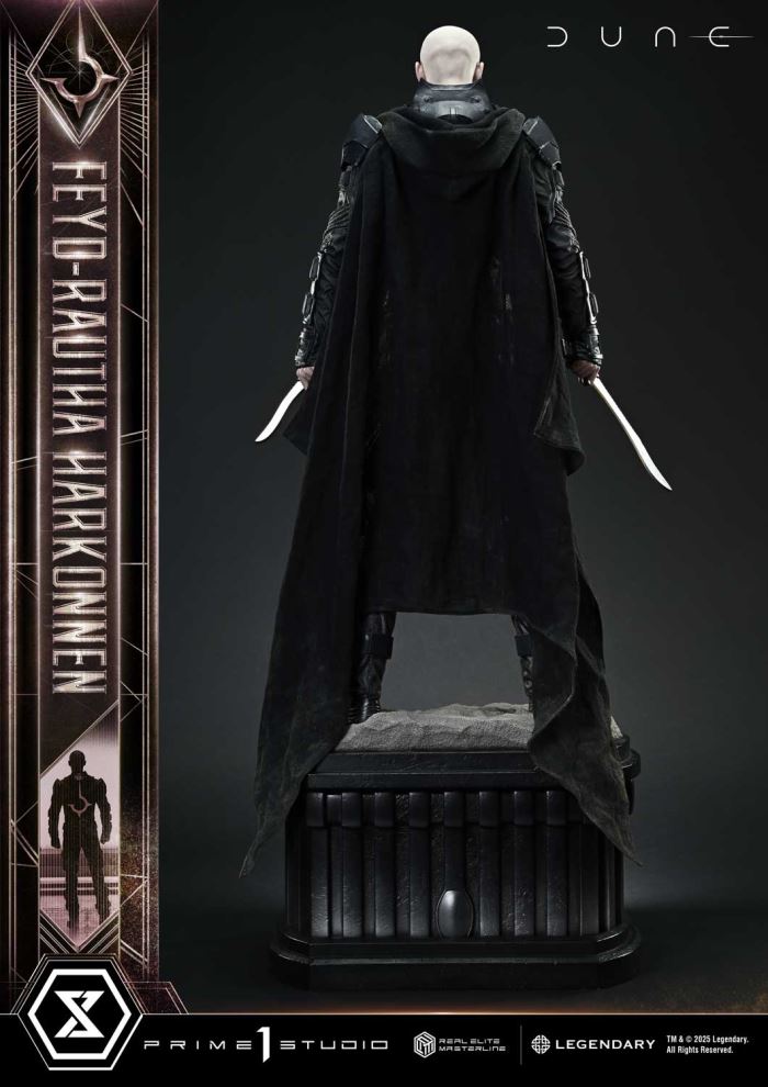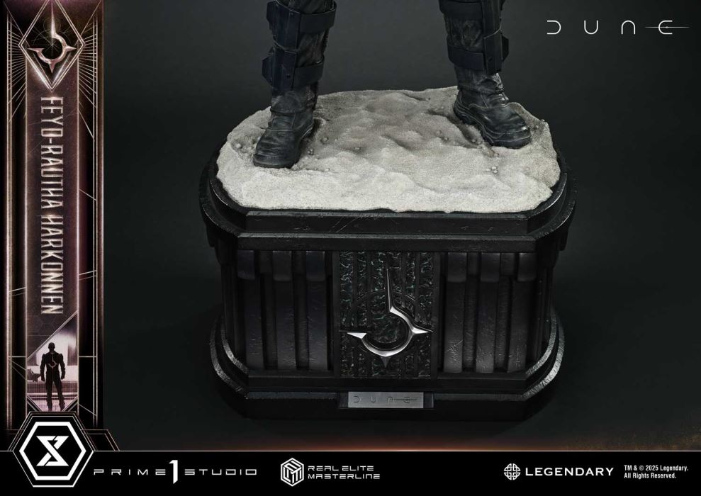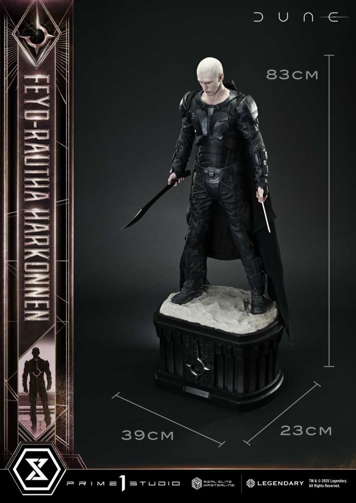 You fought well, Atreides.The Harkonnen heir apparent joins the Real Elite Masterline.Set on the desert planet of Arrakis, Dune: Part Two depicts the beginning of the final confrontation. From this epic second act in the space opera that captivated the world, we present Feyd-Rautha Harkonnen in stunning statue form.The Harkonnen heir apparent who targets the life of Paul Atreides—his silent stance before battle embodies both his superior combat skills and his sadistic nature. Display him alongside Paul from the same Real Elite Masterline series, and the contrast becomes clear: a prophetic savior facing off against a bloodthirsty ruler from opposite ends of fate.Sunken eyes casting a mysterious shadow, pale skin, and a refined yet unsettling face—this portrait is unmistakably Feyd-Rautha, brought to life with uncanny likeness to Austin Butler, who portrayed him on screen. His black and white blades form sharp edges and graceful curves, while the combat suit is fully recreated down to the worn armor plates and woven fabric textures. The removable cape is made of real fabric, producing natural drape and flow. The base beneath his feet combines the deserts of Arrakis with the emblem of House Harkonnen for a weighty finish.A statue that embodies refined brutality through lifelike sculpting and paintwork—an essential addition to any Dune collection.Specifications:Highly detailed likeness sculpture of Austin ButlerDUNE: Part Two-Themed BaseCloak (Fabric Material)Notice:Prototype samples shown.Product details could be subject to change without further notice.Please note the final product specifications may differ because each product is Handmade.Since the product is still in the development stage, the Size (up to 10%) & Weight (up to 10kg) may be changed during the production stage.TM & Ⓒ 2025 Legendary. All Rights Reserved.DETAILSBrandsPRIME 1 STATUECollectionReal Elite MasterlineSeriesDuneScale1/3 ScaleProduct CodeREMDUNE2-02Product Size Approx.H:83cm W:39cm D:23cmCarton(Est):1 boxProduct Weight Approx.7.8 kgCarton Size Approx.Carton A [ H 71cm × W 55cm × D 35cm ]MaterialsPolystone and other materialsJAN4582647122377