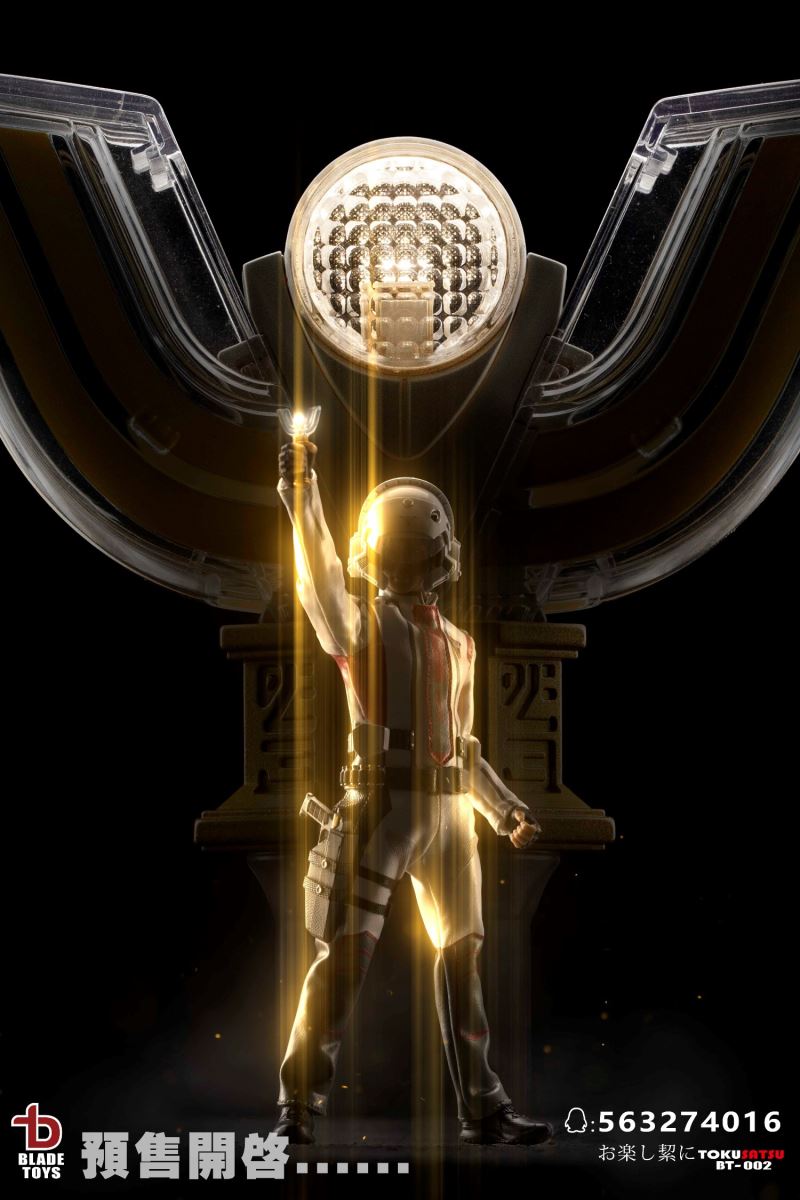 BLADE TOYS 1/12 Earth Defenders 6 inch action figureBT-002List:1. Simulated head * 12. 1/12 body*13. Gun hold type hands * 1 pair4. Holding hands * 1 pair5. One piece tight combat suit * 16. High top boots * 17. Battle belt * 18. Helmet * 19. Closed communicator * 1 pair (magnetic)10. Opened communicator * 111. Guts-Hyper-Gun * 112. Victory Hyper Rifle * 113. Hyper gun bullets * 1 set14. Hyper holster * 115. SPARK LENCE * 1 (Open)16. SPARK LENCE * 1 (Closed)17. Dark Stick * 118. Fossilized Light Stick * 119. figure stand*1