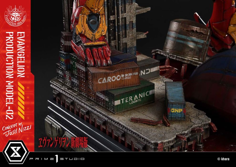 Crimson remembered. Mechanized mass redefined.EVA-02 launches—reimagined—under Battle Stations Condition One.Working alongside mechanical concept artist Josh Nizzi, the Concept By Josh Nizzi project draws out new dimensions of beloved characters. Now, from the Evangelion series, Evangelion Production Model-02 joins the lineup.This statue follows the lineage of the previously released Unit-01 and the Fourth Angel, blending bold mechanical reinvention with deep respect for the original design. Nizzi envisioned EVA-02 in the midst of battle, standing by the sea, ready to face an Angel. Armed in both hands, it strikes a dramatic pose, culminating in a heroic diorama display.The rebalanced proportions give the figure a more human feel, while detailed mechanical moldings and internal structures add a sense of purpose and precision. Design elements shared with Unit-01 further emphasize its place within the series. The body is finished in a crimson hue that fuses vivid anime tones with the subdued luster of heavy machinery. LED light-up features in its four eyes and chest further enhance the sense of presence, while the industrial shoreline—complete with a sunken tanker and rippling red sea—is rendered with striking realism.This statue includes additional optional equipment unique to EVA-02: a jetpack with LED-illuminated thrusters, a cutter-type Progressive Knife with weathered blades, and a Thunder Spear with fully deployed discharge arms. Experience the exceptional versatility of this Production Model.Exclusively in the Deluxe Bonus Version, a bonus swappable head with a rounded forehead sculpt is included. Its silhouette recalls another layer of the story, reborn before your eyes.EVA-02, reimagined through a unique creative lens—an impactful addition to any collection.Specifications:Evangelion-themed BaseOne (1) Swappable Head (Horned)Two (2) Pairs of Swappable Shoulders (Jetpack, Pylon)Two (2) Swappable Right Arms (Thunder Spear: Folded, Deployed)Two (2) Swappable Left Arms (For Swappable Left Hands, For Thunder Spear Holding)Two (2) Swappable Left Hands (Palette Rifle, Progressive Knife)LED Light-Up Features (Eyes, Chest, Jet Nozzles)One (1) Swappable Head (Hornless) [BONUS PART]LED Power Supply Method: TBD * Please prepare batteries, USB cables, or other necessary items depending on the final power supply method.Notice:Prototype samples shown.Product details could be subject to change without further notice.Please note the final product specifications may differ because each product is Handmade.Since the product is still in the development stage, the Size (up to 10%) & Weight (up to 10kg) may be changed during the production stage.© kharaDETAILSBrandsPRIME 1 STATUECollectionUltimate Diorama MasterlineSeriesEvangelionScaleNon ScaleProduct CodeUDMEVA-07DXSProduct Size Approx.H:73cm W:38cm D:36cmH:66cm W:39cm D:41cm(With Thunder Spear Deployed and Jetpack Equipped)Carton(Est):1 boxProduct Weight Approx.17.3 kgMaterialsPolystone and other materialsJAN4582647122100